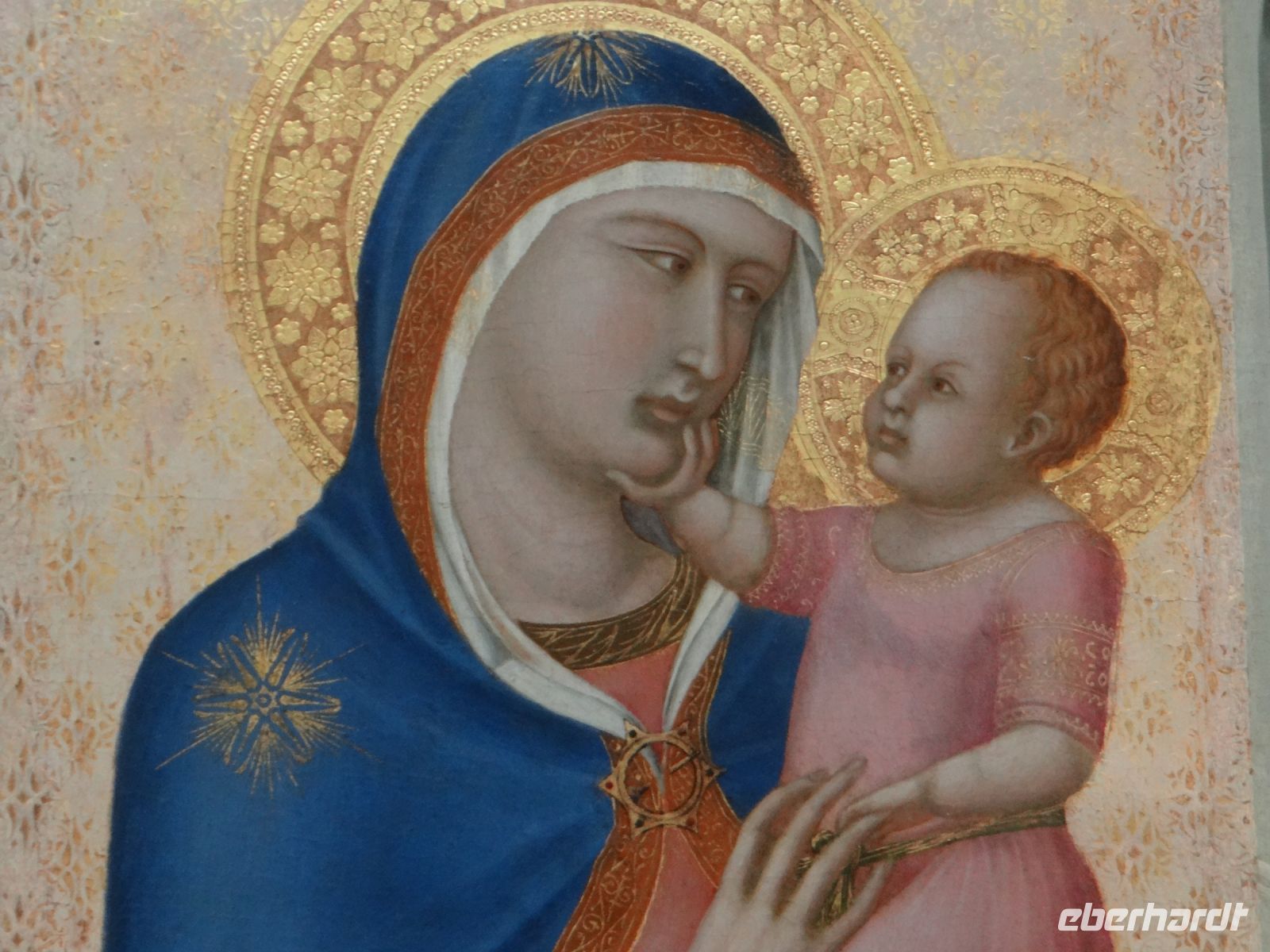 Von den Mariendarstellungen auf Goldgrund von Cimabue und Giotto über den „Frühling“ von Botticelli bis hin zum Bacchus von Caravaggio, es ist eine Lust, Gemälde, die man irgendwie kennt, im Original zu sehen, aufs Schönste präsentiert, eingelassen in farbig passende Wände.