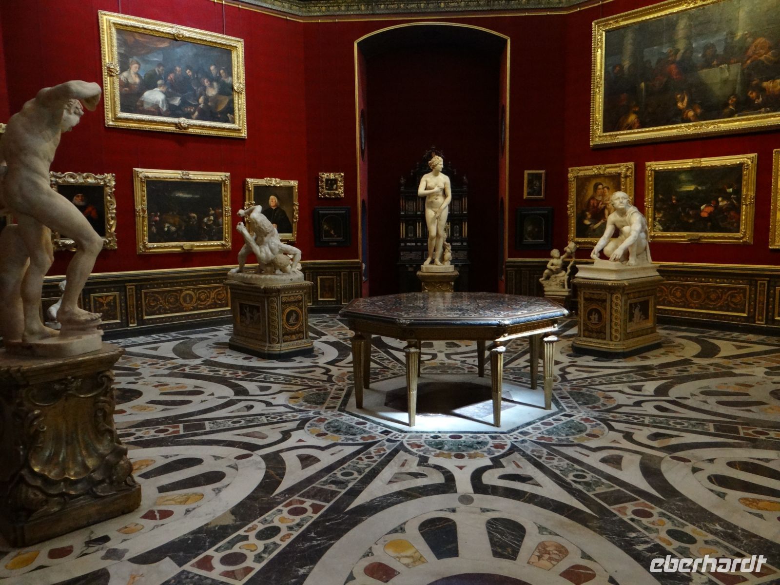 Der Blick aus den Galerien auf die Ponte Vecchio und die Dächer der Stadt beruhigen zwischendrin das Auge, das von Farbe gesättigt ist.
