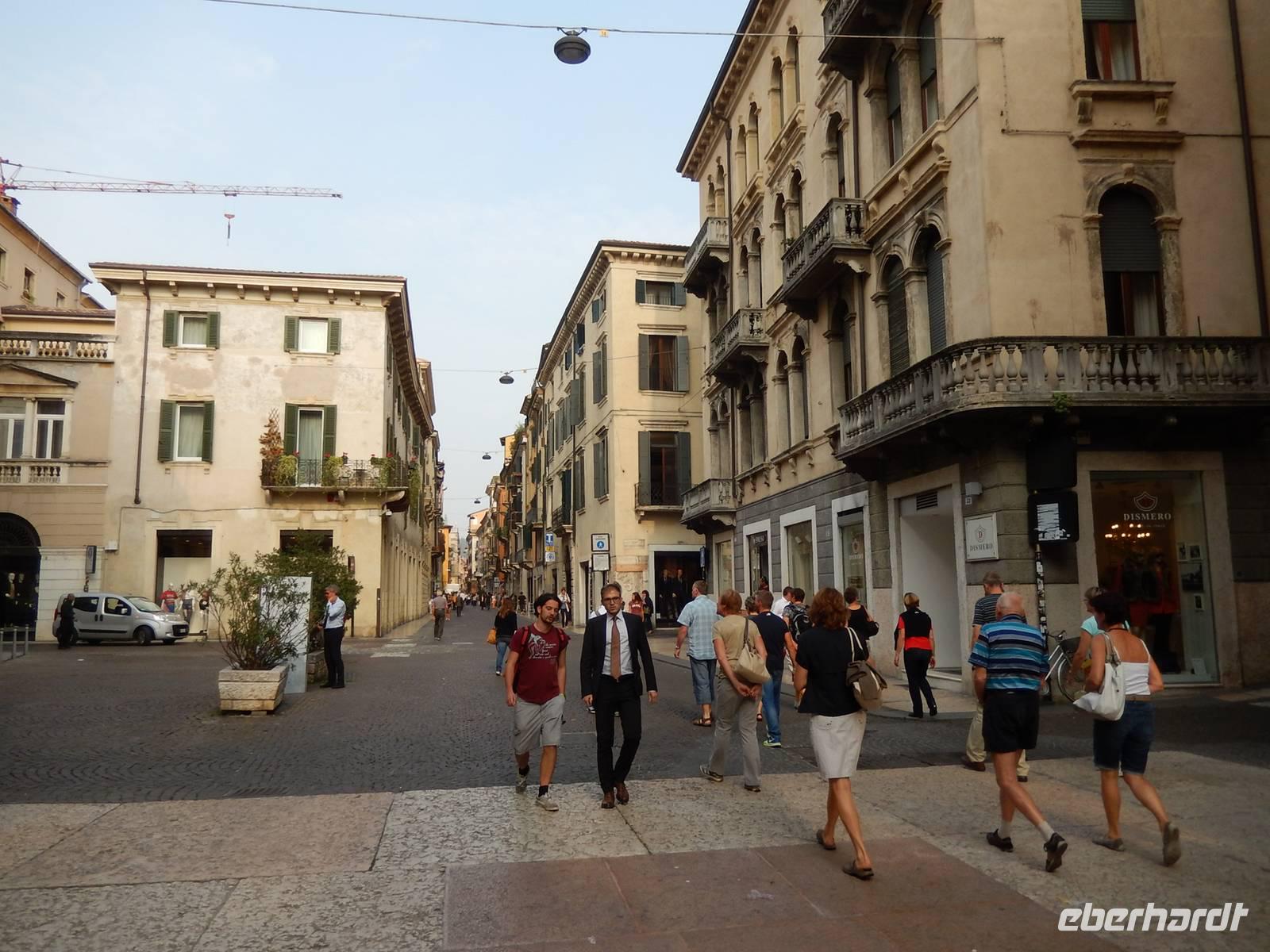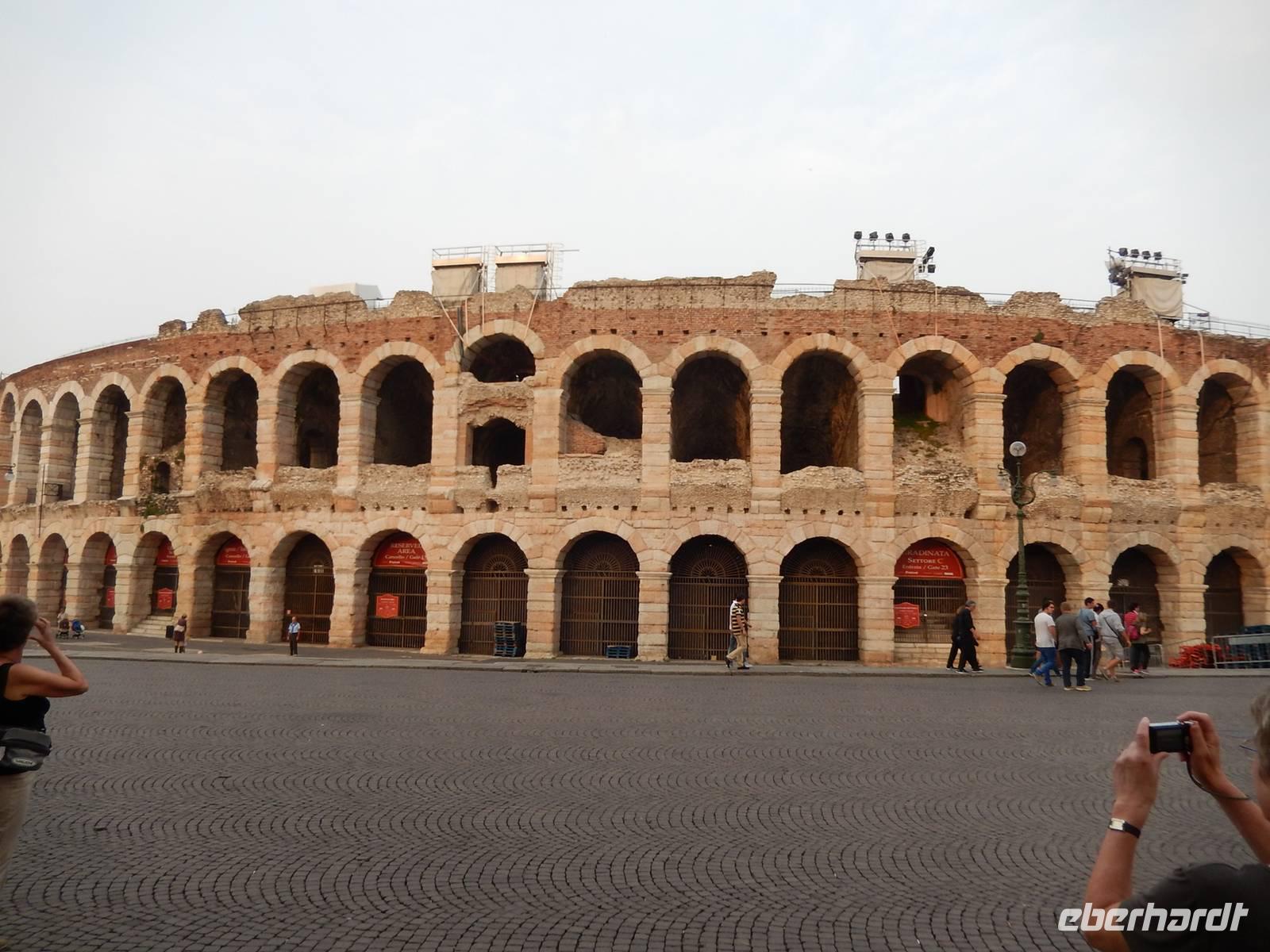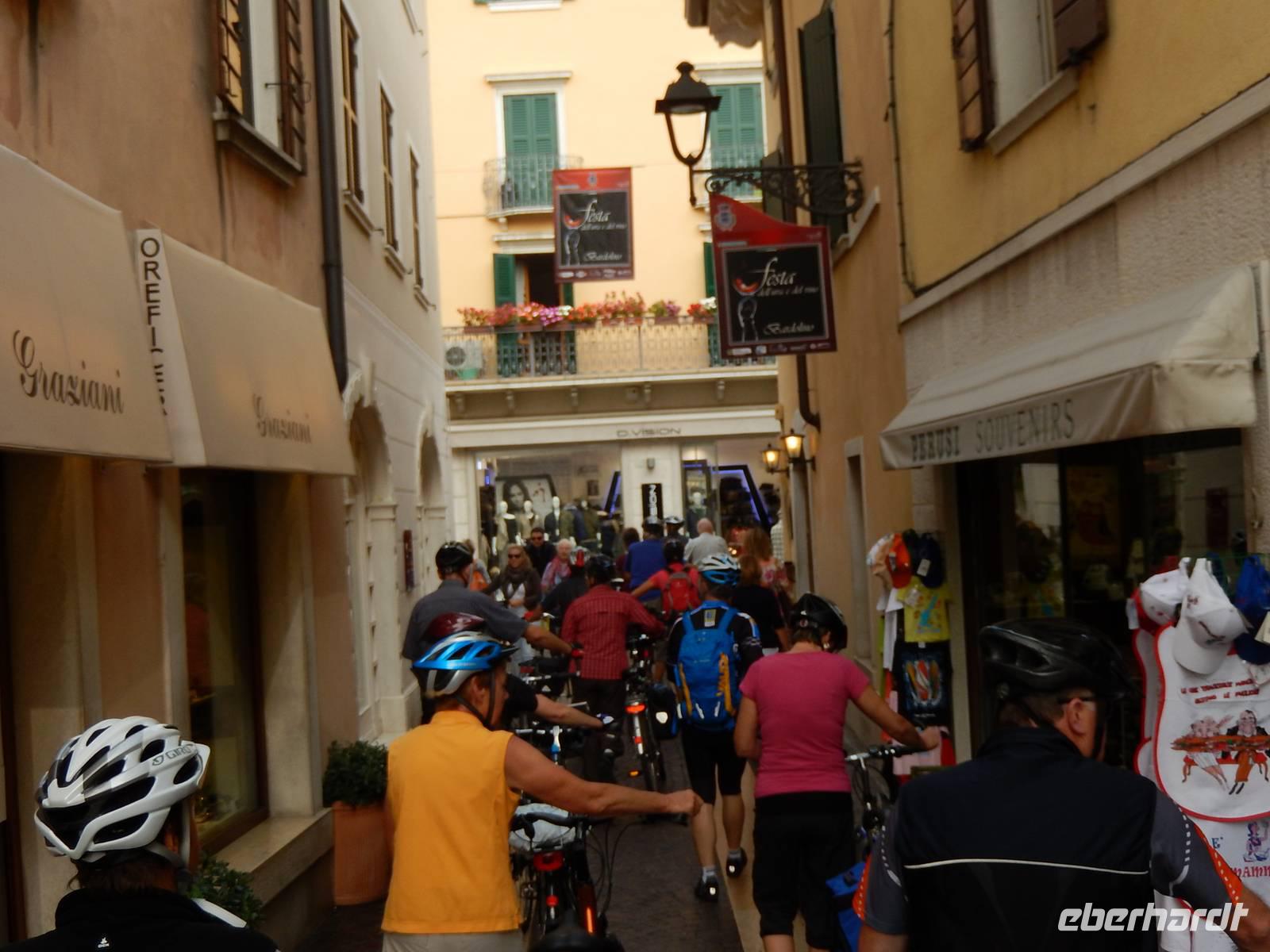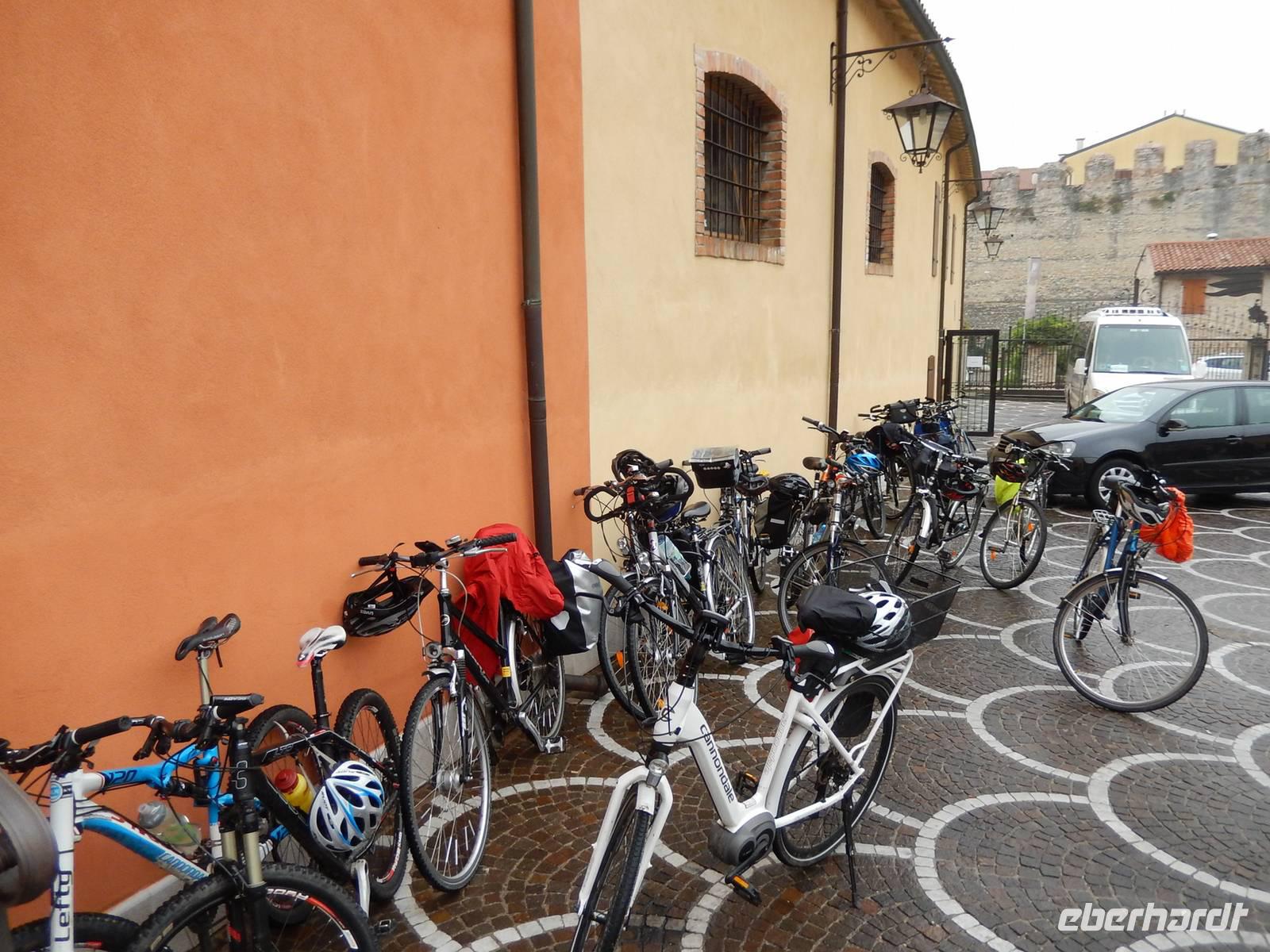 Zunächst fahren wir ein Stück mit dem Bus am Ostufer des Gardasees bis nach Garda. Diese Stadt gab dem See seinen Namen und strahlt schon ein deutliches mediterranes Flair aus. Hier beginnt unsere heutige Radtour zunächst entlang des Sees. In Bardolino verlassen wir den See, fahren ein Stück bergan und kommen durch eine vom Weinbau geprägte Region. In Bussolengo legen wir eine Mittagspause ein und jeder kann sich in einem der kleinen Bistros mit einem kleinen Imbiß versorgen. Wir fahren weiter Richtung Verona und haben vom Radweg aus immer wieder einen schönen Blick in das Etsch-Tal. In Verona endet der Radweg. Wir treffen unseren Bus, laden die Räder ein und fahren die letzten 4 Kilometer bis zum Hotel mit dem Bus. Wir checken ein, machen uns frisch und sind bereit für die Erkundungen auf den Spuren von Romeo und Julia. Stefano, unser Stadtführer, vermittelt sein Wissen über die Stadt anschaulich und unterhaltsam. Aber er nimmt uns auch so manche Illusion rund um die Geschichte mit Romeo und Julia. Wir enden mit unserem Rundgang an der Arena und wer möchte, hat dann noch Zeit, eigene Erkundungen in Angriff zu nehmen. Der Bus holt uns schließlich ab und bringt uns zum Hotel.
