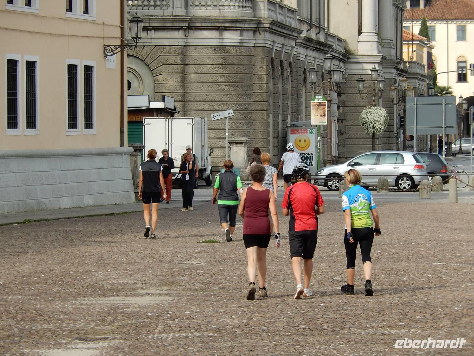 Zunächst fahren wir mit dem Rad die wenigen Kilometer in das Stadtzentrum von Vicenza. Denn was wir gestern vom Monte Berico sahen, wollen wir nun etwas näher erkunden. So geben uns Raimond und Jens Zeit, die quirlige Stadt zu erkunden. Viele kleine Gassen, herrliche Innenhöfe und schlussendlich auch das Markttreiben auf dem Hauptplatz lassen die Zeit für Jeden schnell vergehen. Nun kämpfen wir uns mit den Rädern aus der Stadt und finden auf dem Weg nach Abano Terme einen ruhigen Radweg. Unterwegs unser obligatorischer Stopp in einer Pasteria und am zeitigen Nachmittag erreichen die Stadt der Thermalbäder. Und selbstverständlich nutzen wir die Annehmlichkeiten unseres schönen 4* Hotels mit seinem eigenen Thermalbad. Nach einem sehr guten Abendessen ist noch viel Bewegung in der Lobby des Hotels. Es gibt die Möglichkeit, das Tanzbein zu schwingen und/oder den Tag mit einem Drink an der Hotelbar ausklingen zu lassen.