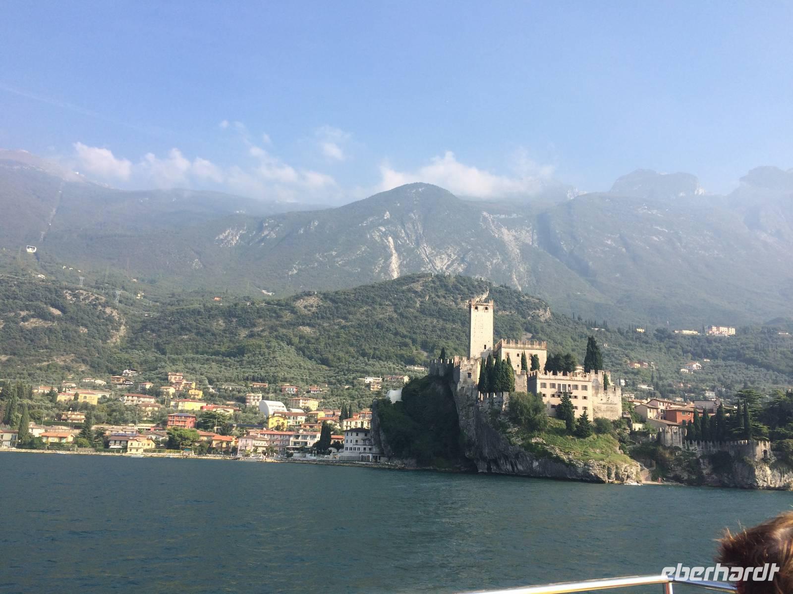Hier beenden wir unsere Tour und laden ein. Währenddessen gibt es einen kleinen Busimbiss. Zurück in Riva fahren wir mit dem Schiff nach Limone. In dieser alten Grenzstadt der Republik Venedig besuchen wir einen Zitronengarten. Dort führt uns der "Papst" der Zitronen persönlich und weiht uns in die Geheimnisse des Anbaus ein. Natürlich darf auch ein Probeschlückchen des legendären Zitronenlikörs Limoncello nicht fehlen! Auf dem Sonnendeck des kleinen Ausflugbootes setzen wir noch nach Malcesine über. Mit dem Bus fahren wir zurück nach Riva und wer möchte, genießt noch etwas Freizeit in der Stadt am Nordufer des Gardasees.