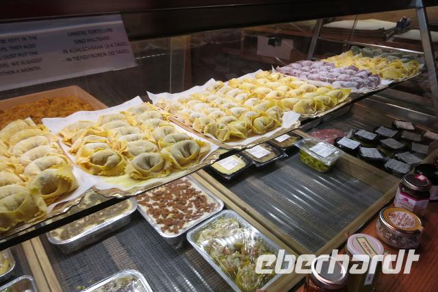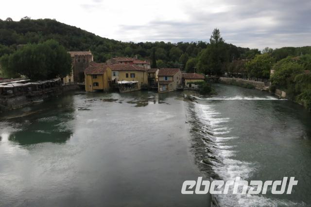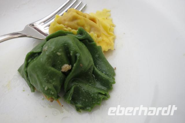 Alle waren pünktlich beim Früstück und am Bus und um 8:45 machten wir uns im Bus auf nach Garda um den Tourguide Raimond abzuholen. Jetzt rollten wir weiter nach Pesquera, hier konnten die Räder wieder an die Luft. Raimond beschrieb den Strecken - u. Tagesablauf und los ging die Fahrt - noch nicht ganz, denn in Pesquera war Markt durch den wir erst einmal durch mussten. Anders als in der Tourbeschreibung fuhren wir erst am Minicio entlang Richtung Modena. Im Parc de Minicio konnten wir ohne Verkehr entspannt in den Tag radeln. Bei Monzambano verliessen wir das Flusstal um nach Valeggio sul Mincio zu kommen. Hier hatte Raimond eine Überraschung eingebaut. In einer Tortellini-Manufaktur konnten wir die Mittagspause einlegen. Leider war der Betrieb schon geschlossen, aber wir konnten einige Kostproben der frisch zubereiteten Tortellini probieren. Dazu gab es ein Glas regionalen Wein.