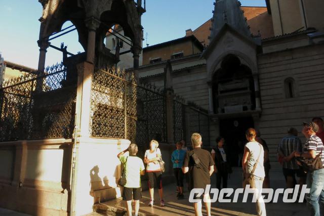 Natürlich kamen wir auch an Romeo und Julia nicht vorbei, auch wenn das Standbild der Julia dicht umlagert war liessenes sich einige nicht nehmen Julia zu berühren, das soll Glück bringen. An der Arena schloß sich der Kreis und wir spazierten zum Hotel um uns für das Abendessen zu richten. Nach einem kurzen Fußweg liessen wir in einem italienischen Lokal den interessanten Tag ausklingen.