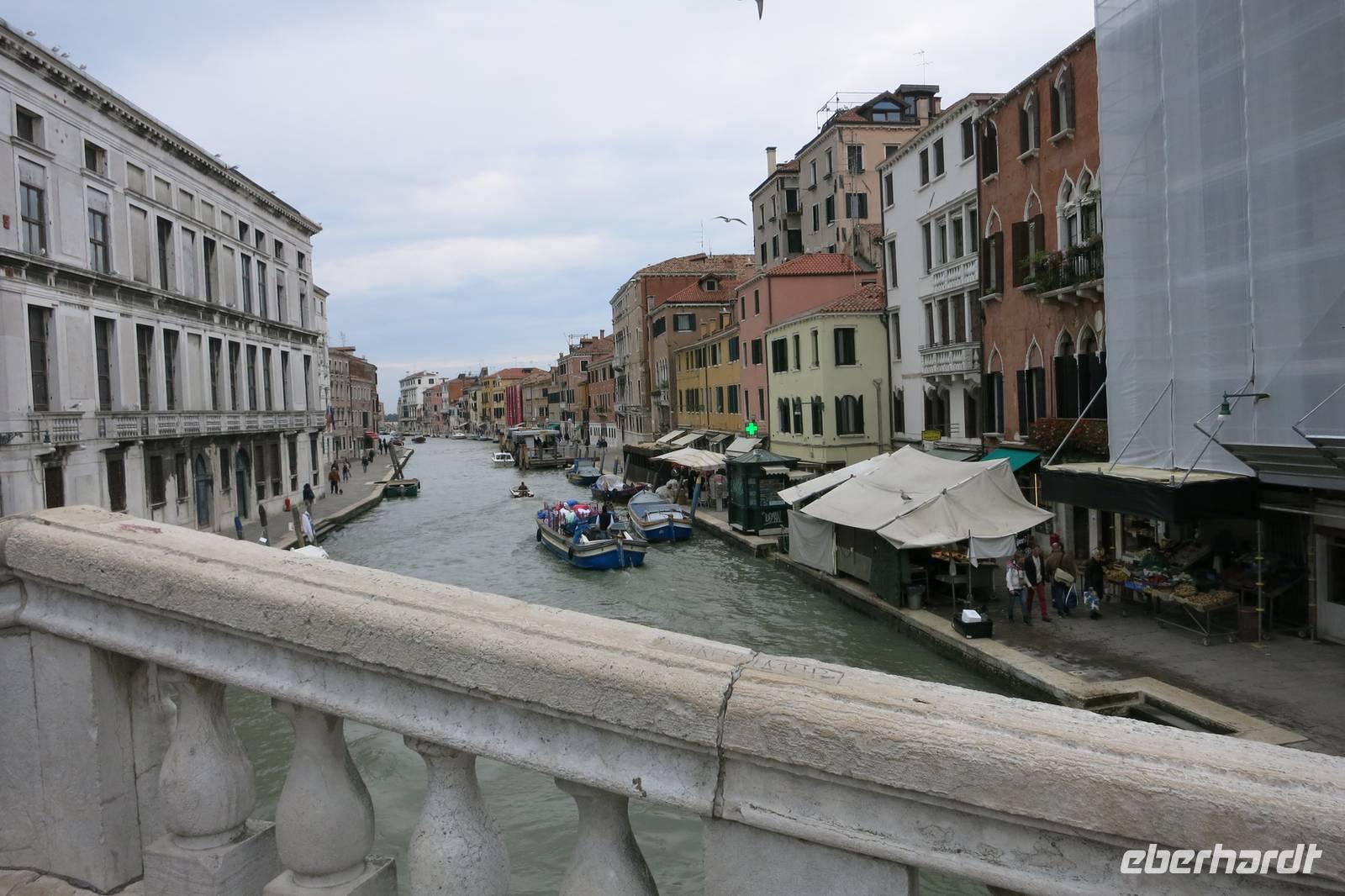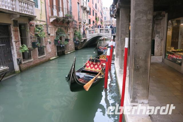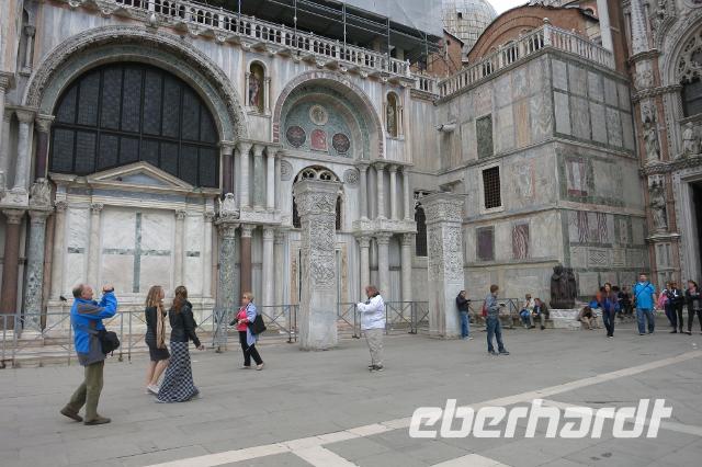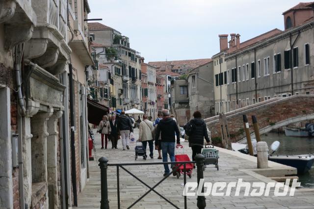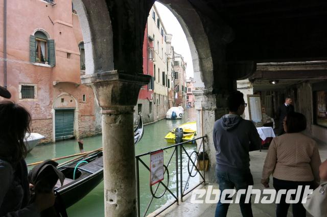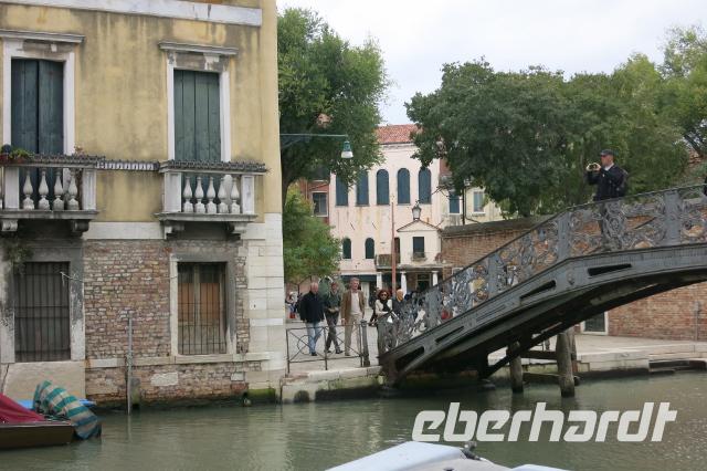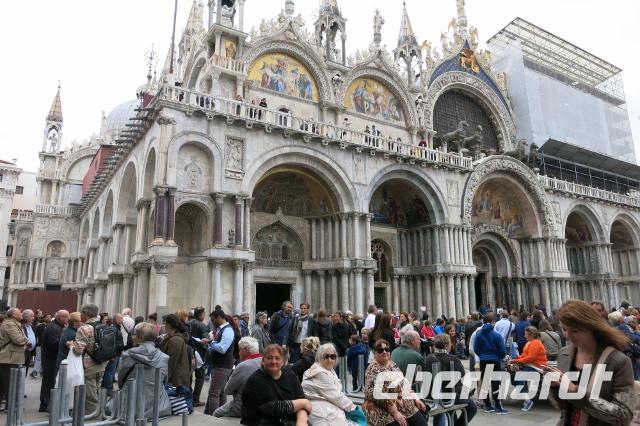 unseren Weg zur ersten Kirche von Venedig säumten. Ein schönes Bild gaben auch zwei Hochzeitspaare ab die ihren Jubeltag hier begingen. Auf unseren Wunsch brachte uns das Boot zum Markusplatz . Von hier bummelten wir noch einmal über die Rialto Brücke durch die