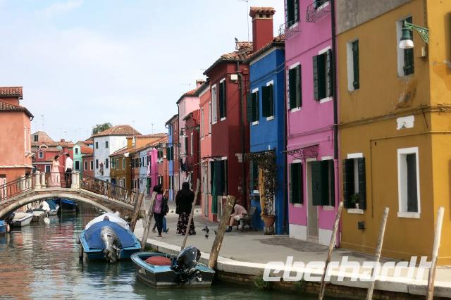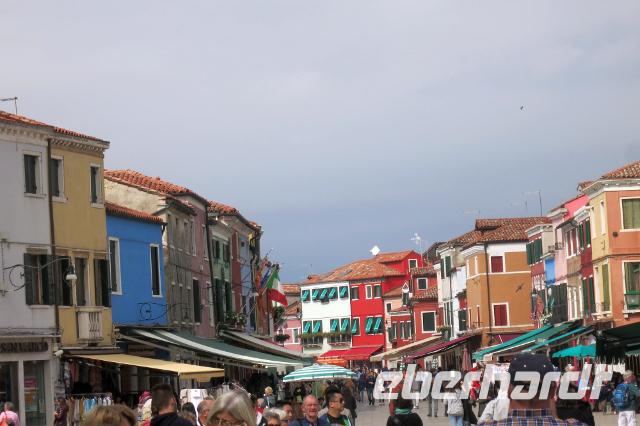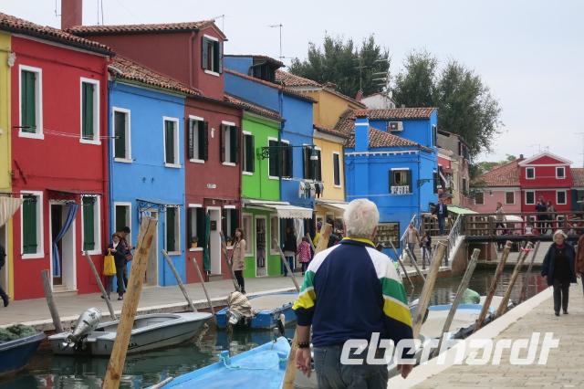 Glasbläsern über die Schulter schauen und bei der Herstellung eines Pferdes und einer Vase dabei sein. Ein Bummel durch die Glasmacher Insel vervollständigte den Besuch. Jetzt ging die Fahrt weiter nach Burano , ein zauberhaftes Fischerdorf das seinen Reiz nicht verloren hat. Auch hier Kanäle, aber die begehbaren Wege waren breiter und natürlich nicht so voll. Die kleinen bunten Häuschen waren auch entzückend dekoriert und so wurden zahlreiche Fotos geschossen. Nach einem ausgiebigen Rundgang trafen wir uns wieder am Boot um die dritte Station unserer Lagunenfahrt zu besuchen. Hier war die Landschaft eine völlig andere, waren schon der Meeresboden bewachsen erlebten wir hier grüne Gärten, Blumen und Bäume die