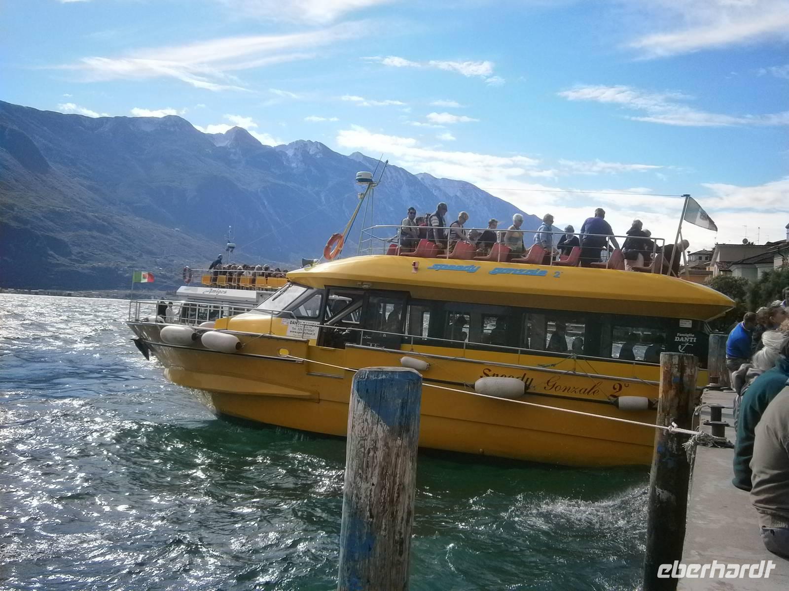 Das Privatboot bringt uns schließlich am Nachmittag zurück nach Riva und in den Abend- und Nachtstunden gehen mehrere Gewitter über der Region nieder.