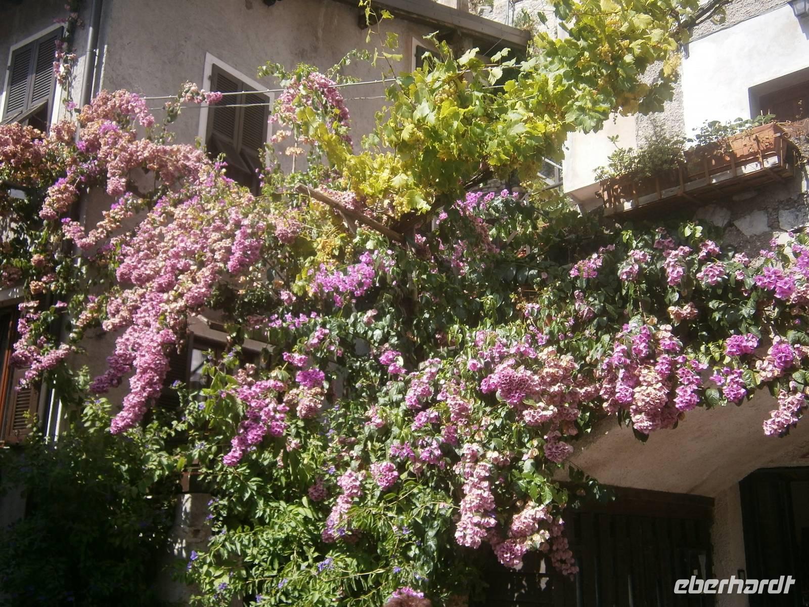 Am Nachmittag fahren wir vom Hafen in Sirmione, mit einem Linienschiff der Garda Navigatione, nach Garda. Vom Schiff aus sehen wir die nächst größere Stadt, Lazise. Die historische Altstadt wird umgeben von der im 14. Jahrhundert errichteten Stadtmauer und auch hier haben die Scaliger ihre Burg gebaut. Der Hafen, Anlegstelle der Ausflugsschiffe, wird eingerahmt von historischen Bauten, dazu gehört unter anderem die Kirche San Nicolo und das venezianische Arsenal. Hier hatte Venedig, seine Kriegsflotte stationiert. Nächste Anlaufstelle ist der Hafen von Bardolino - Wein- und Urlaubsort. Unter den Römern erhielt der Ort bereits seinen Namen. Er soll auf eine germanische Prinzessin namens Bardoli zurück gehen. Auch hier befinden sich an der Uferpromenade Reste einer Festung der Familie der della Scala. Der Ferienort zählt zu den beliebtesten am Gardasee und die Umgebung von Bardolino zu den bekanntesten Weinanbaugebiet - hier wird der gleichnamige Rotwein gekeltert. In Garda gehen wir von Bord unseres Ausflugsschiffes. Es heißt der Ort und auch der See verdanken ihren Namen der blauhaarigen Nymphe Engardina. Garda liegt eingebettet in einer langgezogenen Bucht, windgeschützt durch die umliegenden Berge und zeichnet sich daher durch ein besonders mildes Klima aus. Das zeigt sich in der üppigen Vegetation. Zypressen, Pinien, Zedern, Lorbeer und Myrthen gedeihen hier prächtig. Unsere Gäste haben Zeit durch die Altstadt und entlang der Uferpromenade zu bummeln. Die Fußgängerzone ist auch gleichzeitig die Hauptgasse „Corso Vittorio Emanuele", der Altstadt.