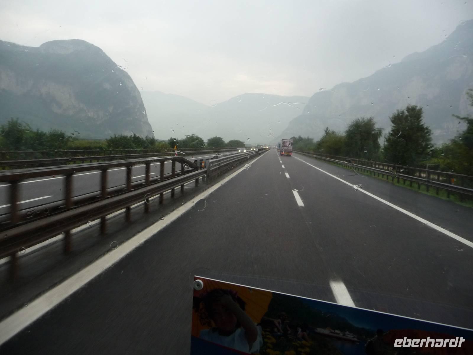 Auf der Hinfahrt nehmen wir die Route durch das schöne Allgäu, über den Fernpass, kommen an Innsbruck vorbei und sind bald auf der Brennerautobahn Richtung Süden. Das Wetter macht uns anfangs keine Freude, es ist neblig, aber wir fahren ja ins sonnige Italien, wie es heißt. Und als wir in Affi die Autobahn verlassen sehen wir erste Sonnenstrahlen und so wird es dann auch die nächsten Tage bleiben.