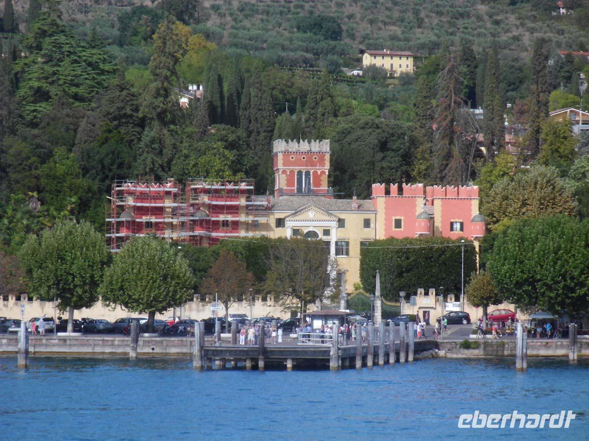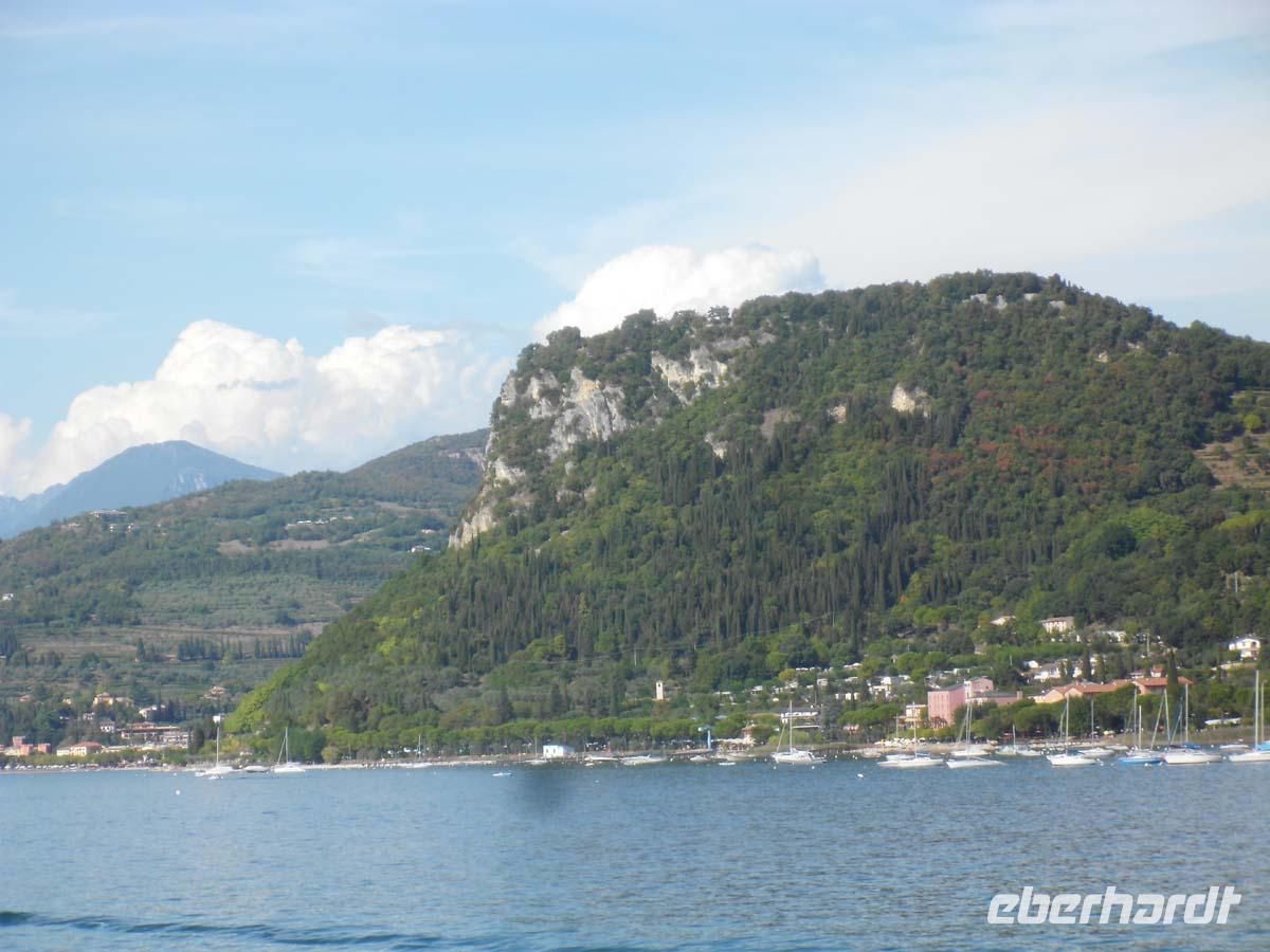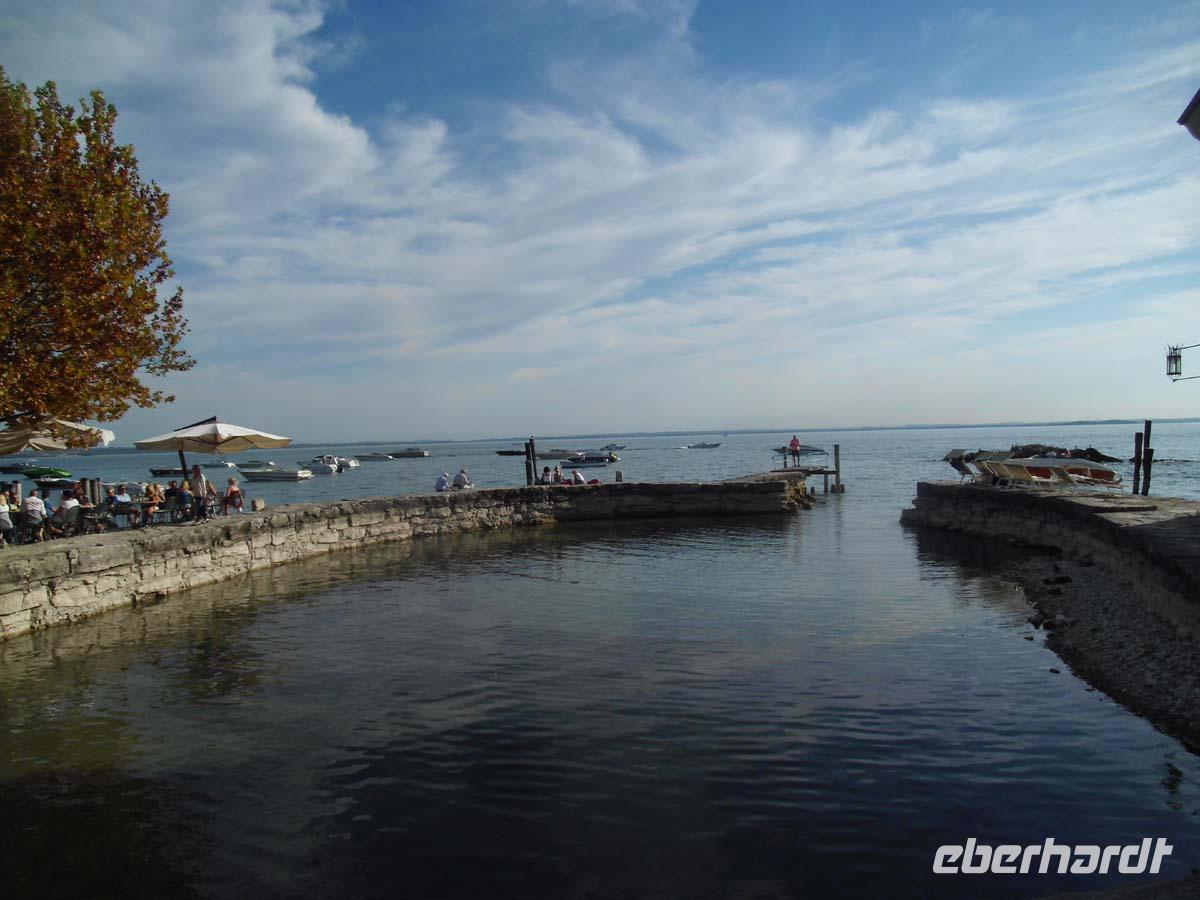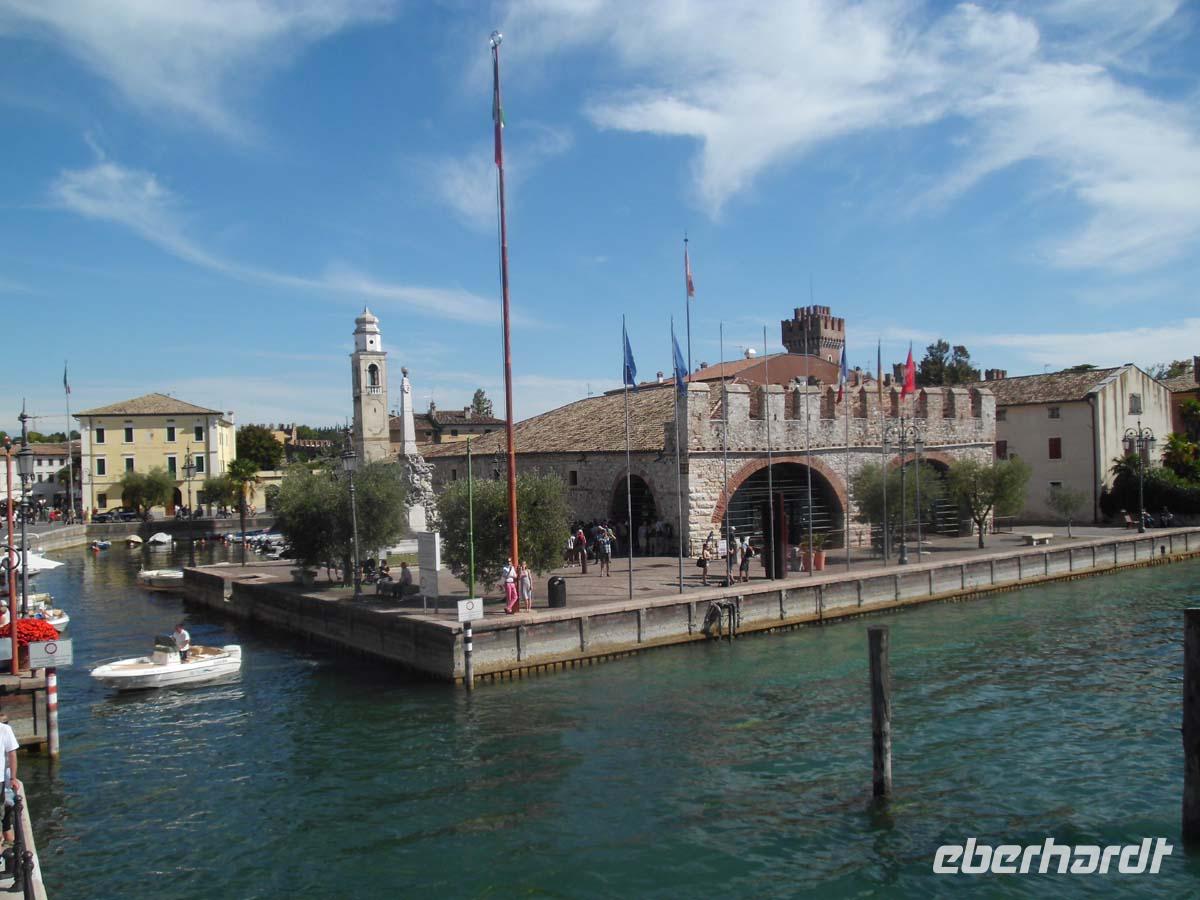 Schon als Torre del Benaco und Garda an uns vorbeiziehen wird uns klar, dass das Gebiet des Gardasees schon immer Reisenden aus dem Norden einen ersten Vorgeschmack auf das mediterrane Klima Italiens gewährte. Pinien, Zypressen und der all gegenwärtige Oleander, sowie Feigenbäume säumen unseren Weg. Olivenhaine zudem, gaben dem Ostufer dem Namen „Riviera degli Olivi", Olivenküste. Bardolino ist unser erstes Ziel. Ein kleines Städtchen, welches einem berühmten Weinbaugebiet seinen Namen gab. Natürlich kann man hier den Bardolino, einen trockenen Rotwein auch an jeder Ecke erwerben. Nachdem wir die alte Festungsstadt Peschiera an der Südostecke des Sees langsam durchfahren haben, lockt uns Sirmione. Diese schöne kleine Stadt liegt auf einer Halbinsel und war schon zur anitken Zeit Wohnsitz wohlhabender Römer. Sie machten sich schon die Heilquellen zu Nutze, die auch heute noch Jod-, Brom-, und Schwefelhaltig sprudeln. Bewacht wird der Zugang zur Stadt durch die mächtige Skaligerburg, Sitz des Geschlechtes della Scala (von der Treppe), die im 13. und 14. Jh. die Herrscher der Stadtrepublik Verona waren. Typisch für ihre Burgen sind die Schwalbenschwanzzinnen, die sich allenthalben um den Gardasee herum finden. Genutzt haben sie nix, denn 1360 wurde das Gebiet von der Stadtrepublik Venedig erobert. Wir erobern die Eisdielen und folgen dem legendären Ruf dieser Italienischen Leckerei. Doch dann besteigen wir das Schiff und setzen über den Gardasee mit Haltepunkten in Lazise und Bardolino nach Garda über. Garda, ebenso herrlich verwinkelt und voller Charme, gab dem gesamten See seinen Namen, der in römischer Zeit lacus benacus hieß. Nachdem wir einige Zeit durch die malerischen engen Gassen geschlendert sind, halten wir noch an der berühmten Landzunge Punta San Vigilio. Hier baute sich der Humanist Agostino di Brenzone ein herrliches Kunstwerk aus Palast und Garten. Es ist immer noch im Besitz der Familie, aber schon seit längerem ein exklusives 5 Sterne Hotel. Winston Churchill und Viviane Leigh logierten hier, und Otto Hahn verbrachte hier sogar seine Flitterwochen. Nach so viel Gesehenem ist es Zeit für unser leckeres 3 Gänge Wahlmenü in Torbole.