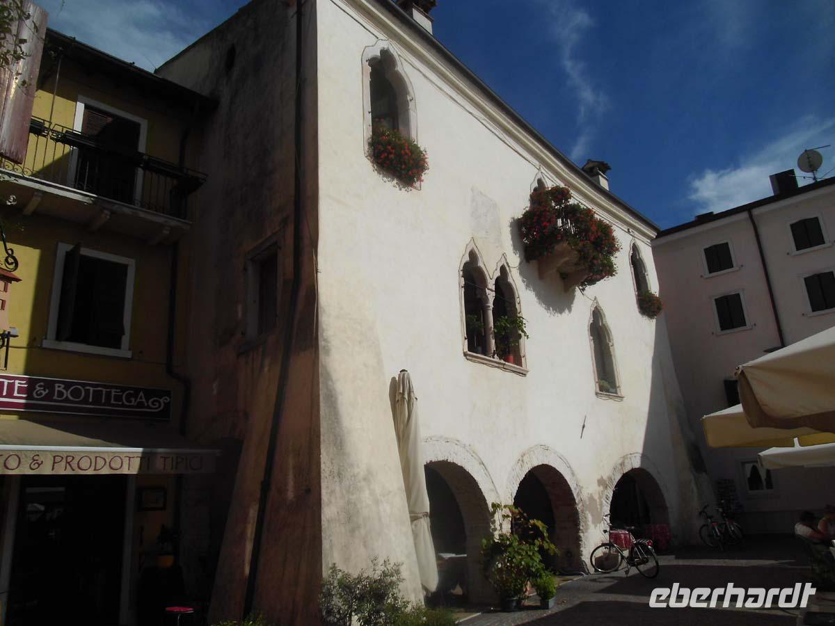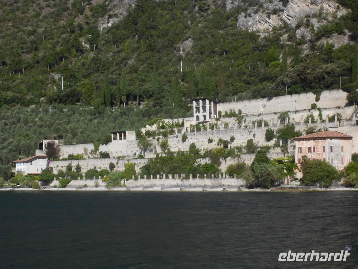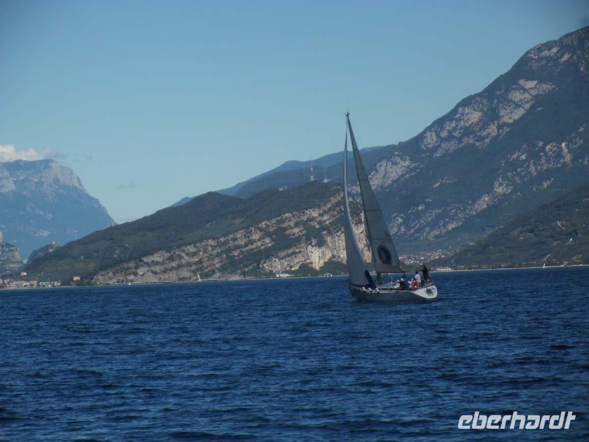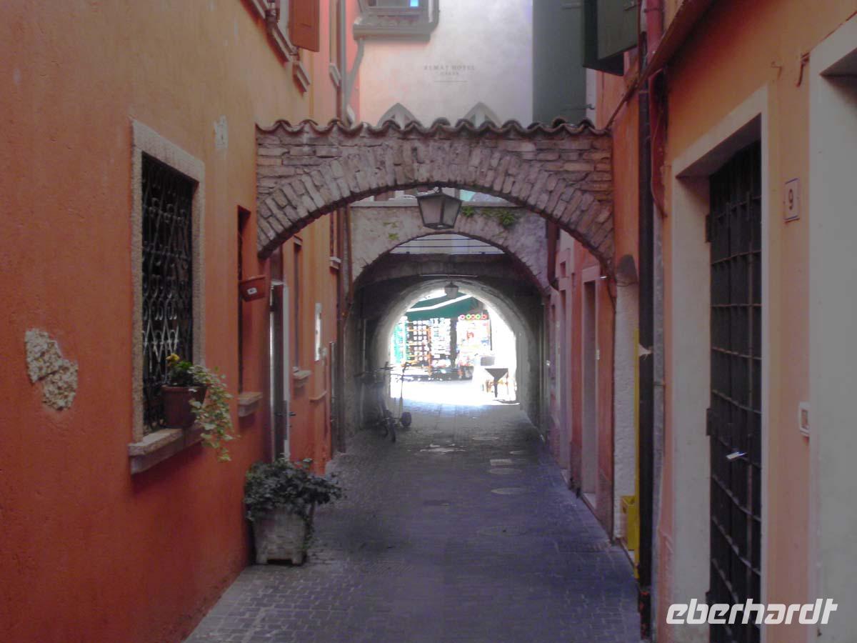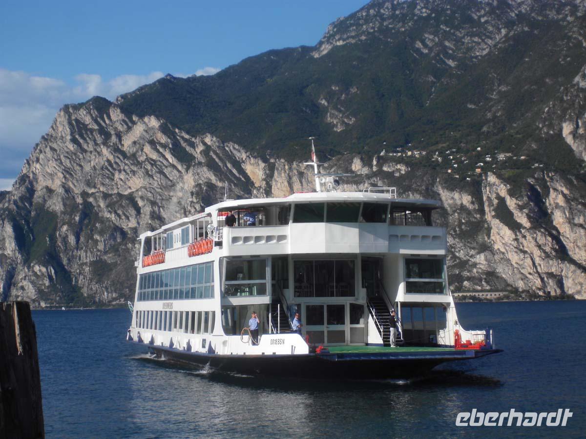 Schon als Torre del Benaco und Garda an uns vorbeiziehen wird uns klar, dass das Gebiet des Gardasees schon immer Reisenden aus dem Norden einen ersten Vorgeschmack auf das mediterrane Klima Italiens gewährte. Pinien, Zypressen und der all gegenwärtige Oleander, sowie Feigenbäume säumen unseren Weg. Olivenhaine zudem, gaben dem Ostufer dem Namen „Riviera degli Olivi", Olivenküste. Bardolino ist unser erstes Ziel. Ein kleines Städtchen, welches einem berühmten Weinbaugebiet seinen Namen gab. Natürlich kann man hier den Bardolino, einen trockenen Rotwein auch an jeder Ecke erwerben. Nachdem wir die alte Festungsstadt Peschiera an der Südostecke des Sees langsam durchfahren haben, lockt uns Sirmione. Diese schöne kleine Stadt liegt auf einer Halbinsel und war schon zur anitken Zeit Wohnsitz wohlhabender Römer. Sie machten sich schon die Heilquellen zu Nutze, die auch heute noch Jod-, Brom-, und Schwefelhaltig sprudeln. Bewacht wird der Zugang zur Stadt durch die mächtige Skaligerburg, Sitz des Geschlechtes della Scala (von der Treppe), die im 13. und 14. Jh. die Herrscher der Stadtrepublik Verona waren. Typisch für ihre Burgen sind die Schwalbenschwanzzinnen, die sich allenthalben um den Gardasee herum finden. Genutzt haben sie nix, denn 1360 wurde das Gebiet von der Stadtrepublik Venedig erobert. Wir erobern die Eisdielen und folgen dem legendären Ruf dieser Italienischen Leckerei. Doch dann besteigen wir das Schiff und setzen über den Gardasee mit Haltepunkten in Lazise und Bardolino nach Garda über. Garda, ebenso herrlich verwinkelt und voller Charme, gab dem gesamten See seinen Namen, der in römischer Zeit lacus benacus hieß. Nachdem wir einige Zeit durch die malerischen engen Gassen geschlendert sind, halten wir noch an der berühmten Landzunge Punta San Vigilio. Hier baute sich der Humanist Agostino di Brenzone ein herrliches Kunstwerk aus Palast und Garten. Es ist immer noch im Besitz der Familie, aber schon seit längerem ein exklusives 5 Sterne Hotel. Winston Churchill und Viviane Leigh logierten hier, und Otto Hahn verbrachte hier sogar seine Flitterwochen. Nach so viel Gesehenem ist es Zeit für unser leckeres 3 Gänge Wahlmenü in Torbole.