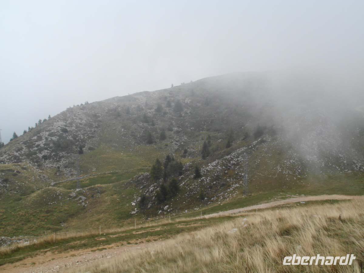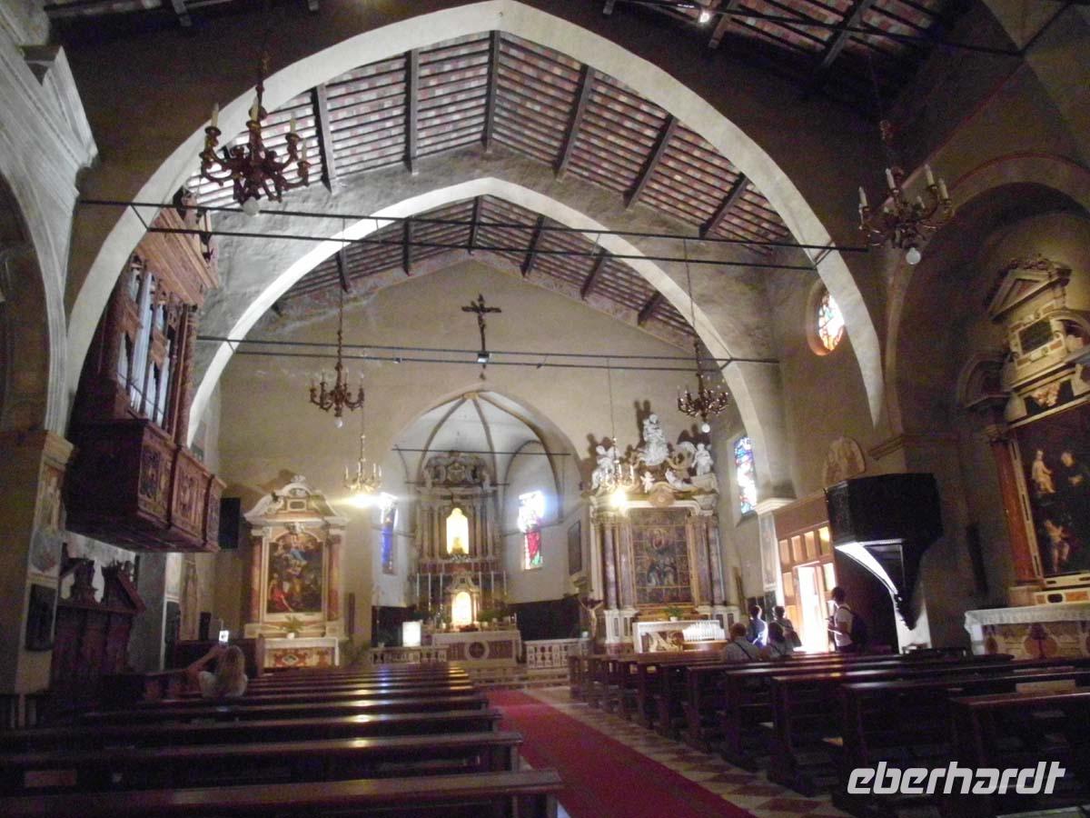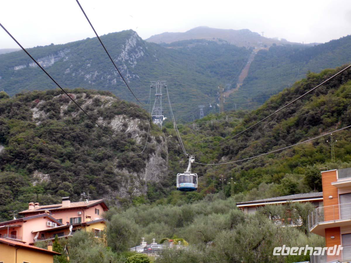Morgens geht es mit der Seilbahn in luftige Höhen. Wir starten mit ihr von Malcesine aus und sind in 10 min auf eine Höhe von mehr als 1700 m. Doch ach, war unten noch eitel Sonnenschein, so befinden wir uns nun mitten in den Wolken. Die Temperatur ist auch um mindestens 10 Grad gefallen. Doch ein kleiner Spaziergang ist trotzdem drin. Auf dem Rückweg kann man aber auch an der Mittelstation aussteigen, und hat von hier aus bei klarer Sicht einen nicht minder schönen Blick auf den See von oben. Etliche nutzen auch die schöne Landschaft, und gehen per pedes durch Olivenhaine zwischen uralten Mauern und Gehöften zurück in die Stadt. Diese ist sehr geschichtsträchtig und entwickelte sich ab dem 6. Jh. um eine langobardische Burg auf dem Felsen direkt am See. Nach den Franke bauten diese die Skaliger zur heutigen Größe aus. Durch enge gewundene Gassen und über malerische Plätze gelangt man zu ihr, wie schon Goethe im Jahr 1786. Der wurde sogar beim Abzeichnen der Anlage als österreichischer Spion verdächtigt, konnte den Verdacht gottlob aber ausräumen. Ein eigens eingerichteter Museumssaal erinnert an seinen Aufenthalt hier. Auch wir erklimmen den Bergfried und haben eine wunderbare Aussicht auf die verwinkelte Dachlandschaft der kleinen Stadt. Nun noch ein leckeres italienisches Eis als Lohn für den Aufstieg und dann reisen wir die kurze Strecke zu unserem Hotel zurück.