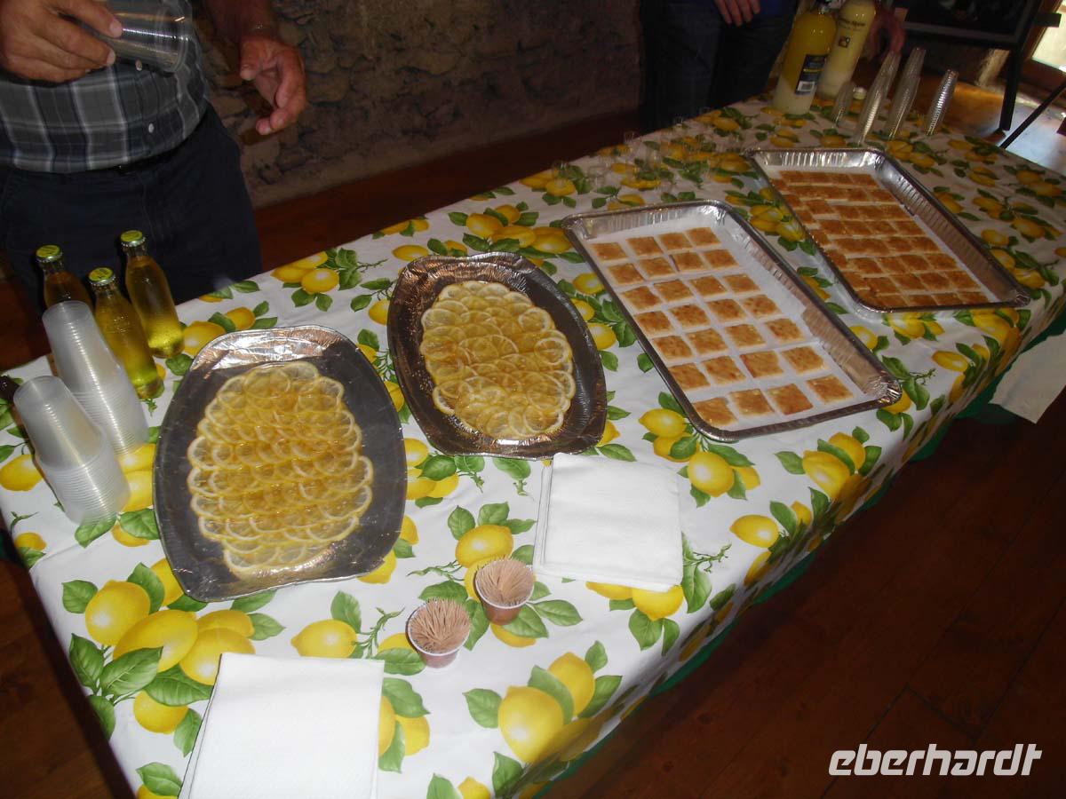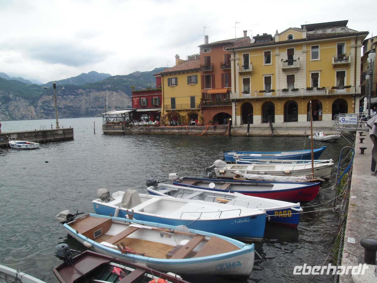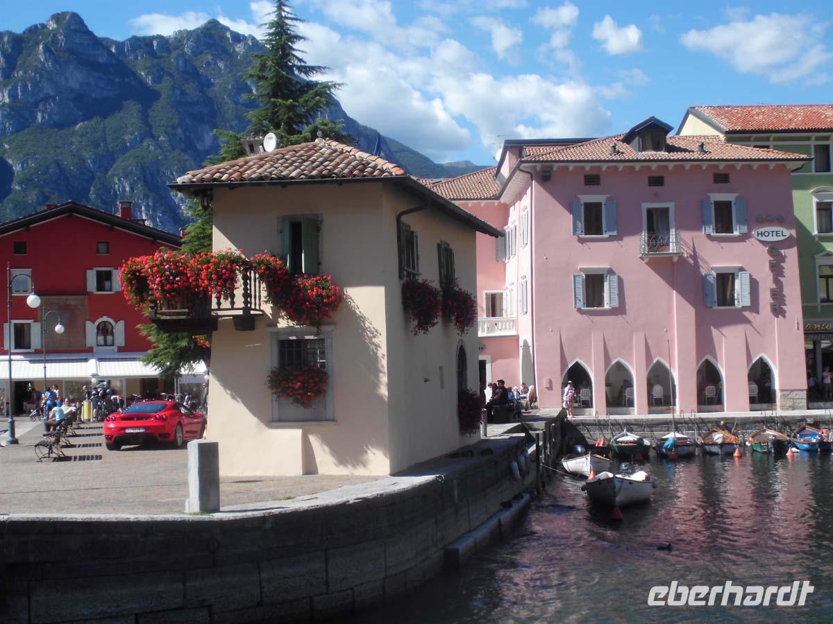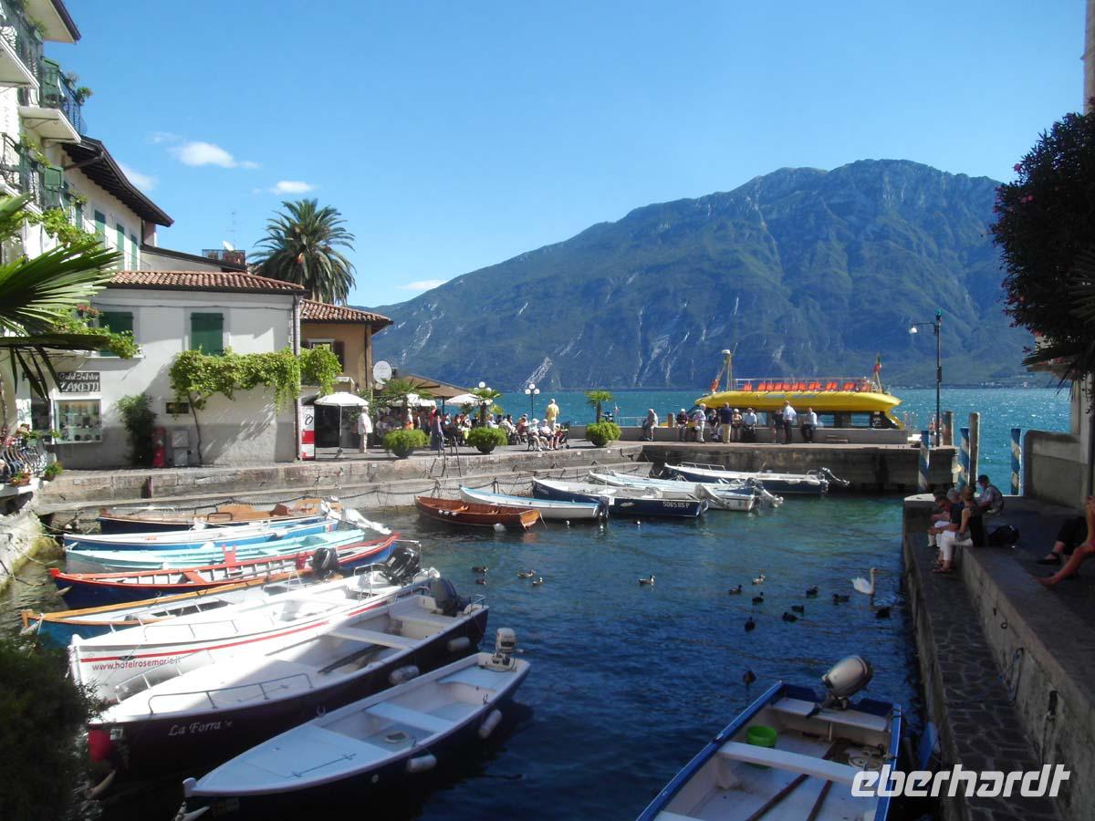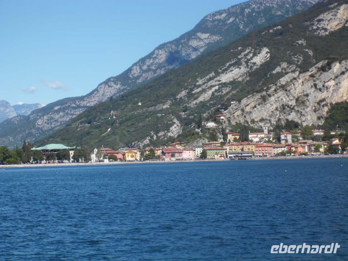 Zu Fuß begeben wir uns nach dem reichhaltigen Frühstücksbüffet zum Fähranleger um über den See nach Limone über zu setzen. Selbstverständlich wird für jene, die den Weg scheuen ein Shuttle bestellt. Bei herrlichem Wetter empfängt uns Renato in dem schönen Ort am Westufer. Schon von weitem haben wir die die eine oder andere Limonaia erblickt, die den Ort auszeichnen. Es handelte sich um Zitronengärten, die nördlichsten Europas. Durch die Ummauerung, zudem im Winter mit Fenstern und Dächern versehen, terrassenartig angelegt, gediehen die Zitrusfrüchte auch hier im Norden noch. Ab dem 15. Jh. wurden sie hier in mühevoller Arbeit gezogen und bis nach Nord- und Osteuropa exportiert. Heute rentiert sich das nicht mehr, und so werden nur noch wenige zu touristischen Zwecken unterhalten. Nach der umfangreichen Führung durch einen solchen verkosten wir die Marmelade aus Bitterorangen, den Limoncellolikör und Zitronencarpaccio. Alles sehr lecker und genau die richtige Grundlage um noch etliche Zeit den idyllischen Ort auf eigene Faust zu erkunden. Zurück in Torbole schlendern wir durch die engen Gassen der kleinen Ortschaft, nicht ohne wieder an einer Eisdiele hängen zu bleiben. Einfach zu köstlich ist das Eis und zu vielfältig die Sorten. Wer nun am freien Nachmittag Muße hat, legt sich an den Pool mit Blick auf die Bergwelt, oder unternimmt einen Spaziergang zum nur 1,5 km entfernten Riva, direkt an der Uferpromenade entlang.