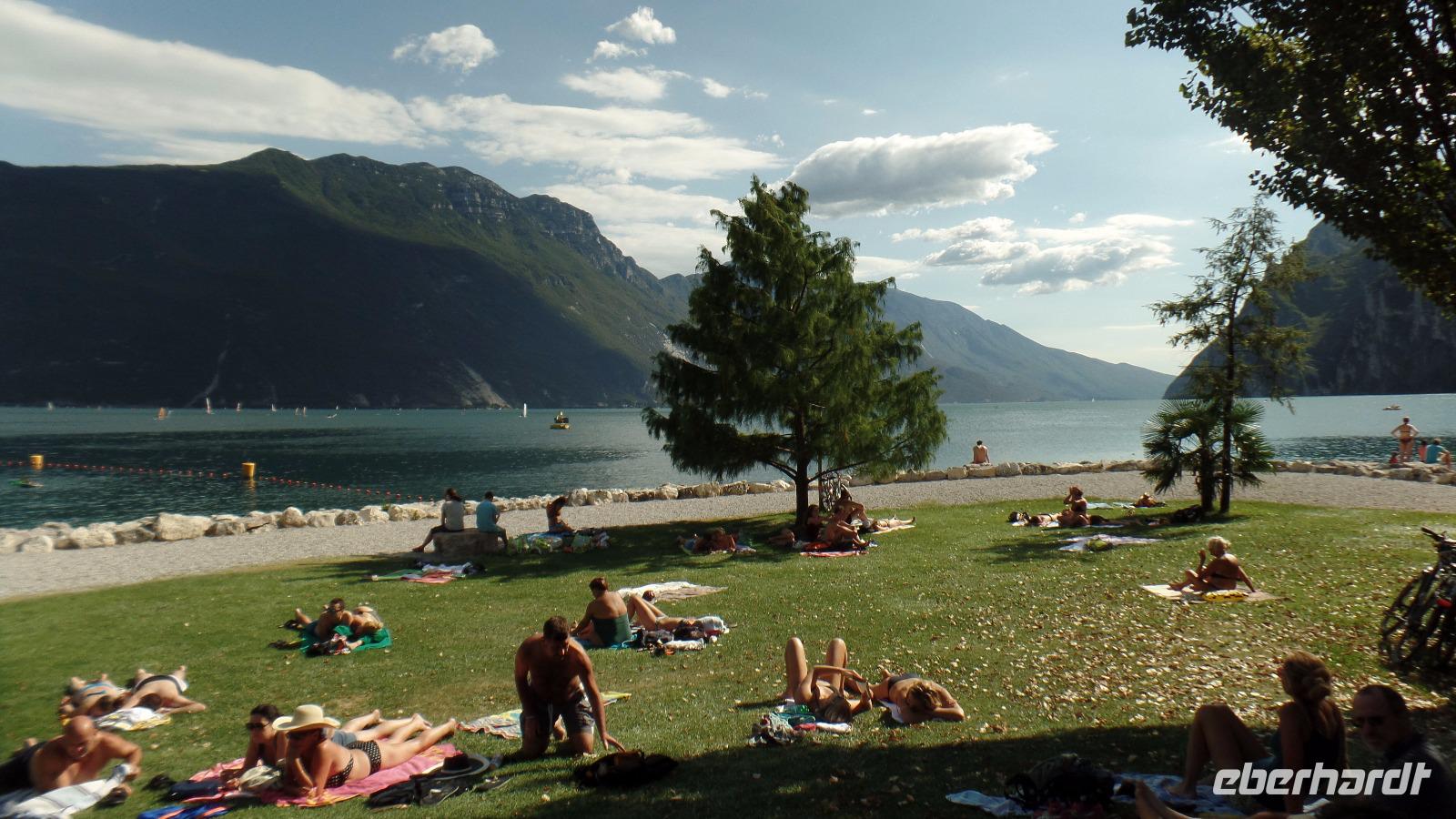 Wir haben noch Freizeit in Limone, ehe uns das Schiff wieder nach Riva bringt. Hier verbringen wir den Nachmittag. Wir relaxen, besichtigen die Altstadt mit venezianisch-österreichischer Architektur, können ein Stück am See entlang wandern. Bei der Hitze lockt ein Bad im Gardasee.