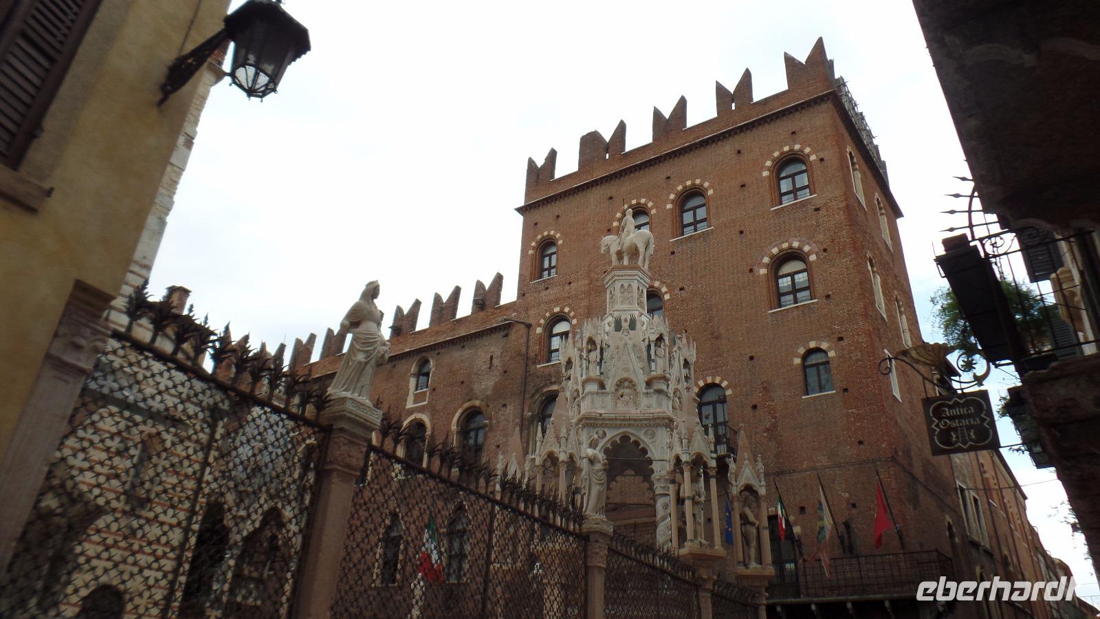 Dort erwartet uns unser Stadtführer Stefano. Nach einer kleine Rundfahrt genießen wir vom Santuario della Madonna di Lourdes den Blick über diese berühmte Stadt, die unter dem Schutz der UNESCO steht. Mit Stefano geht es zu Fuß weiter durch die engen Gassen mit den alten Palazzi. Er kann uns in der kurzen Zeit natürlich nur einen Teil der vielen Sehenswürdigkeiten zeigen. Er erklärt uns die Gebäude an der Piazza dei Signori, der Piazza delle Erbe, die Scaligergräber und natürlich das Haus der Julia.