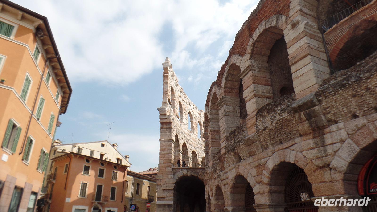 An der Piazza Bra mit der berühmten Arena, die die Stadt in der ganzen Welt bekannt gemacht hat, verabschieden wir uns von Stefano. Einige Gäste schauen sich noch die Arena von innen an. Ja und dann haben wir uns natürlich eine Erfrischung verdient. Die vielen Cafes und Restaurants locken zum Verweilen ein, ehe wir mit dem Shuttlebus zum Parkplatz fahren und uns unser Bus wieder ins Hotel bringt.