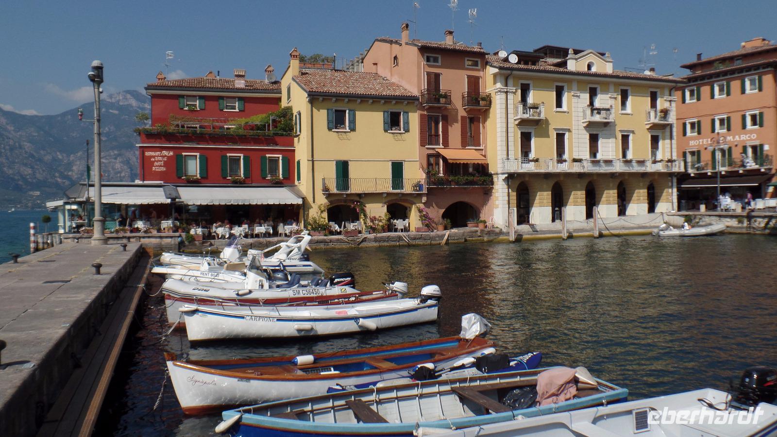 Je nach Lust und Laune fahren wir wieder hinab nach Malcesine. Das schöne mittelalterliche Städtchen mit der berühmten Scaligerburg ist eines der Hauptziele am Gardasee, entsprechend viele Touristen spazieren durch die Gassen. Man kann noch einmal ausgiebig italienische Köstlichkeiten genießen, ehe es zurück ins Hotel geht.