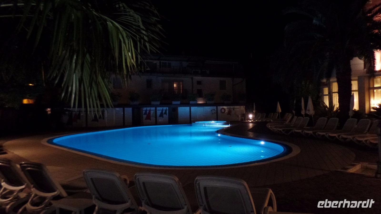 Heute gibt das Hotel Grappa aus, und wir sitzen bei dem herrlichen Hochsommerwetter noch abends bei Live-Musik unter Palmen auf der Terrasse.