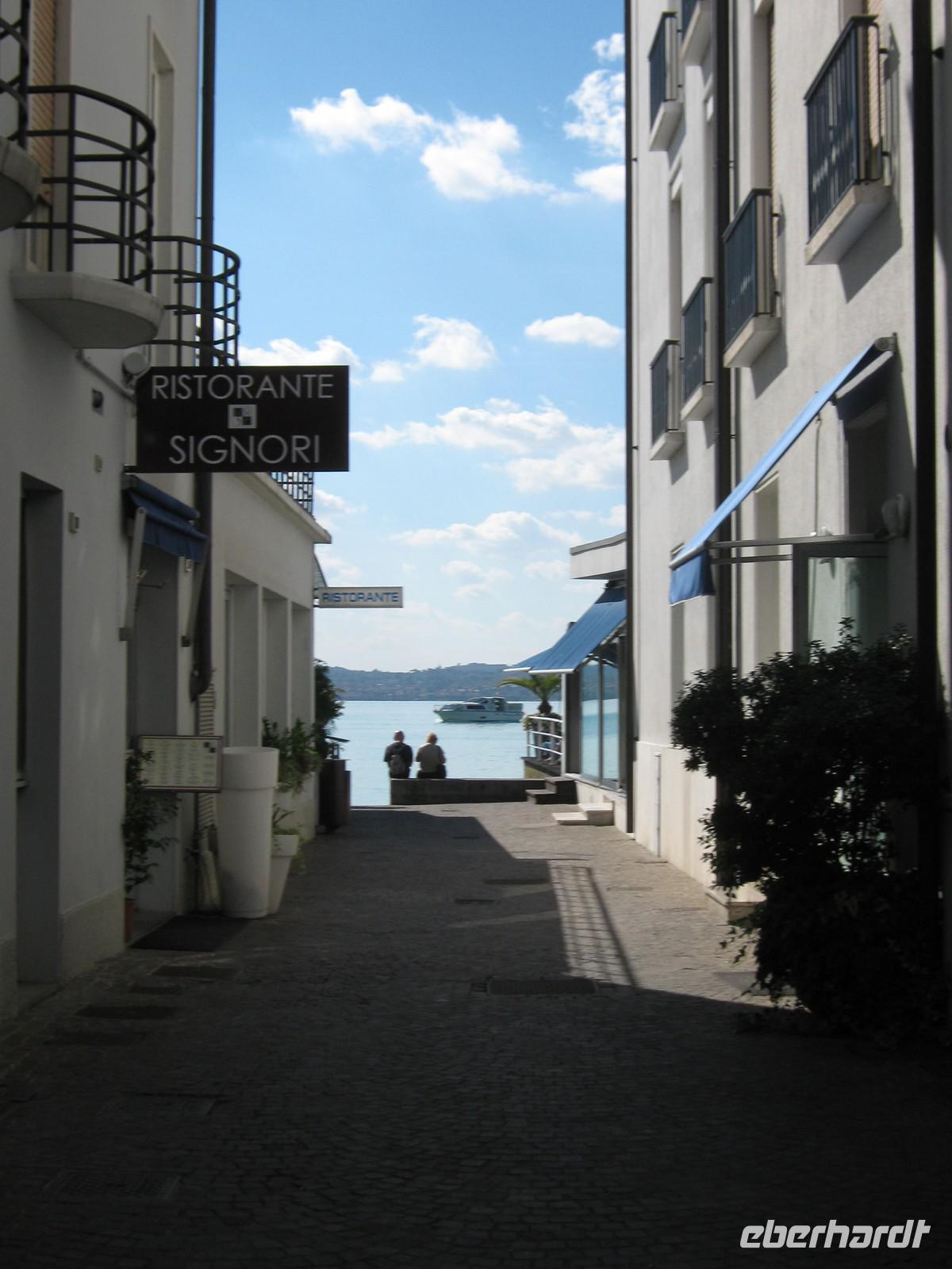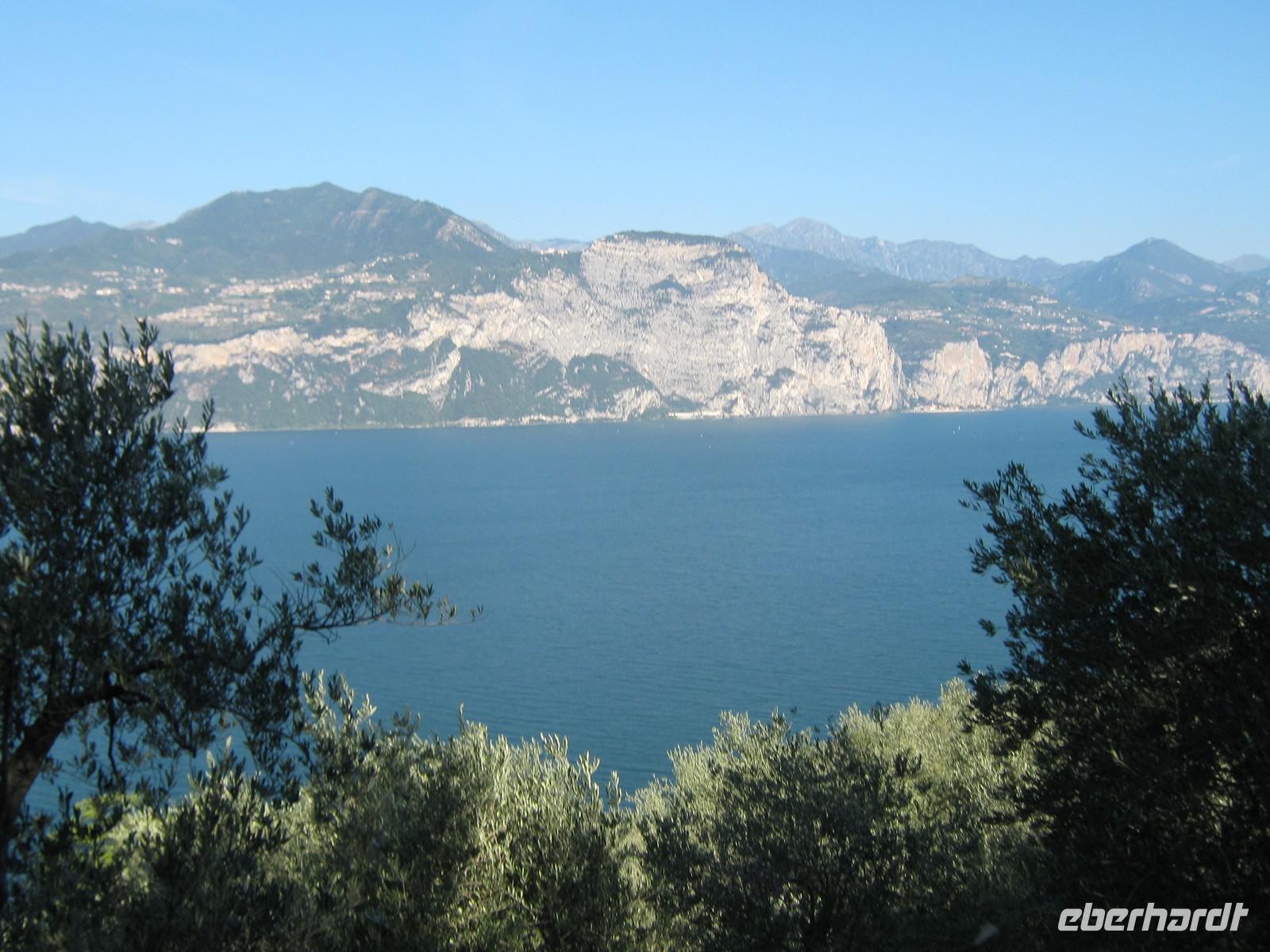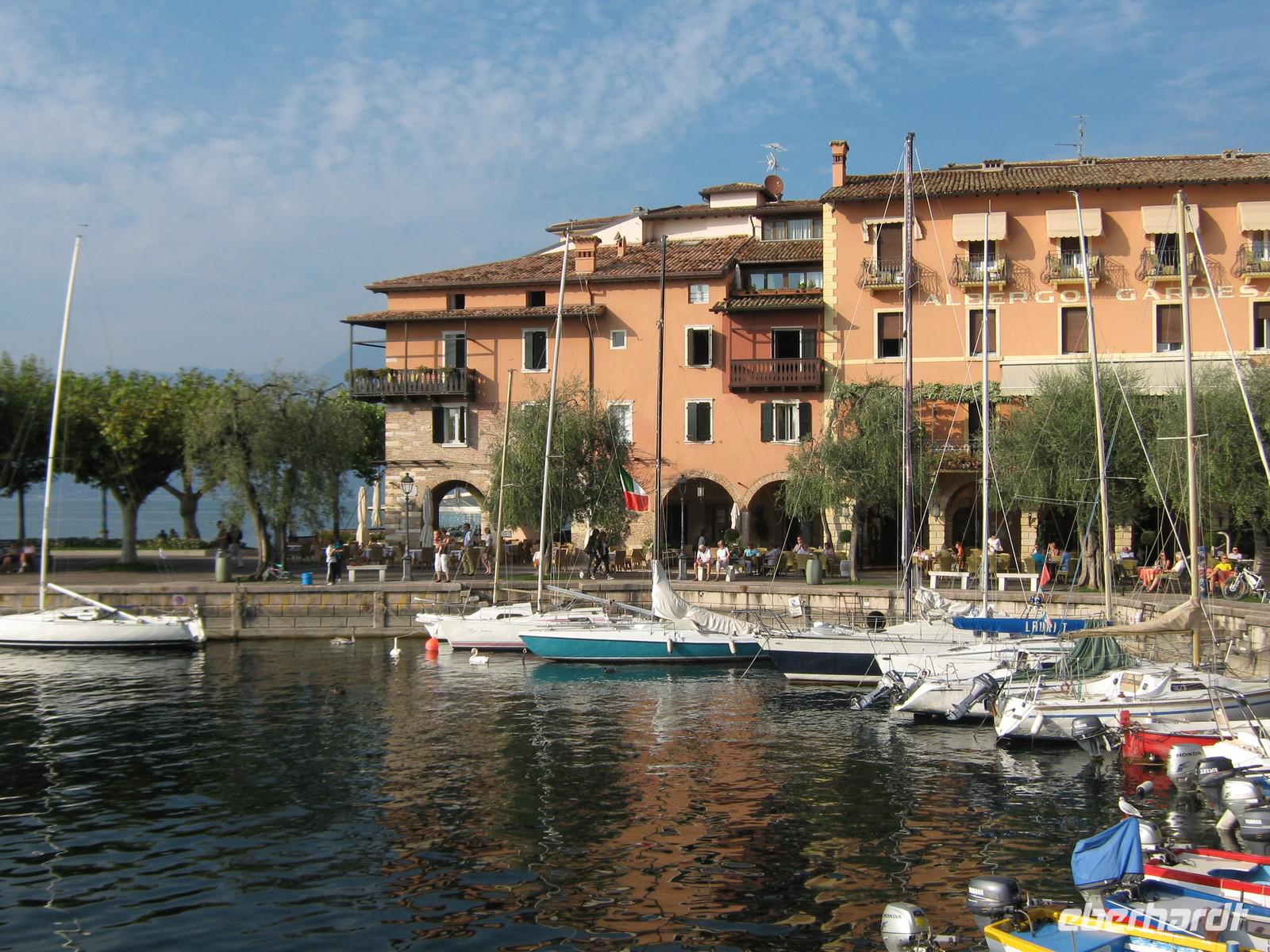 Der heutige Tag dient der Erholung!Auf dem Programm steht eine Schifffahrt über den Gardasee und so machen wir uns früh auf, um mit dem Bus nach Malcesine zu fahren. Der kleine Ort lädt vorher noch zu einem Bummel ein, wir beobachten, wie das Gewusel so langsam mehr wird. Dreiviertel 11 kommt dann auch schon unser Schiff, wir steigen ein und jeder sucht sich den besten Platz. Das Wetter ist traumhaft und so tankt jeder von uns Sonne satt. In den knapp 3 Stunden fahren wir einmal quer über den Gardasee, vorbei an Gargnano, Maderno, Gardone, Salo, Portese und Garda. In Sirmione erwartet uns Gedränge pur, der Ort ist überlaufen. Allerdings, wer etwas abseits des Stromes läuft, findet immer wieder kleine romantische Ecken, oft mit direktem Zugang zum Meer. Auch die alte Skaligerburg ist einen Besuch wert, hat man doch einen tollen Ausblick über die Stadt. Nachdem sich jeder von uns etwas gestärkt hat, machen wir uns langsam auf den Heimweg. In Bardolino machen wir nochmals halt. Verwandte unserer Gastleute betreiben hier ein Weingut und so nutzen wir die Gelegenheit, um reichlich Weiß-, Rot- und Rosewein sowie 2 verschiedene Grappa zu verkosten. Vorher haben wir uns natürlich noch kurz durch die heiligen Räume des Gutes führen lassen. Nach der Verkostung nehmen wir einige Souvenire mit, gerade auch das frische Olivenöl ist ein tolles Mitbringsel.