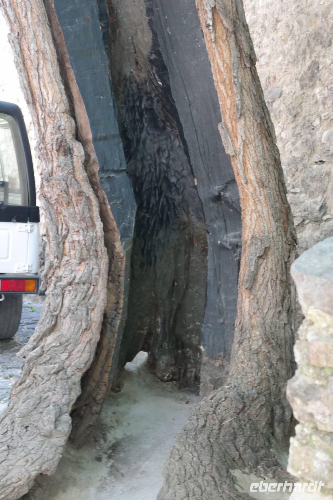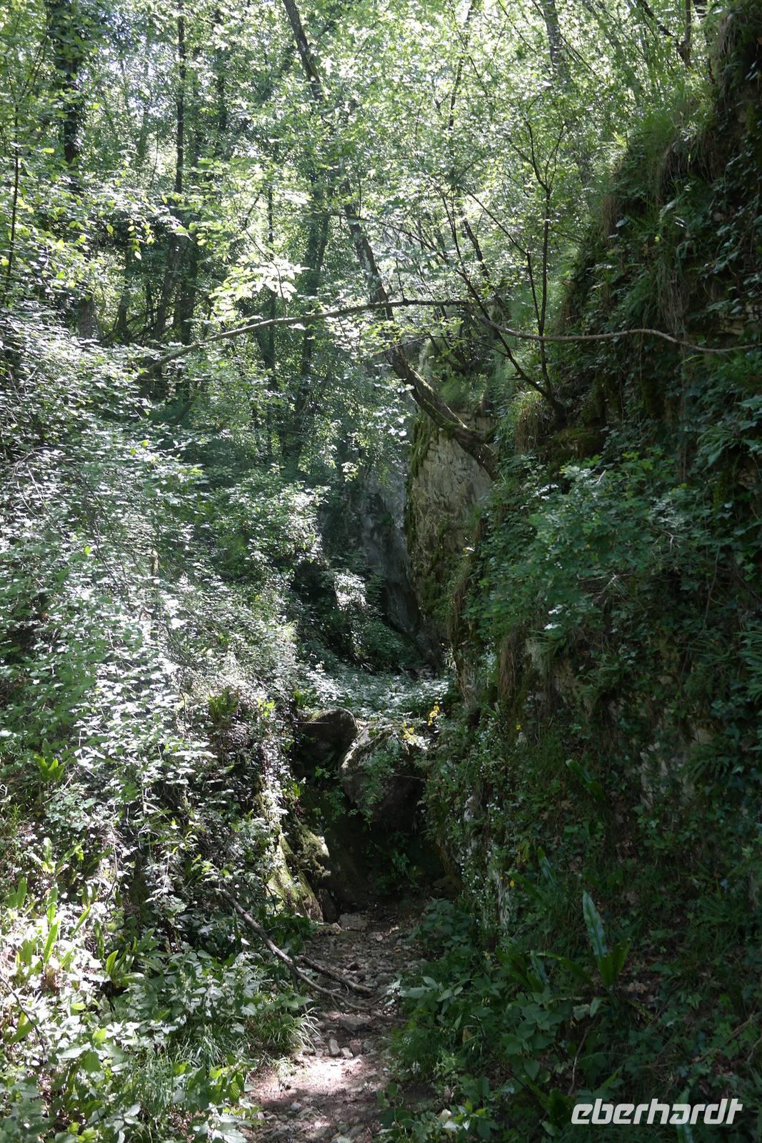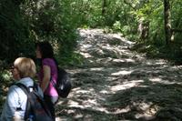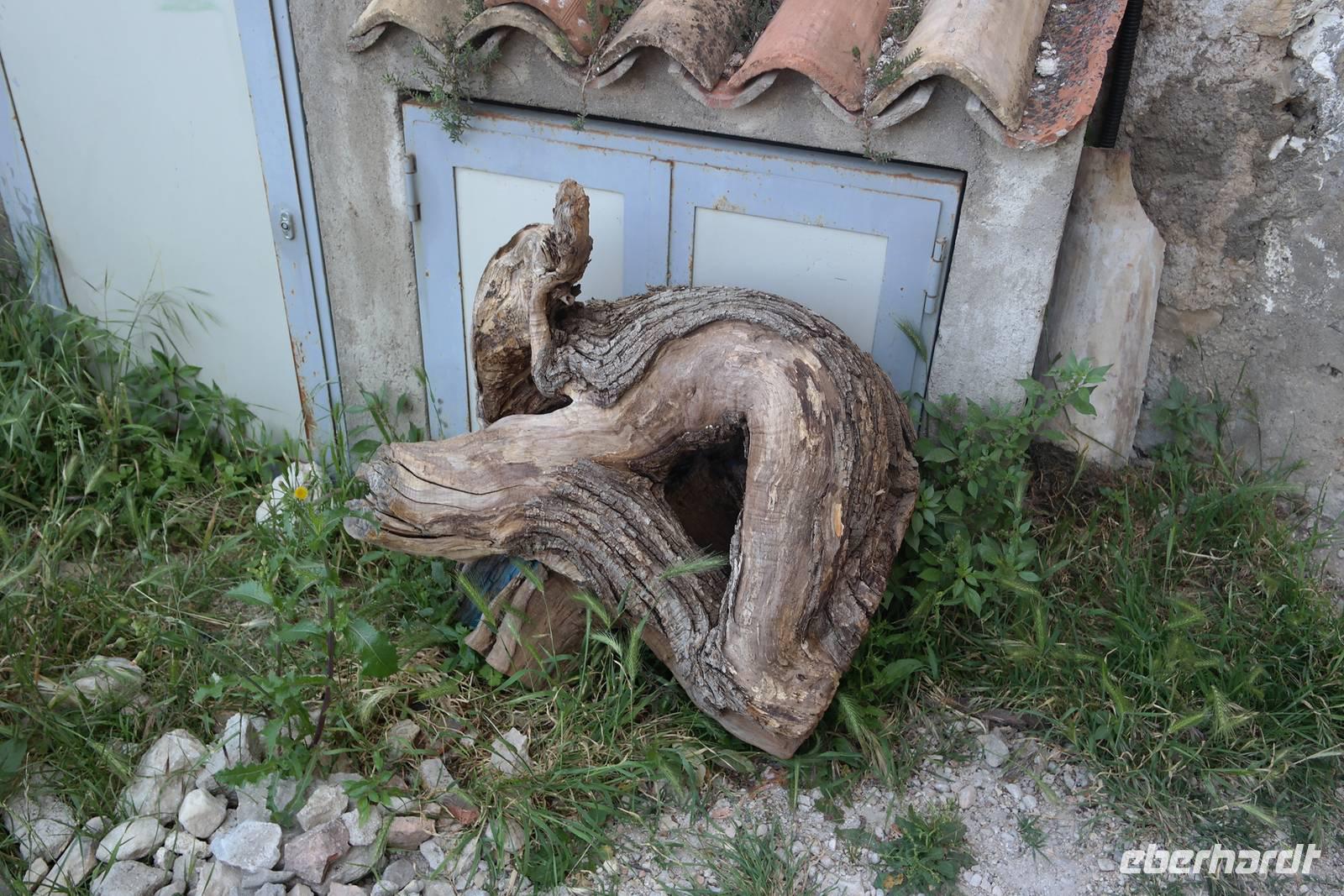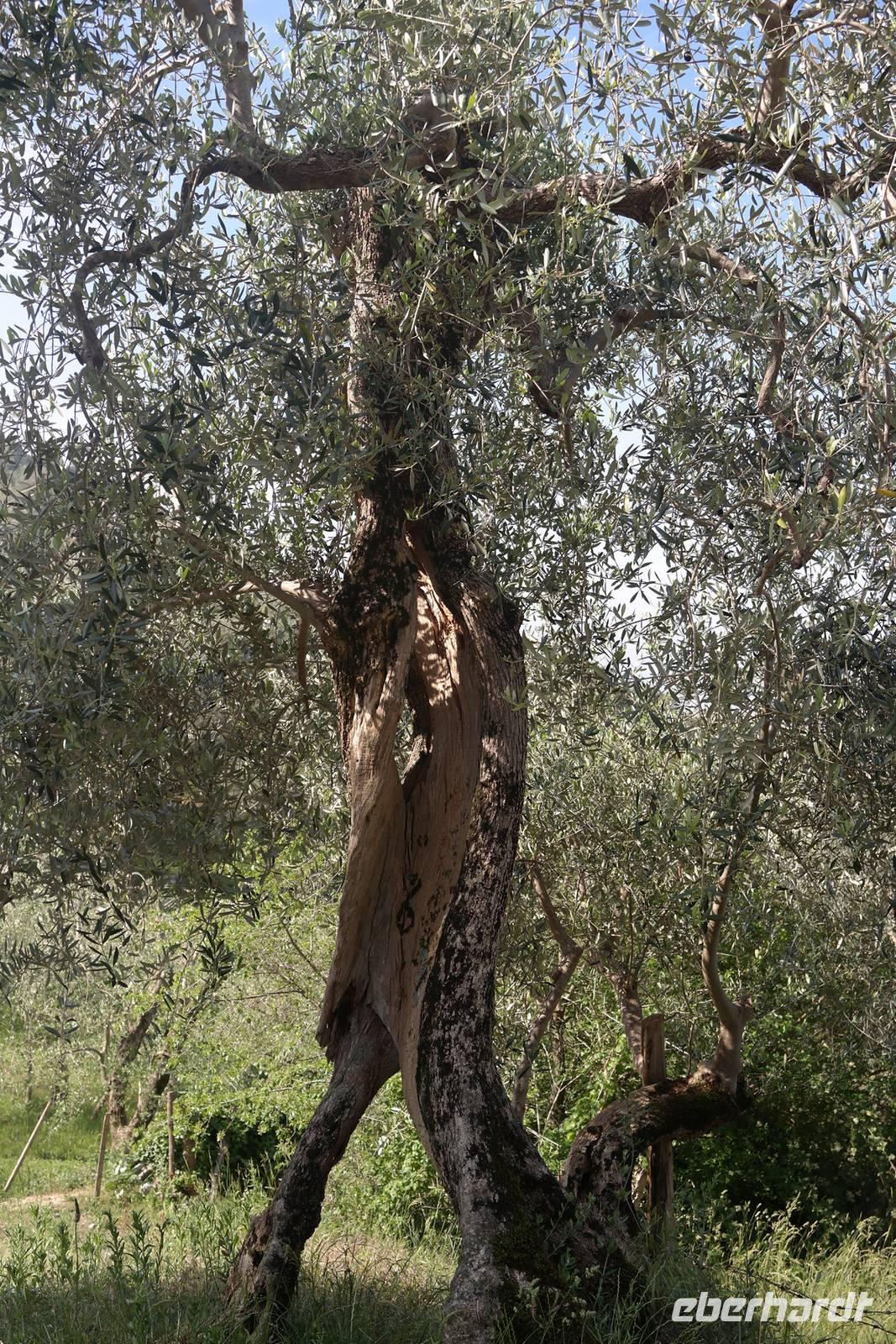 "ABS" hatte bei den Abstiegen wohl auch etwas gelitten, jetzt ist er wieder oben auf und natürlich übernimmt er seinen Platz an der Spitze der Gruppe. Auf alten Eselspfaden und durch Olivenhaine wandern wir zum verlassenen Dorf Campo. Unterwegs erklärt uns Wolfgang, wie schwierig das Leben für die Leute früher hier war - die Olivenhaine sind steil, Maschinen kaum einsetzbar und irgendwann war Tourismus einträglicher als Landwirtschaft. So gelangen wir in das verlassene und fast verfallene Dorf Campo, in dem heute nur zwei Künstler wohnen.