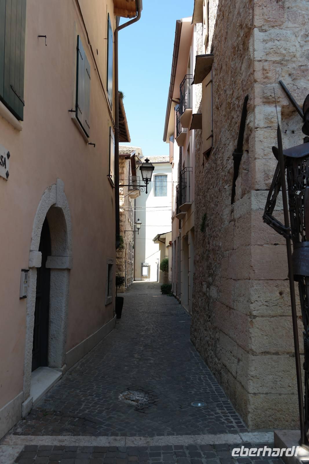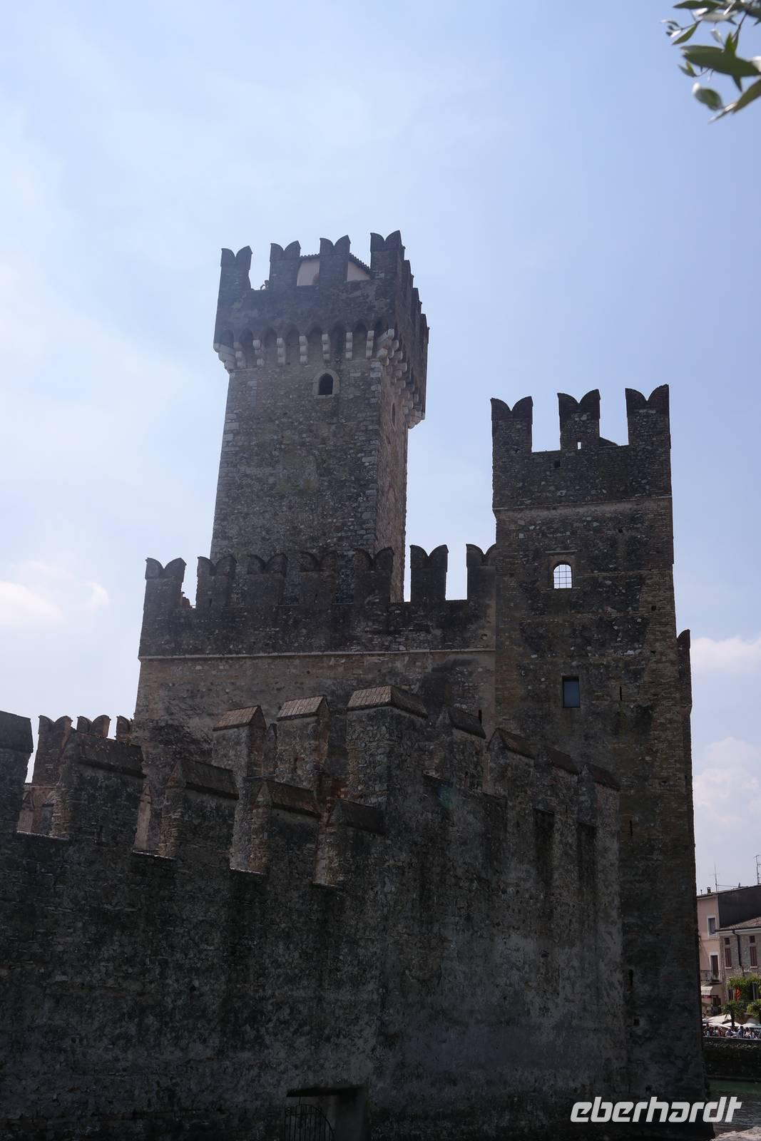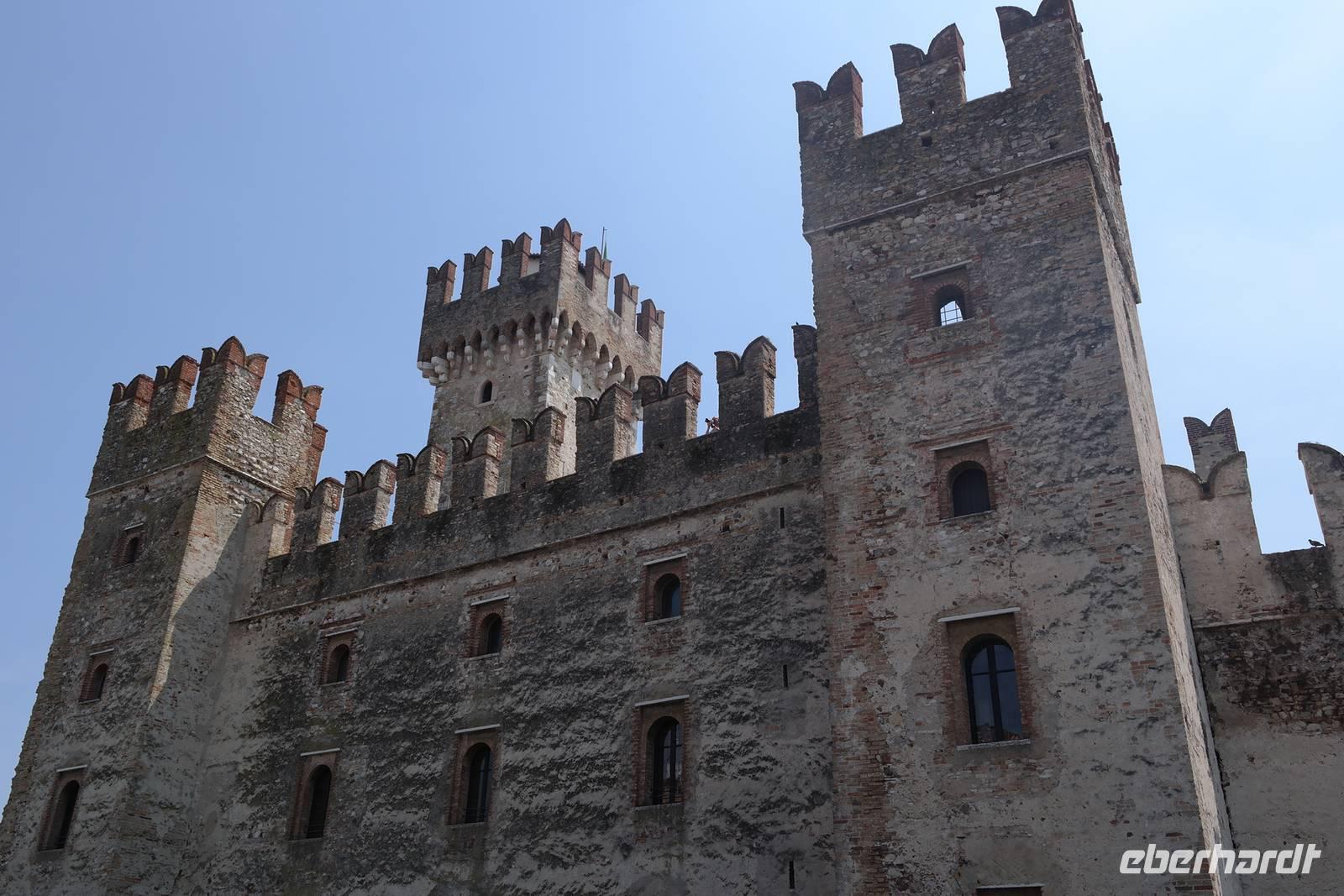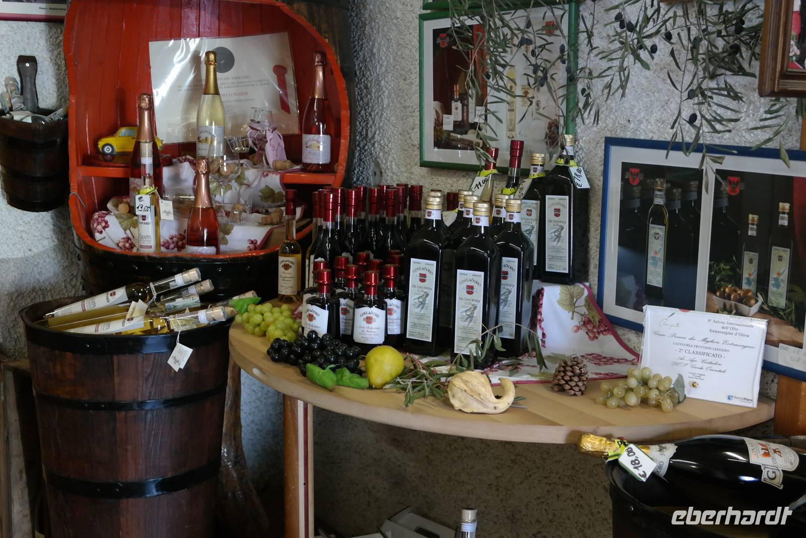Nach der Königsetappe sind wir heute bei bestem Wetter froh, die Füße und Seele ein wenig baumeln zu lassen. In Malcesine gehen wir um kurz nach 10 Uhr auf's Schiff und lernen in den nächsten 3,5 h vor allem das westliche Ufer des Gardasees kennen. Außerdem sehen wir heute von "unten" das Massiv des Monte Baldo, der sich schützend im Osten vor den Gardasee legt und maßgeblich für das besonders milde Klima in dieser Region verantwortlich ist. Aus unseren Träumen werden wir in Abständen durch die lauten Ankündigungen der Haltepunkte gerissen: in verschieden Tonlagen werden die Namen Campione, Gargano, Maderno, Gardone, Salò, Garda und schließlich Sirmione ausgerufen. Alle diese Hafenstädtchen wären einen extra Urlaub wert - aber wir sind ja hier, um eigentlich zu wandern. Wir genießen also unseren "Ruhetag". Leider ist der Aufenthalt in Sirmione zu kurz, um wirklich etwas mitzunehmen von dieser bezaubernden Altstadt auf der weit in den südlichen Gardasee hineinragenden Lagune. Die schwalbenschwanzbewehrten Türme des "Castello Scaligera" sind kaum im Foto festgehalten, als wir schon zum Bus müssen, der uns vorbei an Peschiera und Lazise nach Bardolino bringt. Auf dem Weingut "Costadoro" probieren wir einen weißen und mehrere rote "Bardolinos", es gibt Prosecco und Grappa, dazu herzhaften Käse mit aromatischem Balsamico, feines Olivenöl auf Brot, Salami - und wer will, kann anschließend natürlich seine privaten Vorräte auffüllen oder ein tolles "Mitbringsel" erwerben.