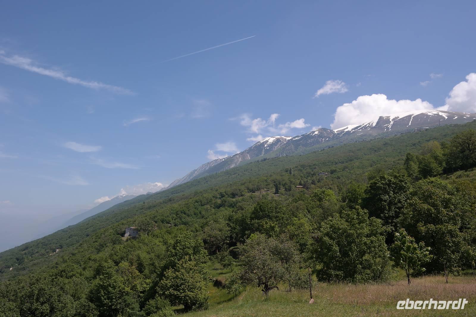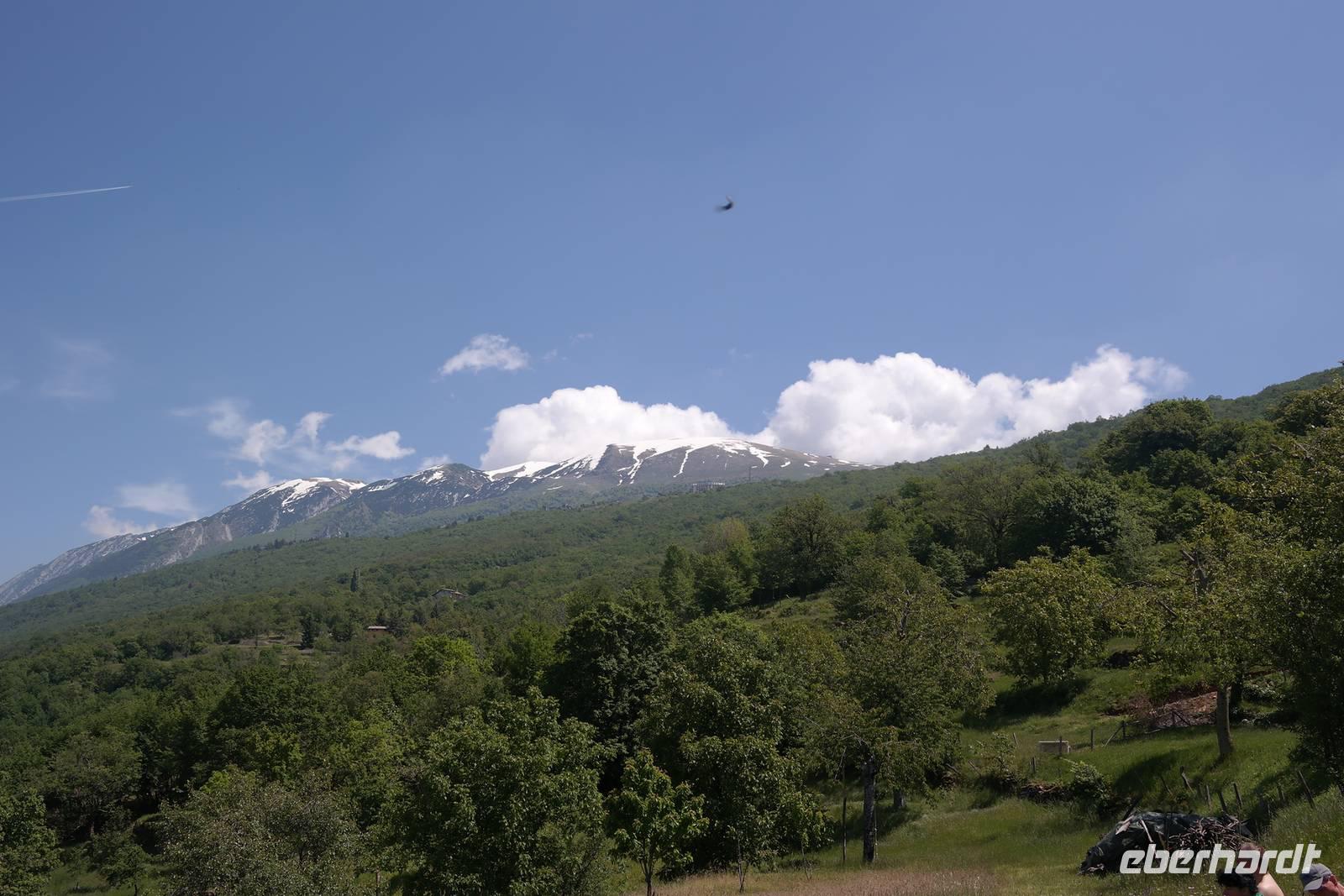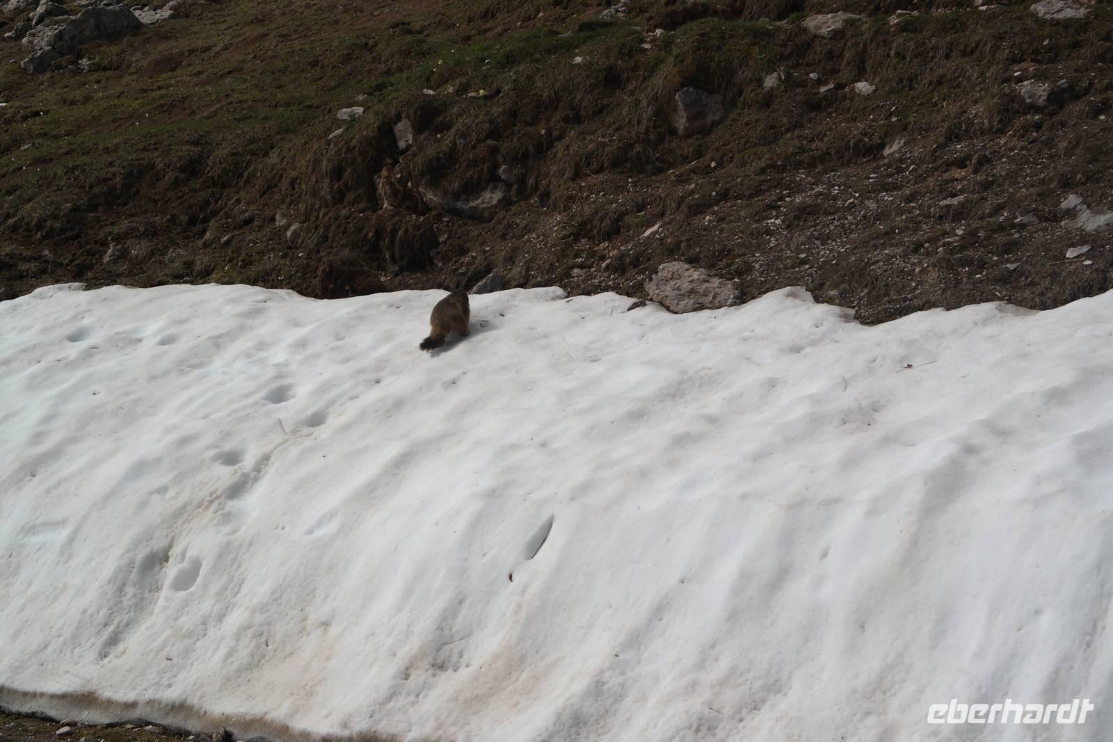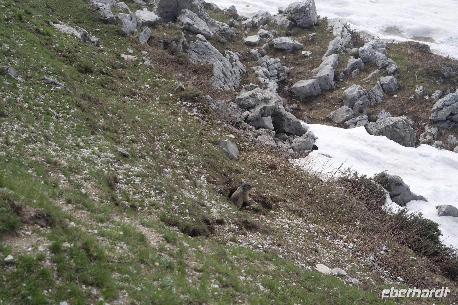 also Jacken an. Überall liegen noch Schneefelder und wir beginnen mit einem längeren Abstieg. Jacken wieder aus, denn die Sonne kommt raus. Und Murmeltiere, denen es im Bau zu warm wird und die uns neugierig beäugen. Nach rund einer Stunde Abstieg geht es kurz eine Straße bergauf. Plötzlich wechselt Wolfgang auf einen steilen Pfad und wir beginnen den Aufstieg zum Altissimo. Unterwegs entscheidet sich ein Teil der Gruppe, einen weniger anstrengenden Weg zur Refugio Graziani zu gehen. Bei einer schönen Rast unterwegs können wir zwei Steinböcke (oder Gemsen?) beobachten und genießen die traumhafte Aussicht auf den Gardasee. Die andere Gruppe "schraubt" sich unterdessen auf den Altissimo und belohnt sich auf dem Gipfel mit "Grappa aus dem Löffel". Wir kleinen Gipfelstürmer ziehen "Grappa aus dem Glas" vor und alle treffen sich in San Giacomo wieder. Diese Wanderung hatte es bestimmt in sich, aber die tollen An- und Ausblicke wollte niemand missen. Und mit einem Klopfer auf die Schulter gab uns Wolfgang zu verstehen: Wir haben's geschafft. Zurück nimmt unser Bus die etwas längere, aber schönere Route entlang des Garadsees. Dabei erzählt uns Wolfgang, warum Goethe bei seiner Italien-Reise wegen Spionage verhaftet wurde, warum Frösche Schuld waren, dass ein Hotel abgerissen werden musste und noch einige andere Geschichten. Wir freuen uns auf den nächsten Tag - denn wir haben "wander"-frei!