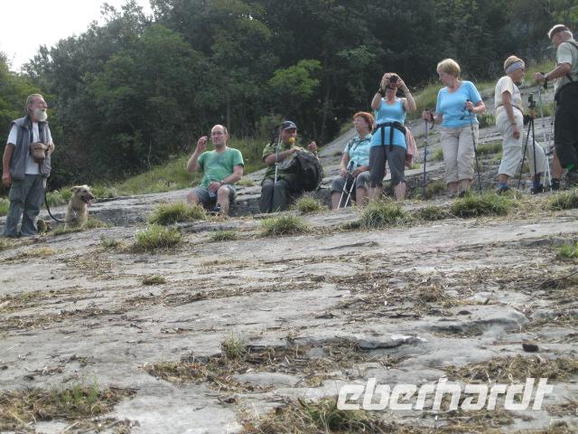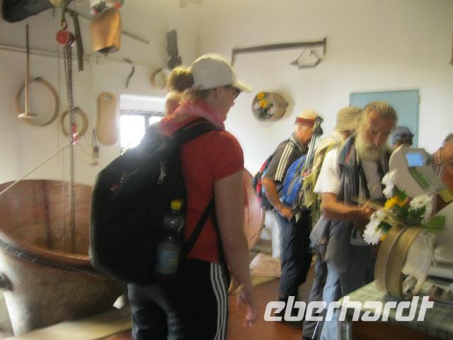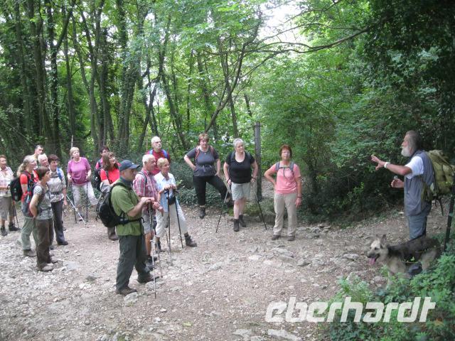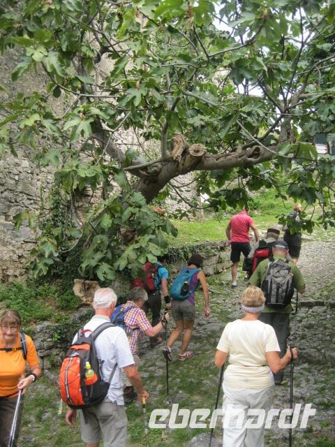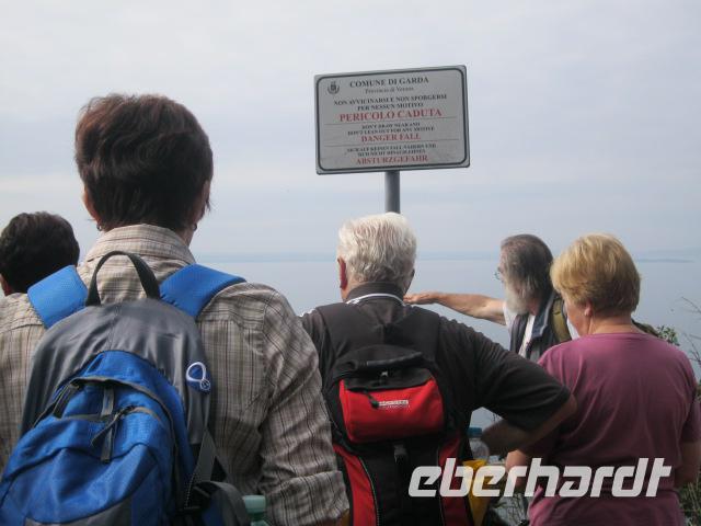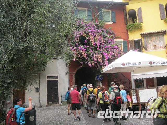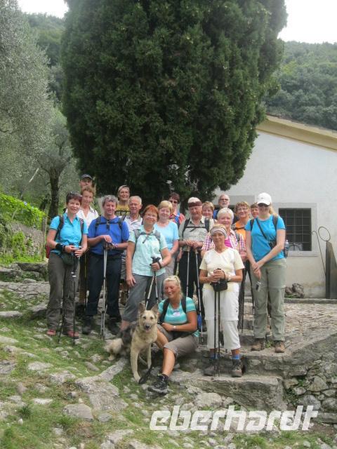 Unsere heutige Tour ging gleich steil im Ort Brenzone los.Lupo gab das Tempo vor.Durch Olivenhaine hindurch erreichten wir das mittelalterliche Dorf Campo.Wolf erklärte uns, mit Hingabe, die Malereien in der kleinen romanischen Kapelle.Danach formierten wir uns davor zum "Gruppenbild mit Lupo".Die Mittagspause genossen wir auf einer sonnigen Wiese mit Blick übern See.Beim Heimmarsch kehrten wir auf einen Espresso in Alle Fasse ein.-wieder ein eindrucksvoller Ausblick auf den Gardasee.Dort legten wir auch fest, daß Steffen immer ein Auge auf "Napoleon" ,Zwecks Wetter ,haben sollte.Bevor wir zum Bus gelangten,gab es noch ein Eis an der Uferpromenade von Castello.Obwohl wir Badesachen mithatten, war es zum Schwimmen leider zu spät.