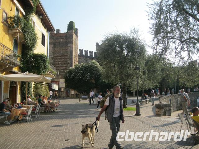 Am Morgen begrüßte uns Wolfgang mit Lupo - unsere Wanderführer der nächsten Tage.Nach kurzer Ansprache ging es auch sofort los in Richtung Rocca del Garda.Durch einen Steineichenwald ging es bergan,vorbei an den, 1964 erst entdeckten, prähistorischen Felszeichnungen.Wir erreichten das "Gipfelkreuz" des Monte Luppia u. hatten immer wieder tolle Blicke auf den Gardasee z.b.auf die Sirenen -Bucht von San Vigilio.Außerdem erhielten wir Geschichtsunterricht am Thron der Adelheid.Der Abstieg bescherte uns einen Aufenthalt in Torri del Benaco.Ein reizvoller Ort mit mittelalterlichem Gepräge.Dort hat es uns so gut gefallen, daß wir nach dem Abendessen noch einmal zum "Bummeln"" hin mußten.