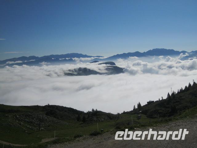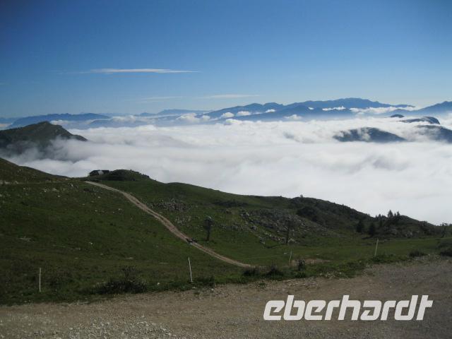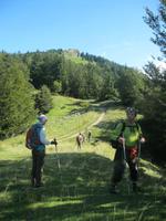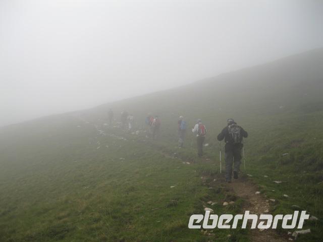 Bei frischeren Wetter begannen wir heute unsere Wanderung.Leider hatte Steffen (der Hüter des Wetters)seinen Napoleon nicht richtig im Griff.Auch pausierte heute Lupo ,ihm war unpässlich.Hatten wir ihn doch zu gut gefüttert.Wir fuhren bis Prada u. liefen über Almwiesen u.Kuhweiden immer bergauf .Leider wurde der Nebel immer dichter. Wir waren froh die Hütte, am Fuße des Telegrafo, erreicht zu haben ,denn es wurde auch immer kälter.Der Abstieg verlief etwas besser.Am Abend waren alle der Meinung "die Tour hatte es in sich".