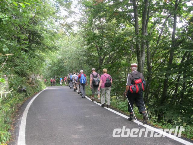 Nach einer längeren Busfahrt ging es von Novezzina hinaus in die Natur.Über Wälder u. Wiesen,an Schützengräben des 1.Weltkrieges vorbei, erreichten wir unser heutiges Ziel-Monte delle Erbe.Die Mittagspaues verbrachten wir am Gipfel- mit herrlichem Ausblick auf das Etschtal u. Monte Baldo Gebiet.Zurück zum Bus u.wir fuhren nach Spiazzi.Dort wartete ein Höhepunkt unsere Wandertour auf uns .Stiegen wir hinab zur Wallfahrtskirche "Madonna dellaCorona",die in Fels gehauen ,700m über dem Etschtal thront.Einmalig schön.Zum Abschluß dieser Tour kehrten wir alle zu einem typ.Picknick mit Wein ,Käse ,Speck,Brot,Öl u.Oliven ein.Zufrieden u.etwas schläfrig hielten wir noch zu einen Fotostop, an der Ältesten Plantane Italiens, an.Unseren letzten Abend am See wollten wir in Garda ausklingen lassen.Leider machte uns der Bus einen Strich durch die Rechnung -er war müde und mußte zur Kontrolle-.Da es anfing zu regnen ,machte sich nur eine kleine Gruppe zum Fußmarsch auf.Dafür wurden wir mit einem charmanten Städchen u.einem bezaubern den Ausblick auf den Gardasee belohnt.