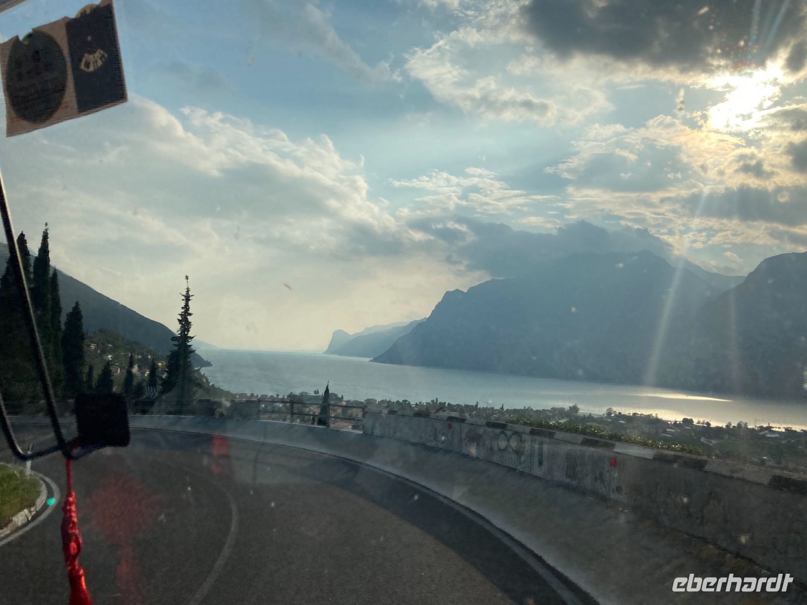 Früh ging es los, 04:00 ab Dresden Flughafen. Und welch ein Wunder, es gab kaum Stau, lediglich südlich von München. So erreichten wir pünktlich den Wipptaler Hof. Ein kleiner stärkender Imbiss wurde eingenommen und es ging weiter mit einem italienischen Reisebus. Gegen 17:30 Uhr erreichten wir unseren Zielort Riva del Garda und bezogen die typischen italienischen Zimmer. Am Anfang bedauerten wir es, keinen Seeblick zu haben. Dies stellte sich jedoch als Vorteil heraus. Denn wir hatten die deutlich ruhigere Seite erwischt. Der Rest ist schnell berichtet: Abendessen und schnell ging es dann in die Horizontale.