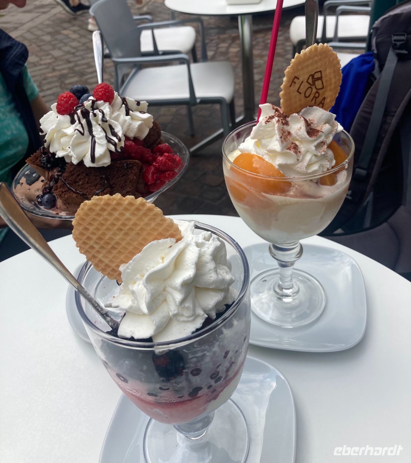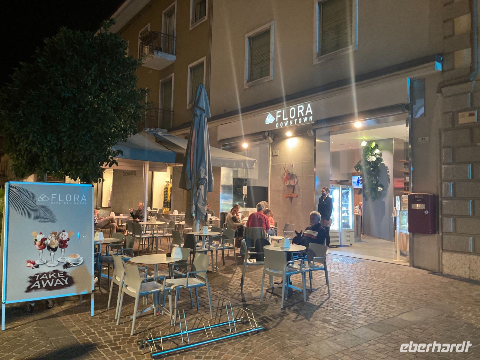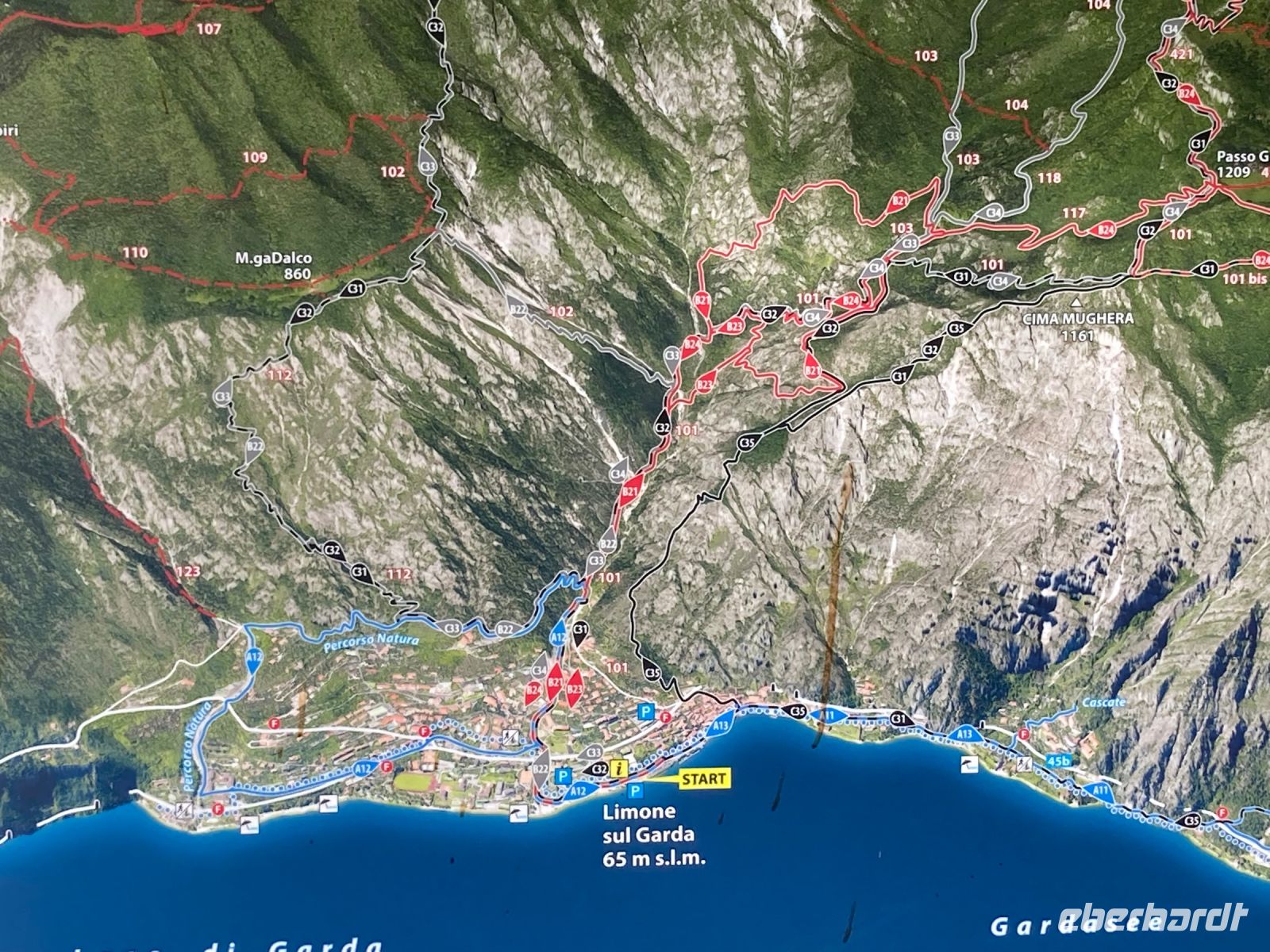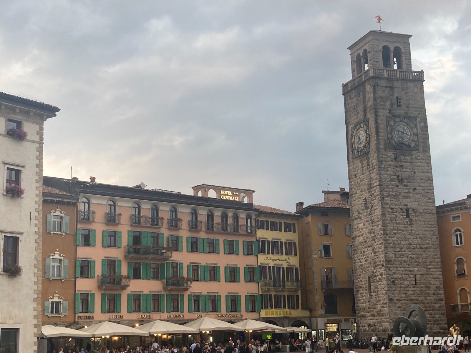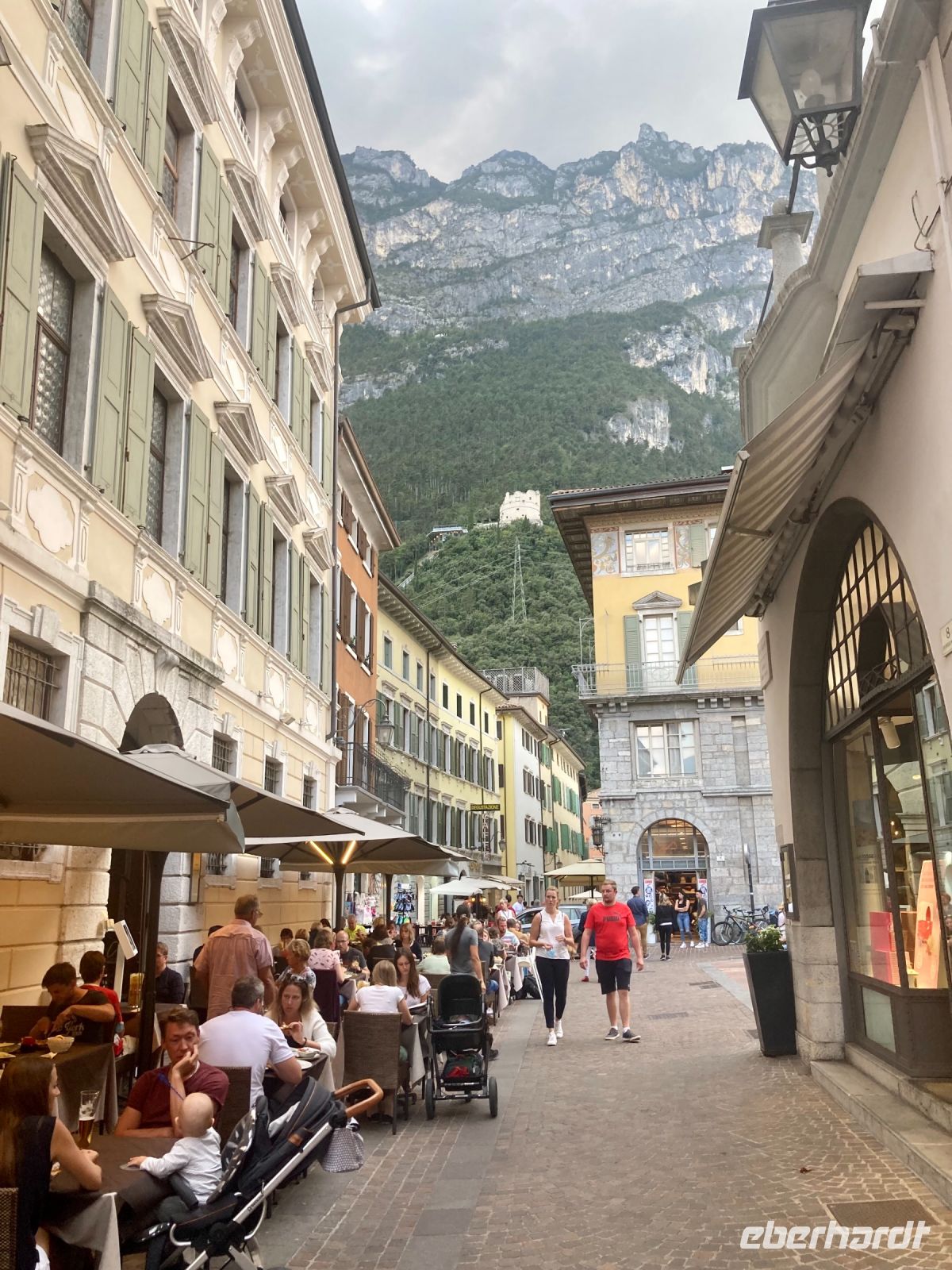 Die altbekannte italienische Sonne lies sich nicht blicken, es regnete am Morgen. Und so starteten wir erst 10:30 Uhr und hofften für die kurze Einwanderrunde eine Regenlücke zu finden. Wir waren alle froh an diesem Morgen etwas mehr Zeit zu haben, die Reise von Dresden bis an den Gardasee dauert halt etwas. Am Anfang ging es durch den Ort ( 18.000 Einwohner) am See entlang. Etliche Treppen führten uns auf den knapp 400 m hohen Monte Brione. Immerhin etwas über 300 Höhenmeter waren es und auf Grund der sehr unterschiedlichen Treppenstufen war es doch etwas beschwerlich. Abwärts nahmen wir den Fahrweg und so wurde es etwas knieschonender. Belohnt wurden wir dann mit leckerem Eis in der Eisdiele Flora. Das Eis wurde in internationalen Wettbewerben mit mehreren Medaillen ?? ausgezeichnet, dementsprechend war es ein Genuss. Auch auf Grund des Stadtrundganges mit Barbara, unserer Wanderführerin, hatten wir dann über 10 km auf der Uhr. Nach dem ersten Abendessen waren wir uns sicher, mit dem Abnehmen wird das nichts. Zumal wir uns mit der Bar neben dem Hotel schnell anfreundeten.