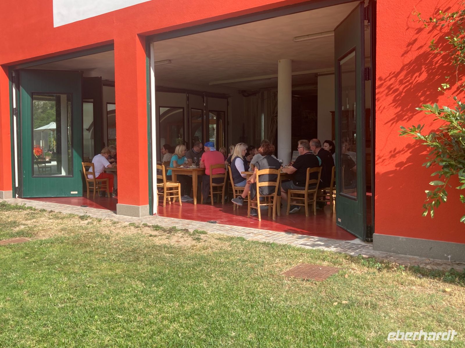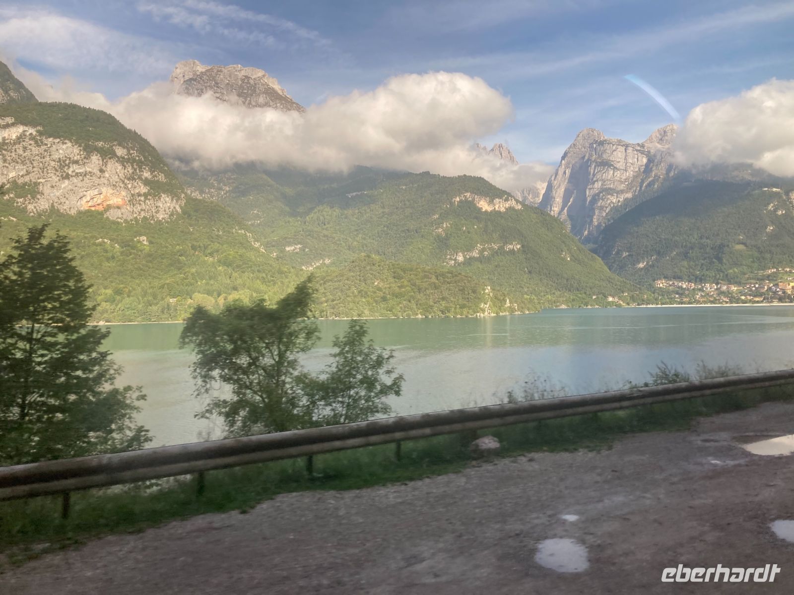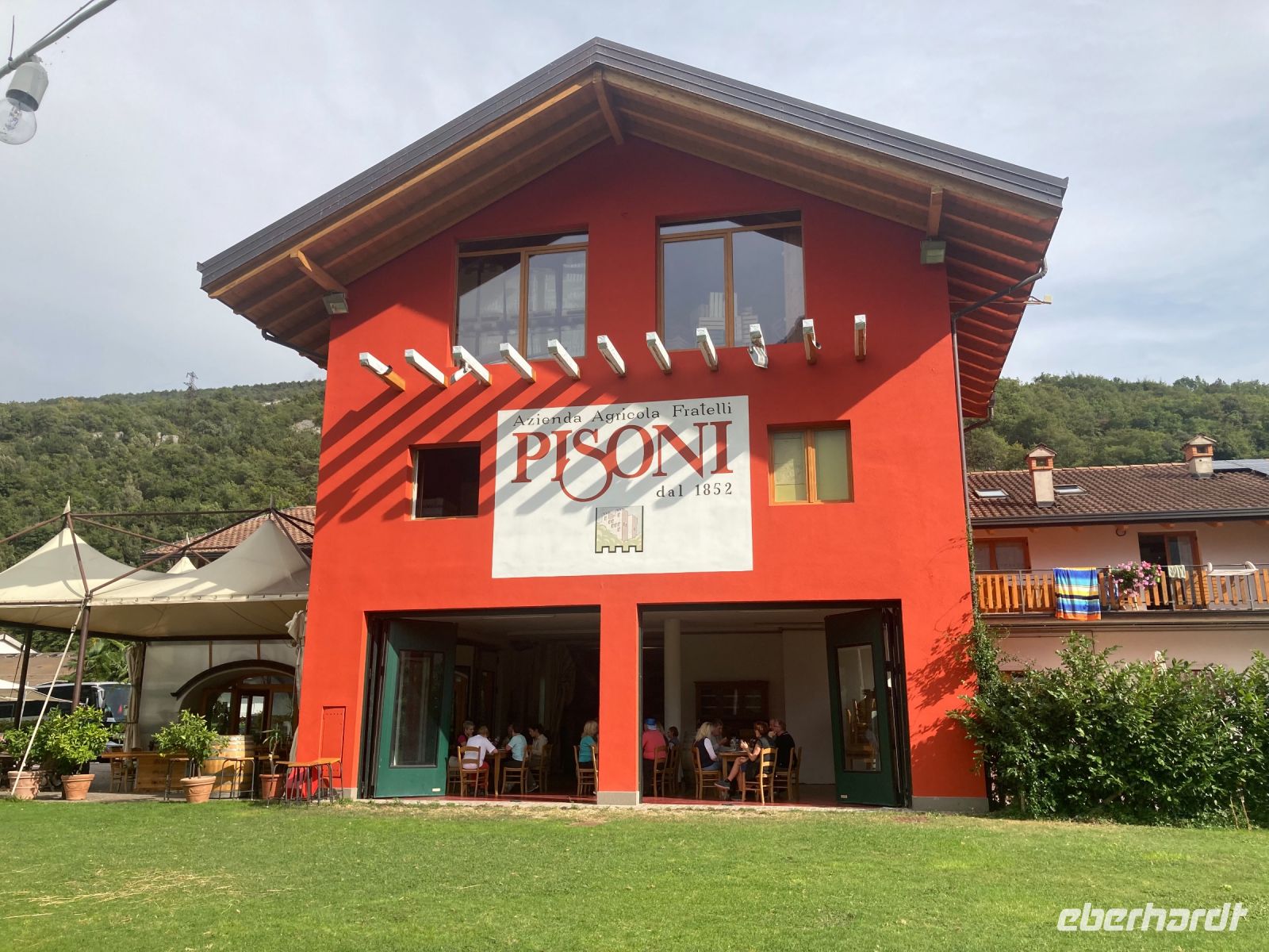 Pünktlich wie immer sind wir und auch der Bus, der uns abholt. Es geht Richtung Brenta und wieder machen wir halt an einem See. Klar, zu Fuß geht es weiter, wir wollen den See umrunden. Doch nach fast der Hälfte der Strecke ist Schluss. Bauarbeiten für Uferbefestigungen versperren uns den Weg. Getreu dem Motto der Rückweg bietet andere Perspektiven drehen wir um. Am See zurückkehrt genießen wir es etwas die Füße baumeln zu lassen oder lecker Eis zu essen. Und es wartet ein weiteres Highligt auf uns. Die Besichtigung im Weingut Pisoni mit anschließender Weinverkostung. 30 Hektar bewirtschaftet man, was im privaten Weinbau sehr viel ist. Sehr herzlich werden wir vom Seniorchef empfangen, der es sich nicht nehmen lässt, uns selbst zu führen. Die Weinverkostung führt uns durch alle Weinsorten, egal ob weis, rot oder rosse. Begleitet wird die Weindarreichung von einem reichlichen Imbiß von leckerem Käse und diversen Wurstsorten. Irgendwann müssen wir dann weiter. Und unser Buschauffeur fährt uns heim zu über diverse Nebenstraßen, wo sich wieder die Ausblicke lohnen. Auch durch Arco, das Klettereldorada fahren wir.