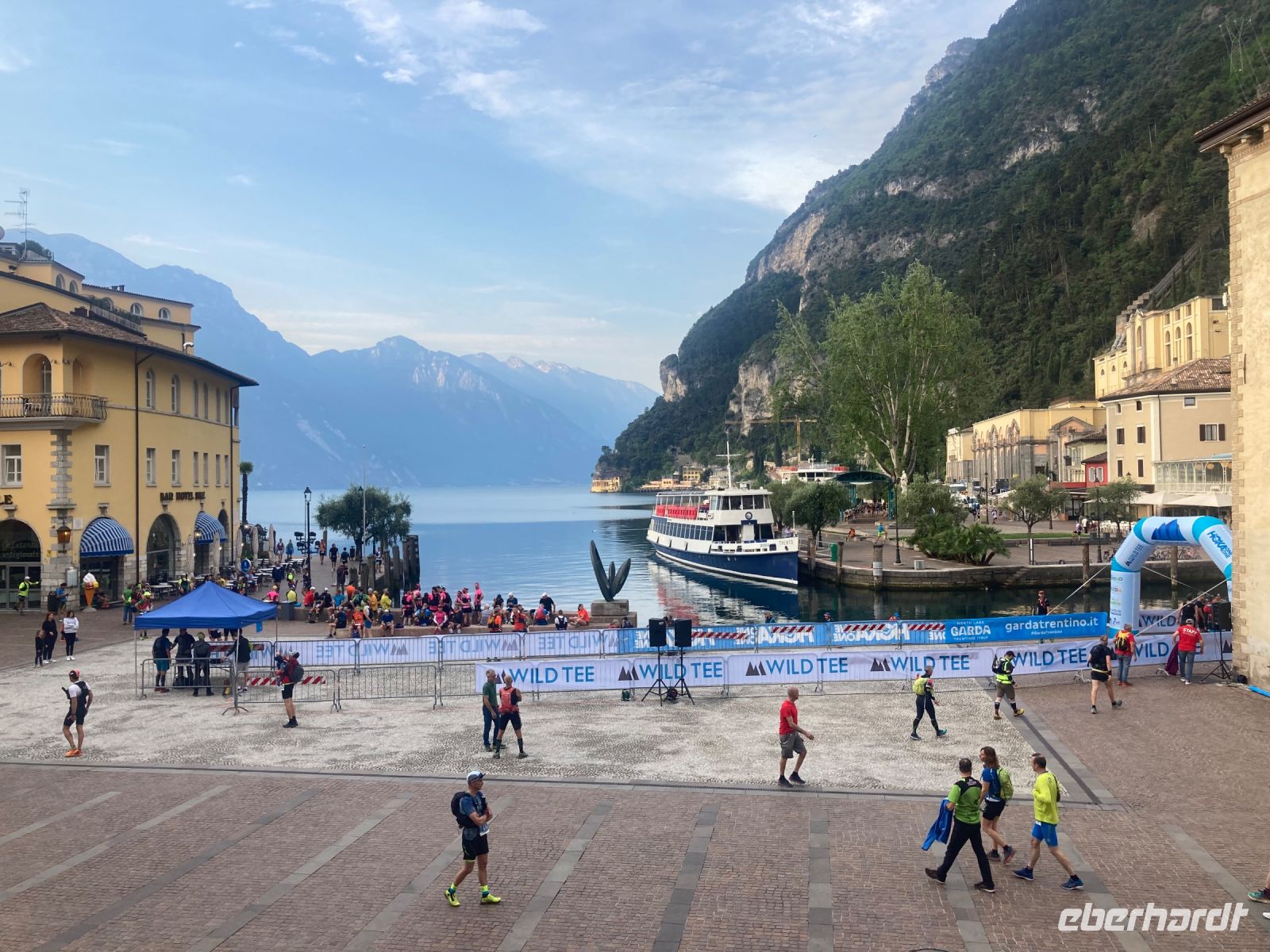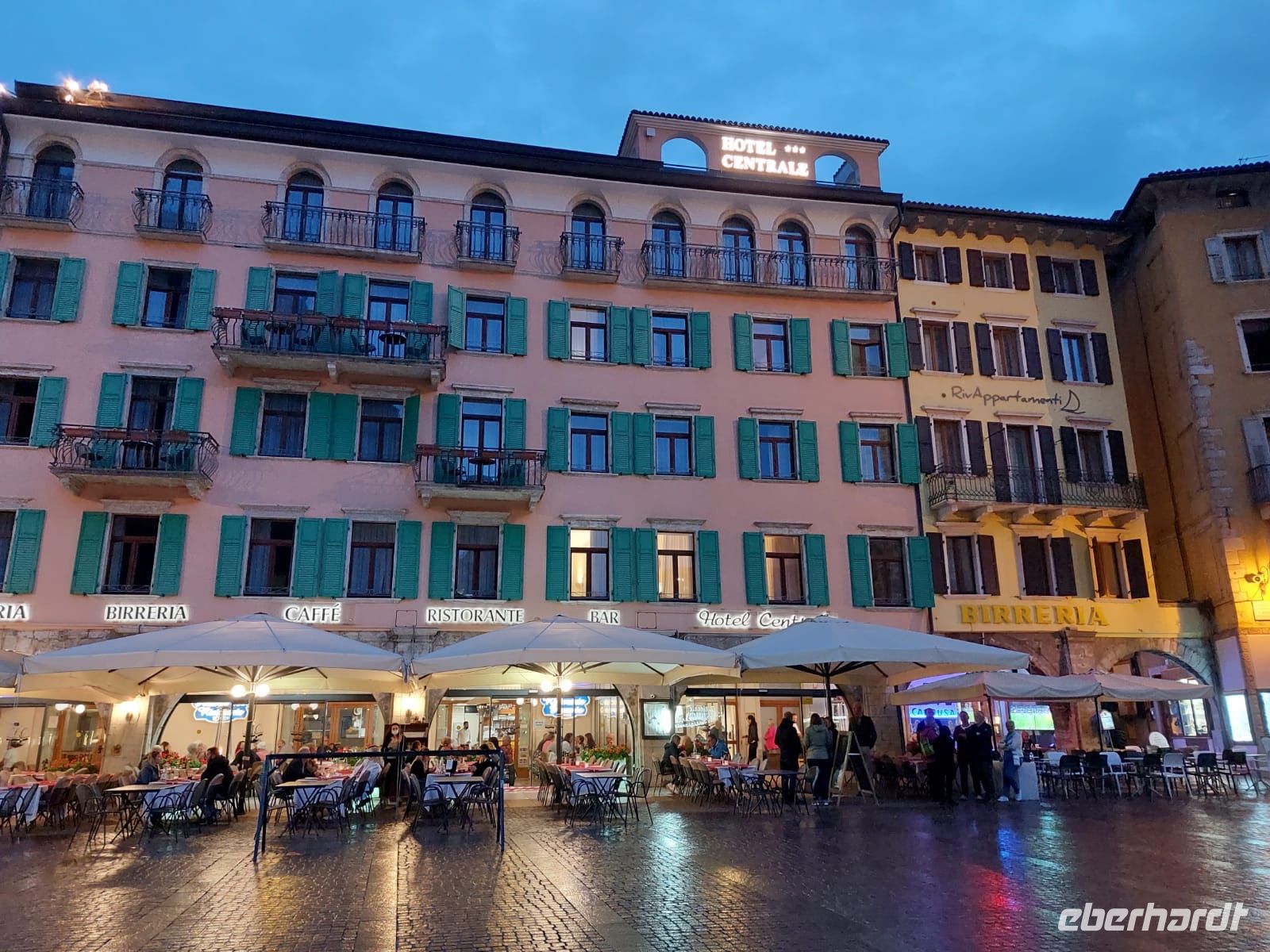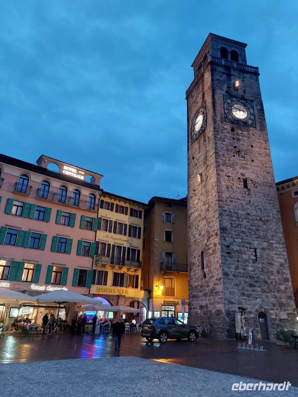 Pünktlich 4:30 Uhr geht es los und die Sonne läßt nicht lange auf sich warten. Nach vier Zwischenstopps mit Zustiegen und Ablösung unser erstes Fahrers steht einer zügigen Anreise zum Gardasee nichts im Wege. Nicht mal ein Stau zeigt sich unwürdig uns aufhalten. So erreichen wir gegen 17:00 Uhr das Centralhotel in Riva. Nachdem die Zimmer bezogen wurden, lockt uns ein kurzer Spaziergang in die Gassen der Stadt. 17.000 Einwohner hat Riva und lebt fast ausschließlich vom Tourismus und von der Landwirtschaft, hauptsächlich Wein und Äpfel.