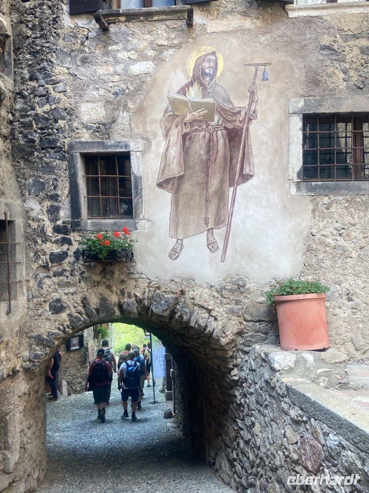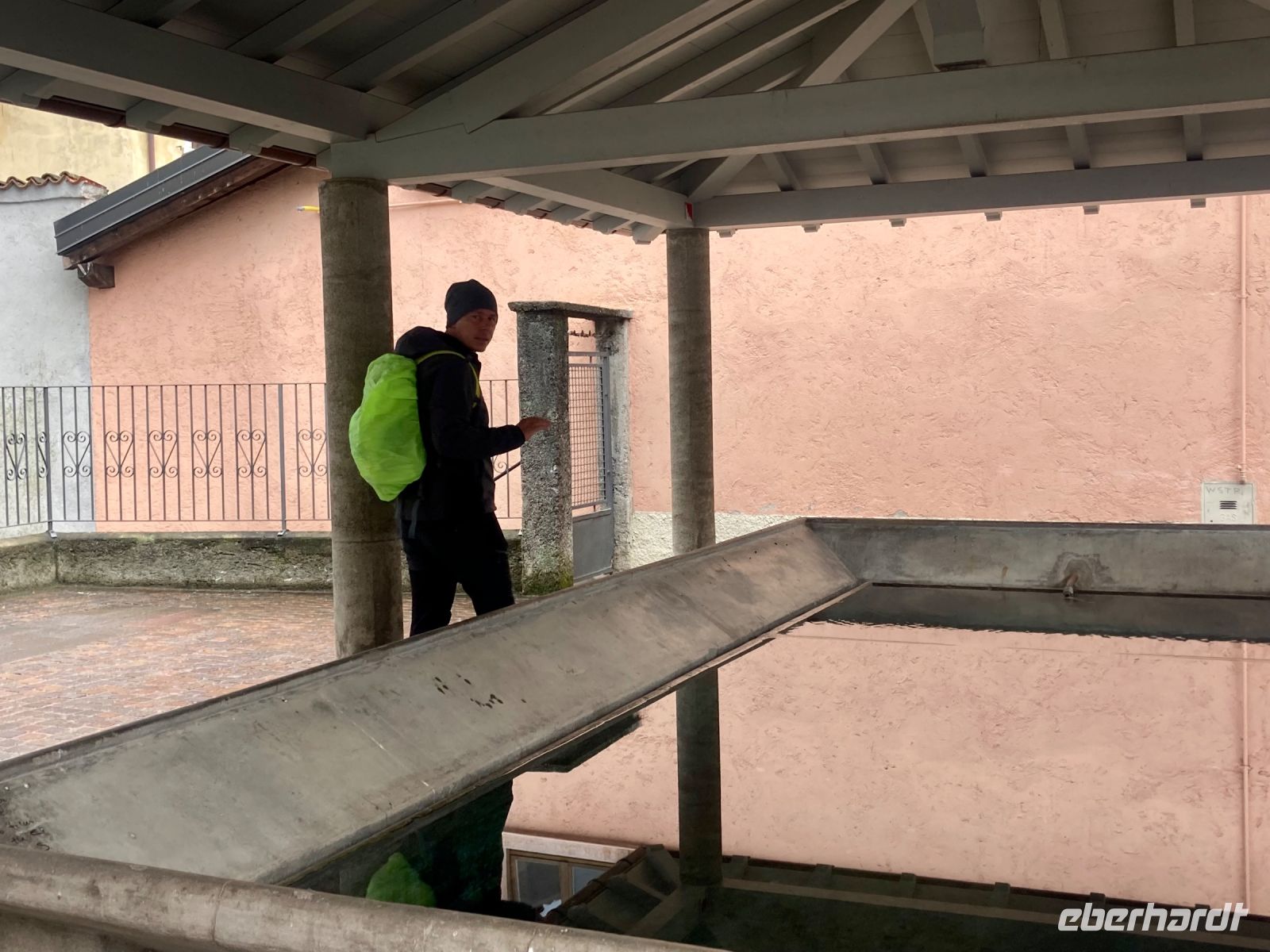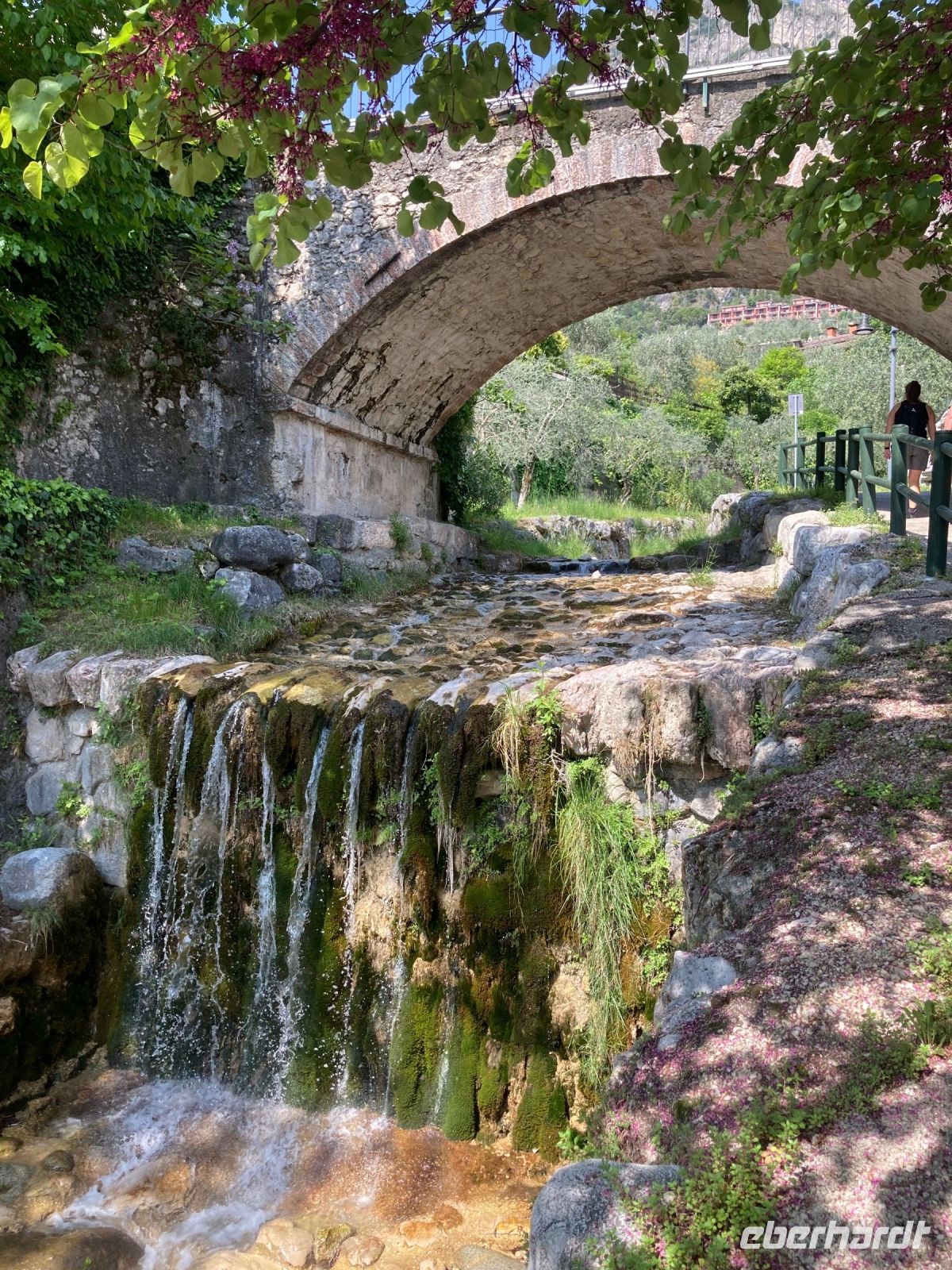 Ich hatte den örtlichen Wanderführer darum gebeten, dass wir eine Stunde später starten und so trafen wir uns um 10:00 Uhr um zuerst durch die Gassen und Gäßchen von Riva den Garda zu spazieren. Durchfährt man Riva nur um z.B. nach Limone zu gelangen erahnt man nicht welche Schönheiten sich abseits der Hauptmagistralen bieten, zumal letztes Jahr ein weitere Tunnel fertig gestellt wurde. Ihn durchfährt man u.a. Wenn man über Arco anreist. Bogi unser Führer für die nächsten sechs Tage macht uns auf viele Detail aufmerksam, wie z.B. einen Waschplatz, wo sich früher die Frauen nicht nur zum wachen der Sachen trafen. Hier war auch der Kommunikationstreff der weiblichen Einwohner von Riva. Weiter ging es dann am Ufer entlang bis wir kurz vor Torbole den Beginn unseres Aufstieges erreichten.