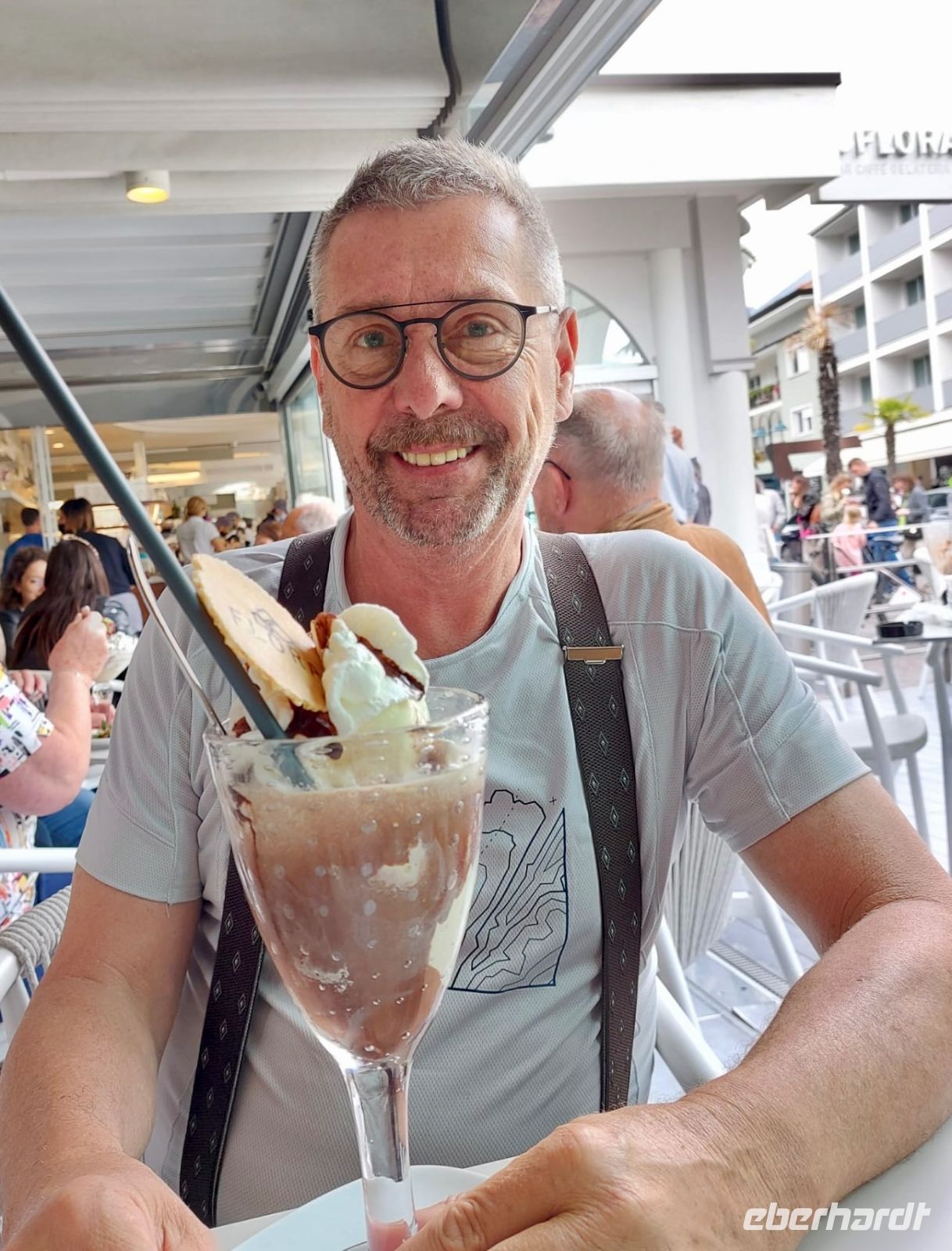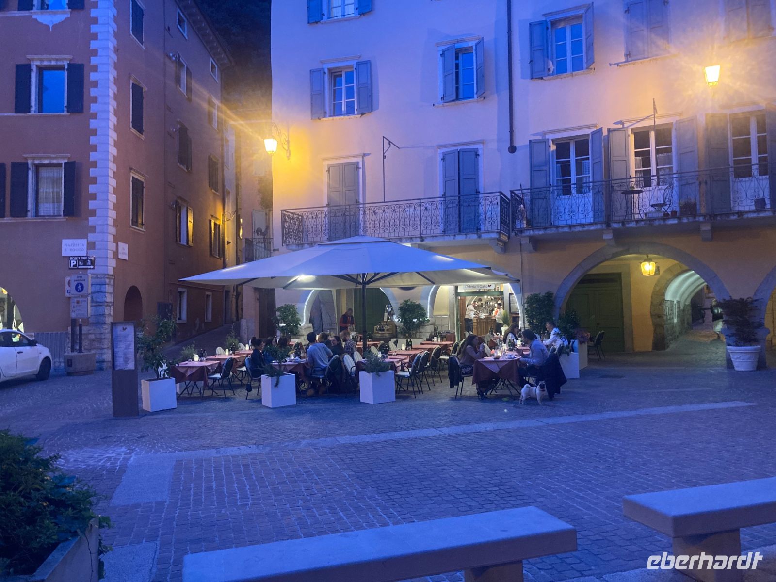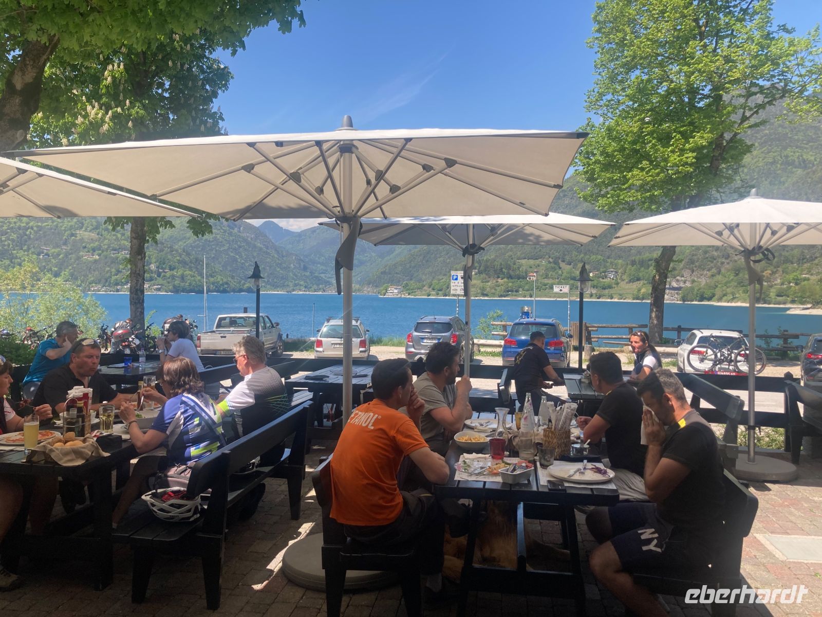 Wieder in Riva unten angekommen unterbreitete Boge drei Alternativen, wie man den Nachmittag ausklingen lassen könne. Jedoch gab es eine einstimmige Entscheidung zugunsten des Eiscafes Flora. Und ich hatte den Gästen nicht zu viel versprochen, es mundete allen.
