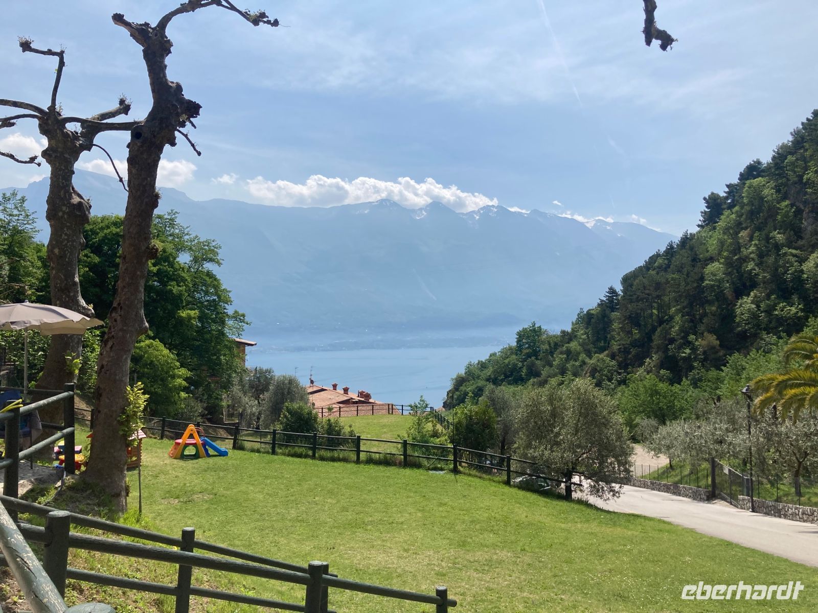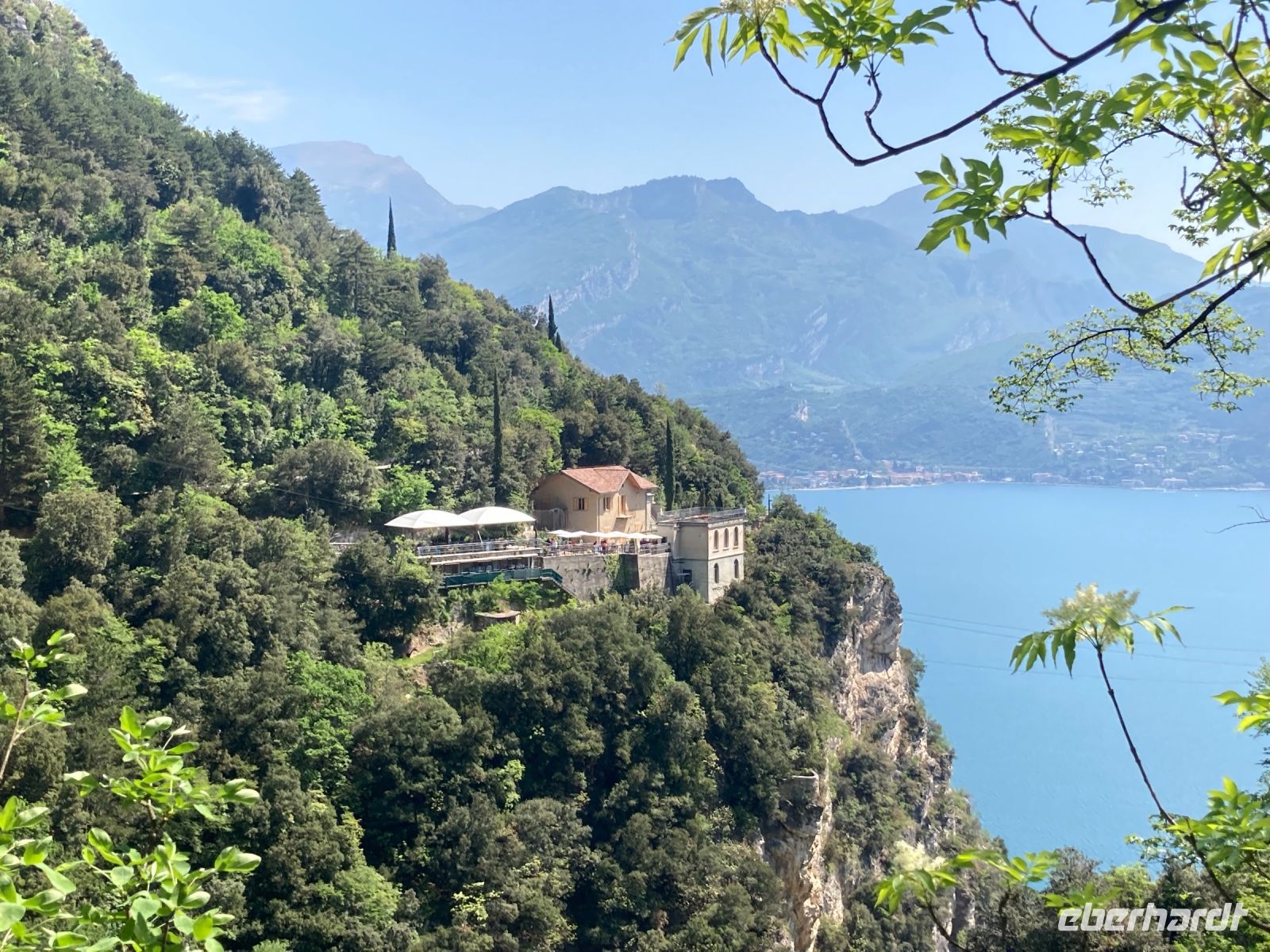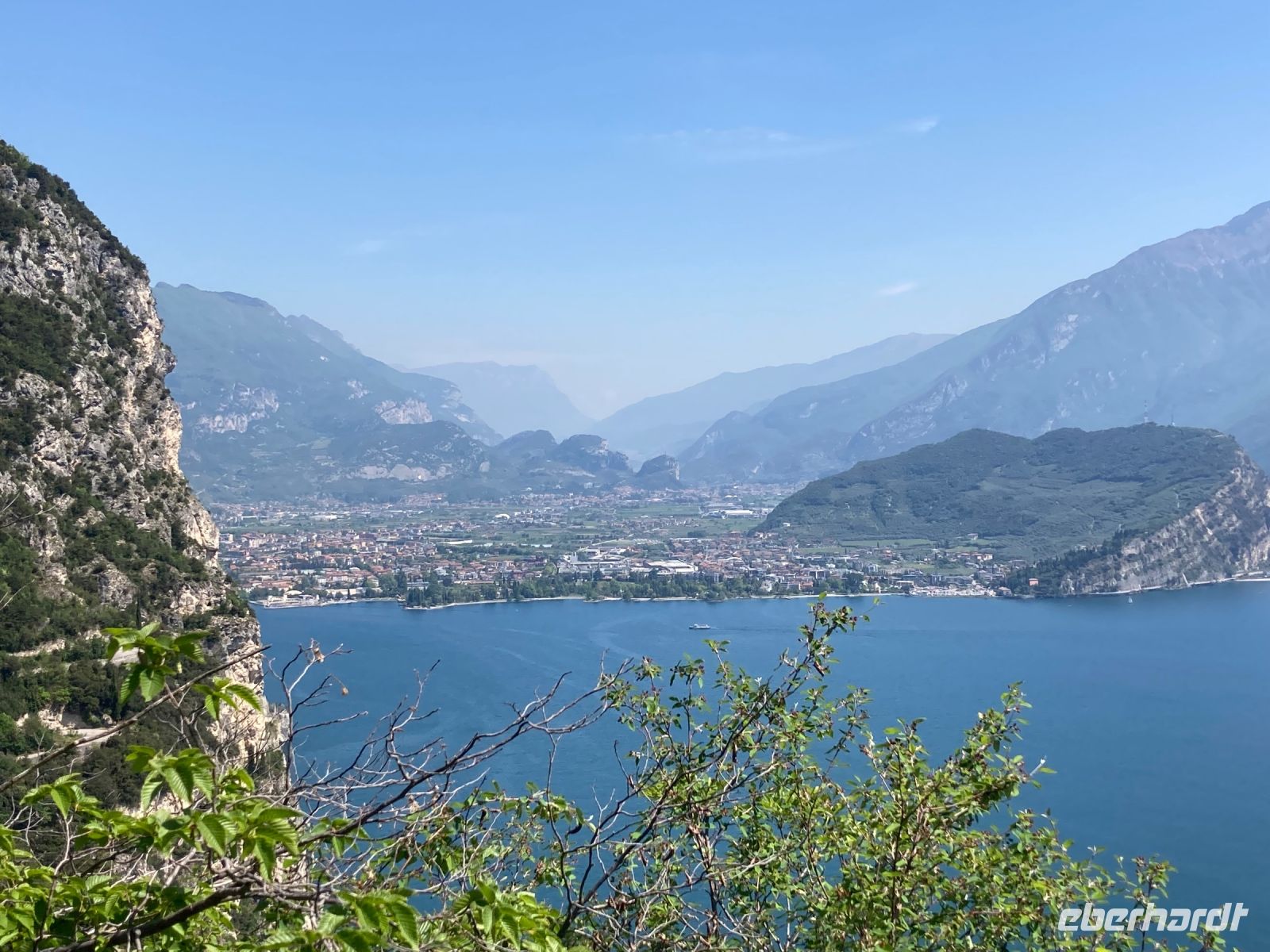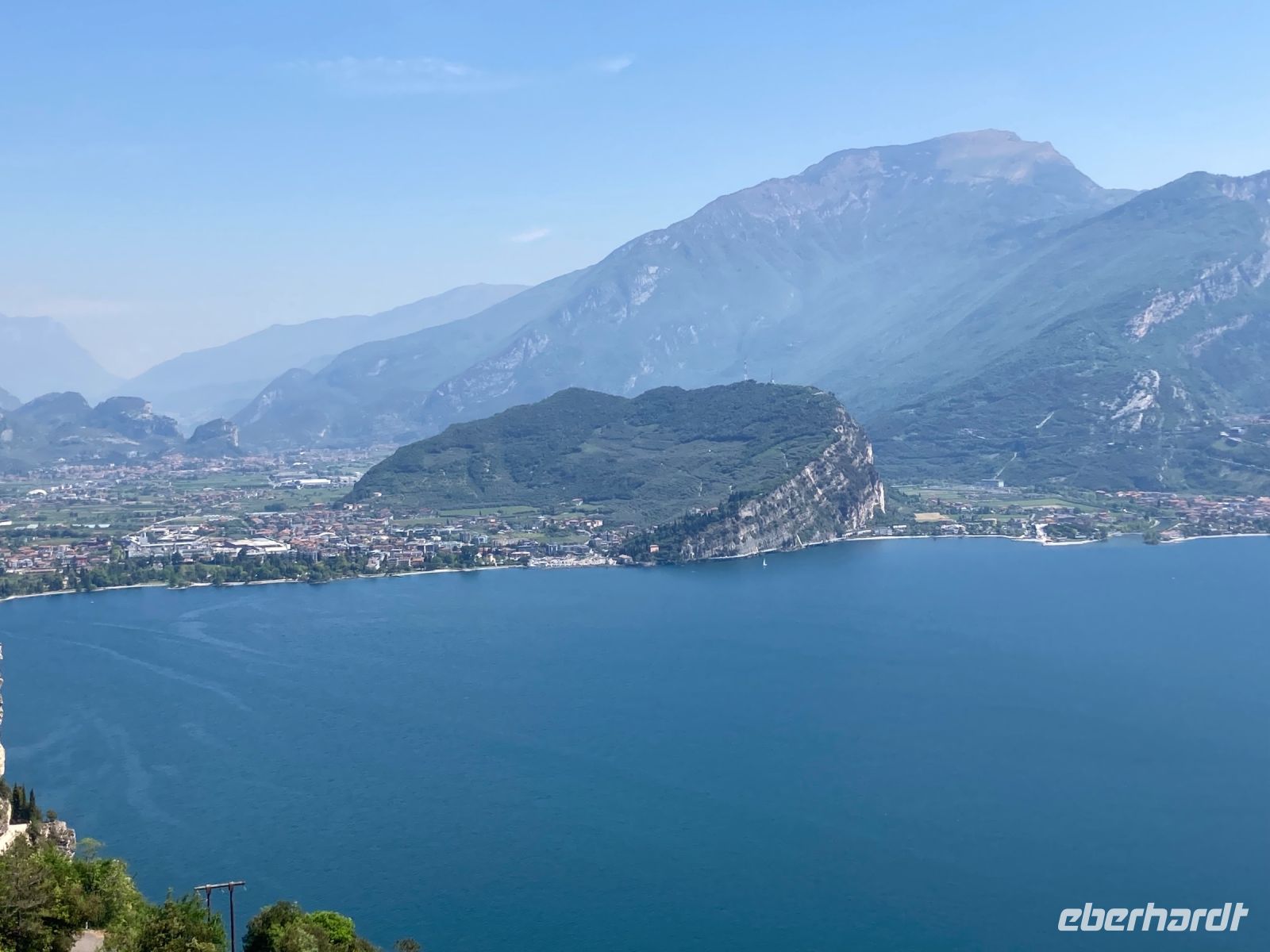 wie erwartet bzw. erhofft. Wir schritten nacheinander in zwei Richtungen. Zuerst ging es nach Süden um fast über den ganzen See blicken zu können und erahnten Sirmione. Auch die gegenüberliegende Hochebene von Tremosine hat es uns angetan. Anschließend ging es nordwärts, wo sich ein schöner Ausblick auf die Städtchen des nördlichen Gardaseeufers und ins Landesinnere bis hin zu den südlichen Ausläufern der Dolomiten bot. Gemütlich rasteten wir und ließen uns von dem Abenteuer eines deutschen Kellners erzählen. Er brach zu Hause ohne Handy (eigentlich unvorstellbar) und ohne Geld auf um durch die Welt zu reisen und sich alles Selbststudium erarbeiten. Übrigens ein Handy hat er inzwischen und man kann Samuel auf instergram unter Connecticut.s folgen.
