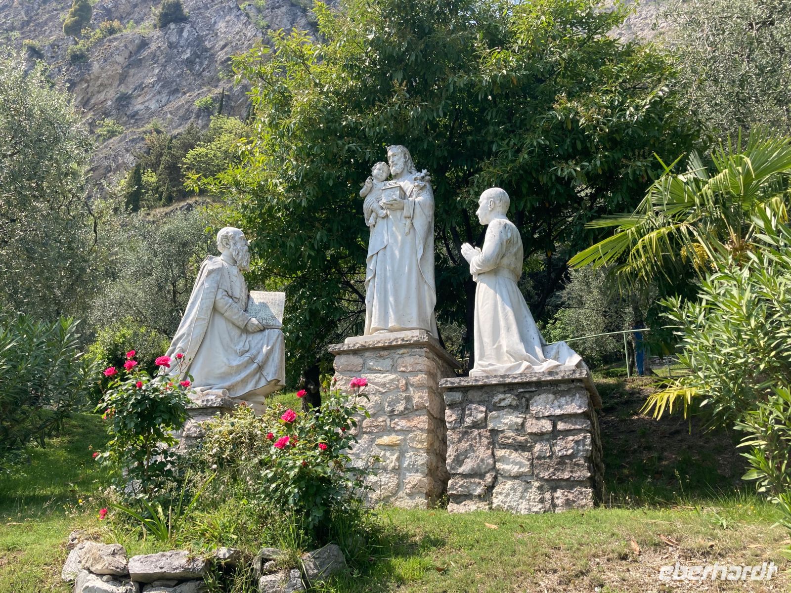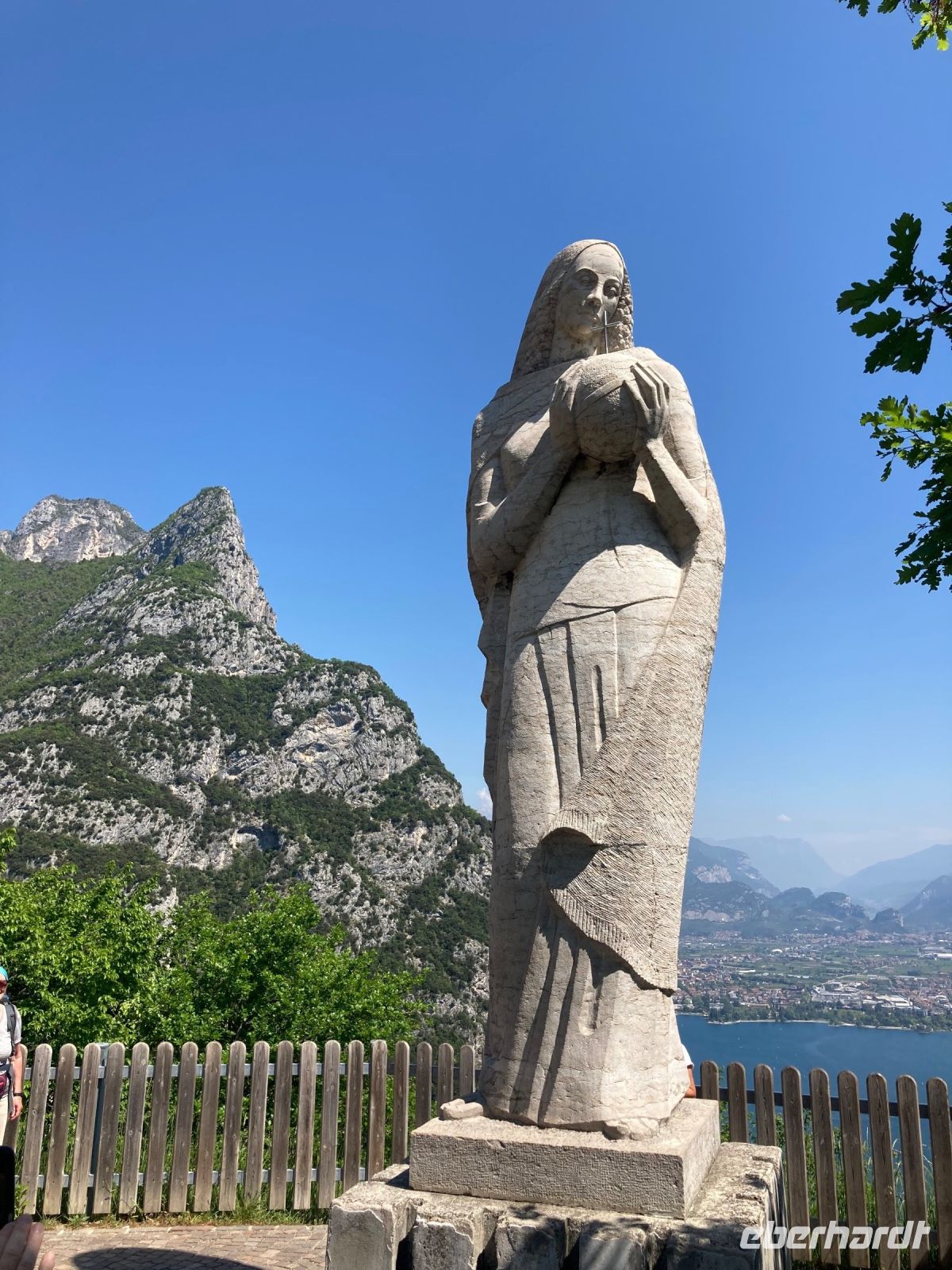 Heute soll es die alte Ponalestrasse Richtung Ledrosee gehen. Wir starten direkt am Hotel und kommen zuerst am Elektrizitätswerk vorbei. Es ist das Talgebäude eines Wasserkraftwerkes. Gleich darauf zweigen wir von der Straße, die nach Limone führt ab und der Weg weist eine gleichförmige Steigung auf, sodass es sich sehr entspannt laufen lässt. Nur die vielen Radfahrer gilt es zu beachten. Durch die elektrische Unterstützungsmöglichkeit werden es auch immer mehr, die den Berg bezwingen wollen. Es ist kaum in Worte zu fassen, welche tollen Ausblicke sich uns immer wieder bieten, in der Fotogalerie sind einige festgehalten. Rasch kommen wir an der ersten Einkehrmöglichkeit an und bei einem Kaltgetränk rasten wir auch. Weiter geht es auf einen Hügel, wo uns eine fünf Meter hohe Madonna erwartet. Jedoch wollen wir zum Ledrosee und so steigen wir einige Meter den selben Weg wieder ab um dann in das Ledrotal ab zu biegen.Nach einiger Zeit erreichen wir die verabredete Stelle und der Busfahrer erwartet uns bereits um uns die letzten Höhenmeter zu erleichtern. Am See eingetroffen erwartet uns das obligatorischem Pizzaessen und jeder war mit seiner Wahl sehr zufrieden. Mit dem Bus ging es dann wieder heimwärts zum Hotel, nachdem wir noch 30 Minuten am See verbringen konnten. Inzwischen haben wir und als Wandergruppe über die Cappucinogruppe fast zur Redbullgruppe entwickelt. Der Tag klingt dann bei einem gemeinsamen Cocktail aus, den dankenswerter Weise Eberhardt spendiert.