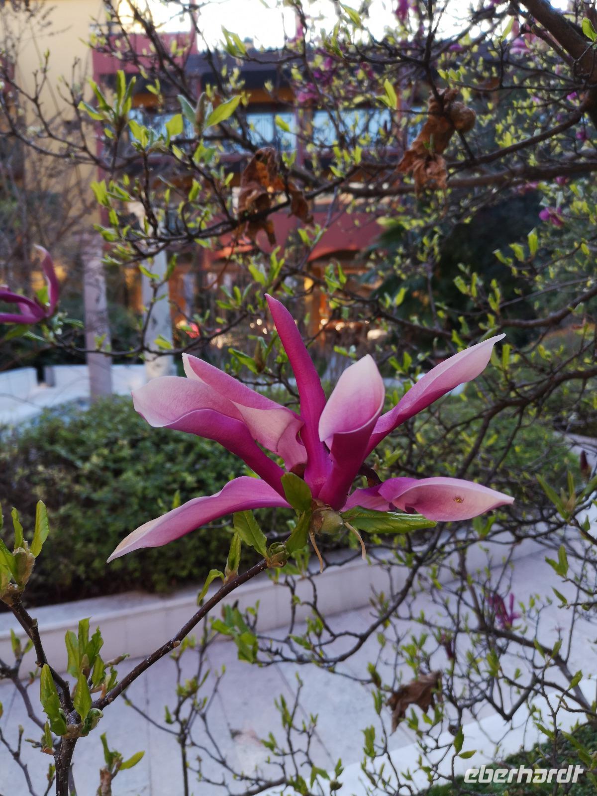 Kaum waren wir über den Brenner hinweg und sind in die tieferen Lagen des Etschtals nach Südtirol eingedrungen wandelte sich das Klima zum Frühling. Die Bäume hatten grüne Blätter und die Forsythien blühten im kräftigen Gelb. Nun waren wir eindeutig im Frühling angelangt.