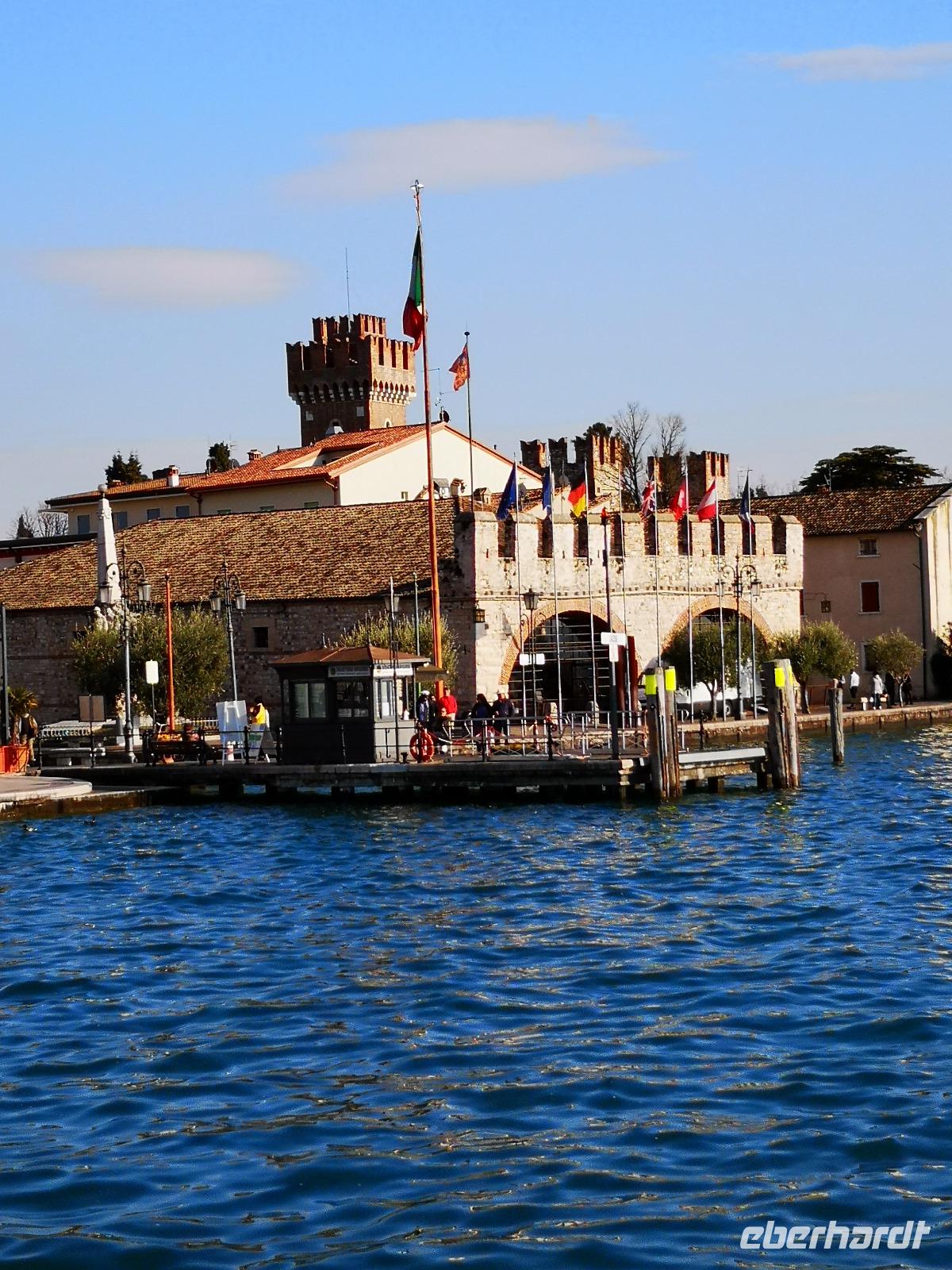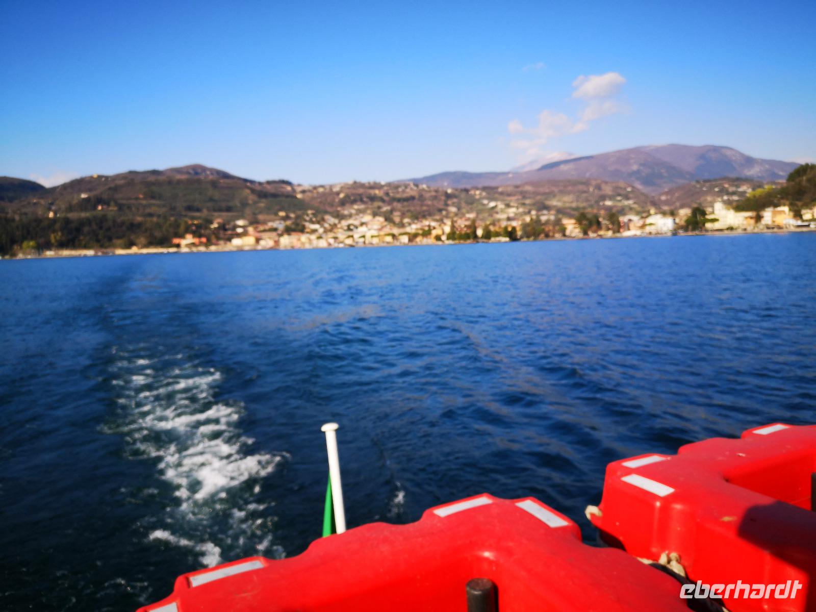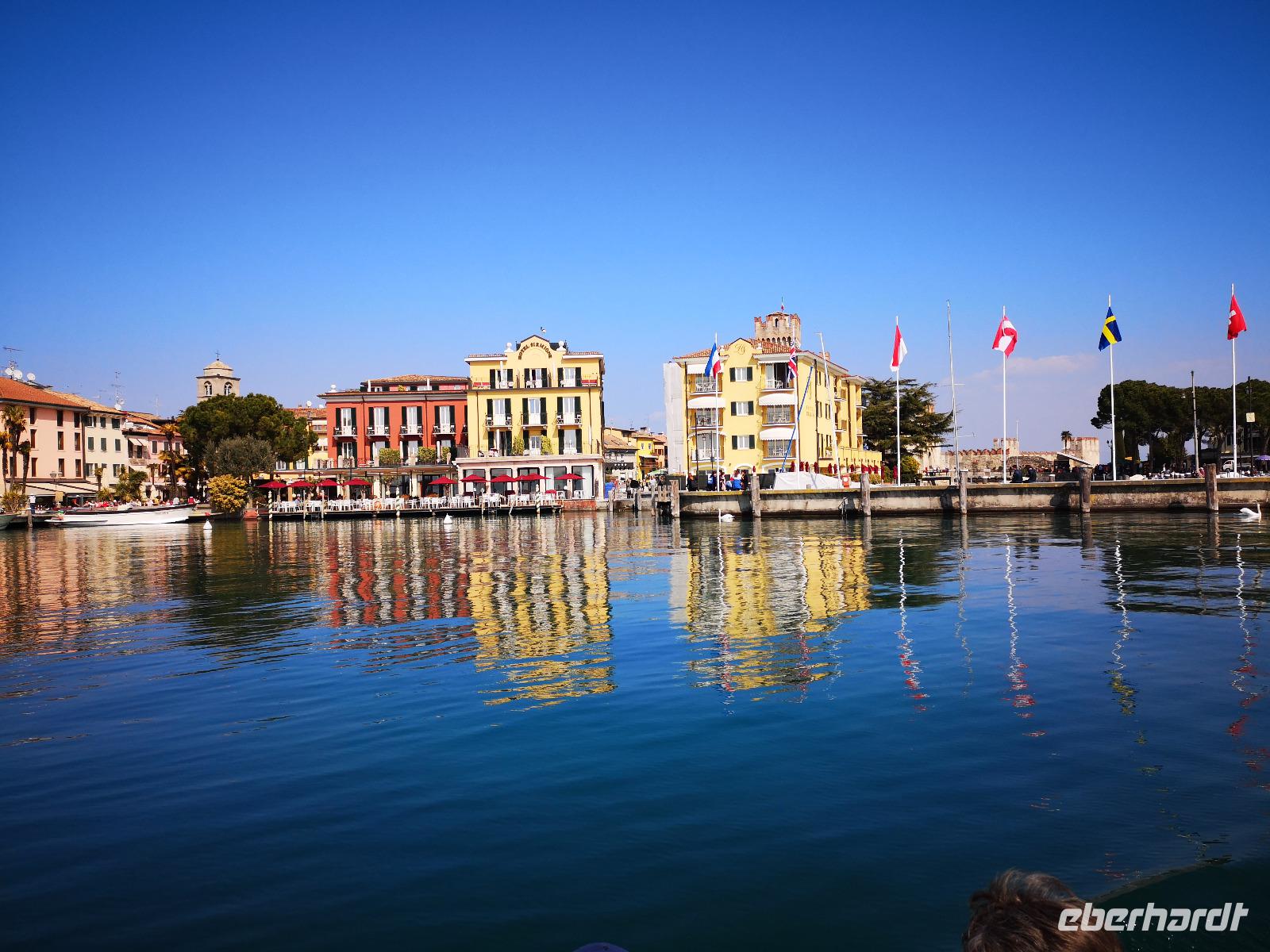 Nach dem schönen Aufenthalt in Malcesine machten wir uns noch mal mit dem Bus auf nach Garda zum Landungssteg der Linienschiffe. Wir wollten den restlichen Weg bis zum südlichsten Punkt des Sees mit dem Schiff zurücklegen. Mit einer ca. einstündigen Fahrt mit kurzen Stopps in Bardolino und Lazise konnten wir auch noch von diesem Blickwinkel des Sees schöne Eindrücke erhaschen. Nachdem wir schon einige Stunden auf den Beinen waren, genossen wir die Minikreuzfahrt über den See, wobei wir nur schauen und genießen durften und keiner mehr laufen musste.