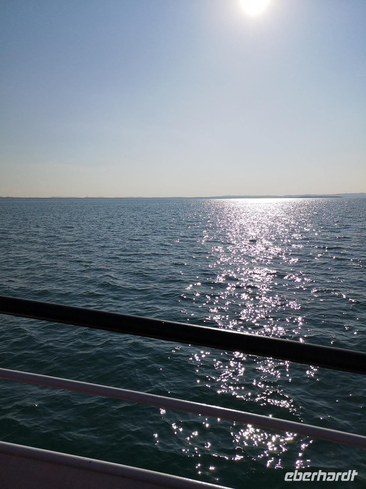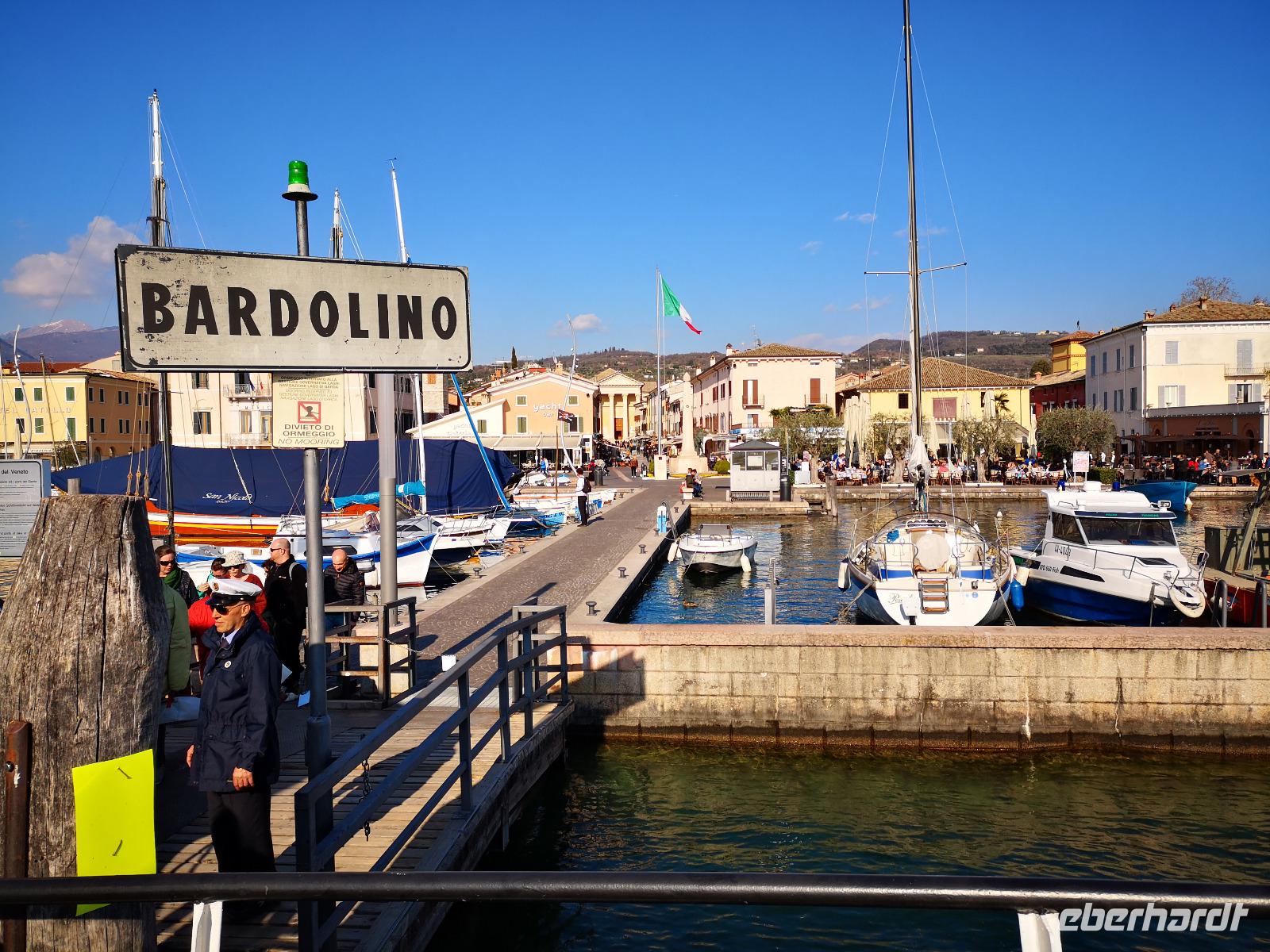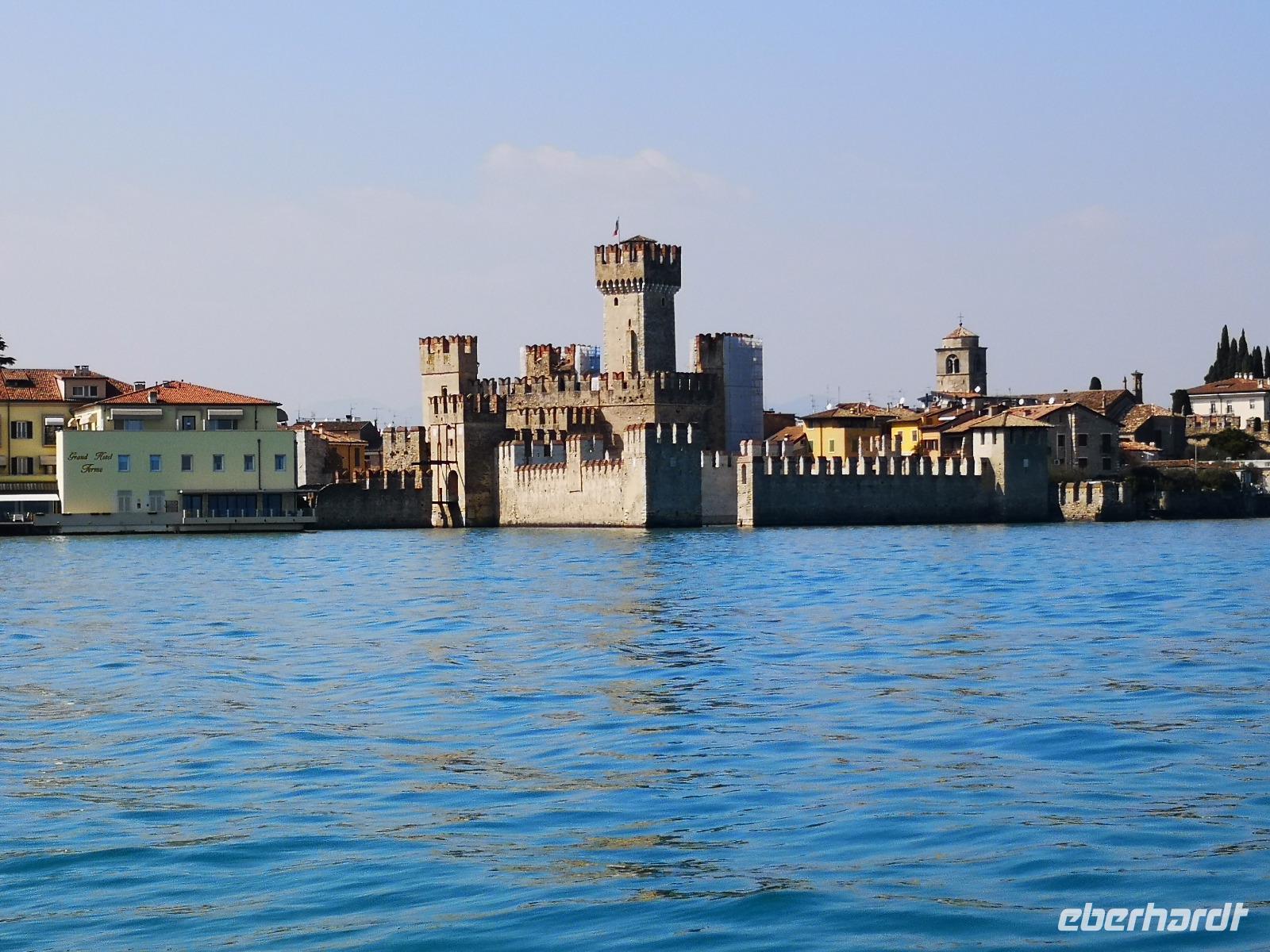 Nach dem schönen Aufenthalt in Malcesine machten wir uns noch mal mit dem Bus auf nach Garda zum Landungssteg der Linienschiffe. Wir wollten den restlichen Weg bis zum südlichsten Punkt des Sees mit dem Schiff zurücklegen. Mit einer ca. einstündigen Fahrt mit kurzen Stopps in Bardolino und Lazise konnten wir auch noch von diesem Blickwinkel des Sees schöne Eindrücke erhaschen. Nachdem wir schon einige Stunden auf den Beinen waren, genossen wir die Minikreuzfahrt über den See, wobei wir nur schauen und genießen durften und keiner mehr laufen musste.