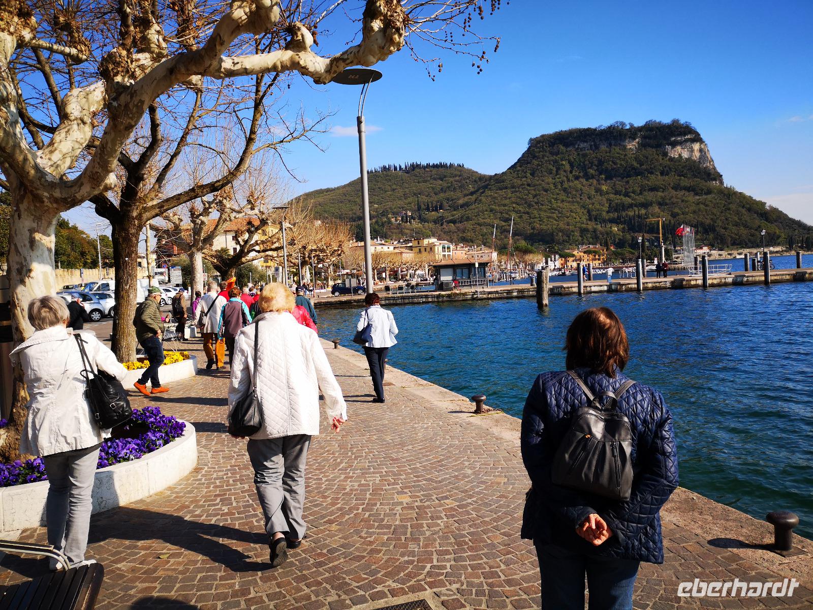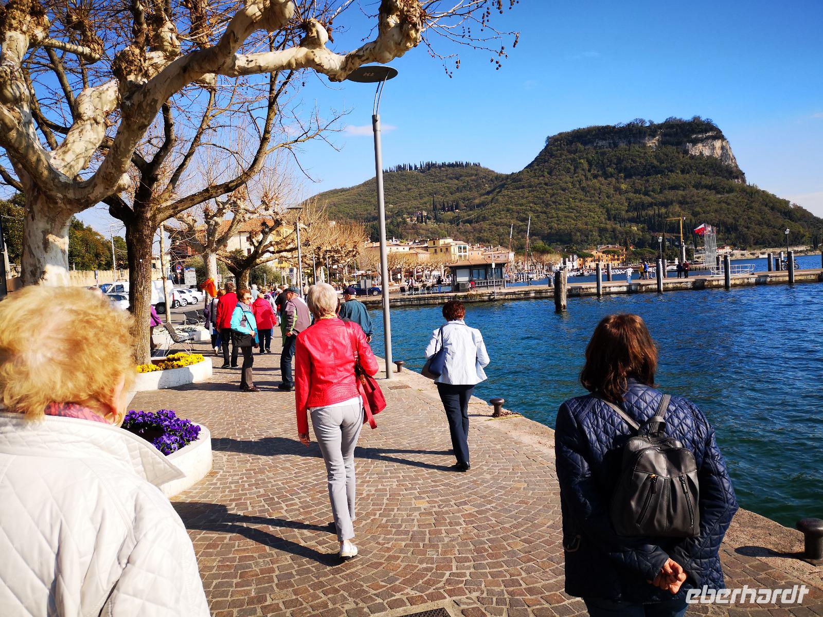 Nach einer kurzen Einführung in die kleine Perle des Gardasee, waren die Prioritäten in der Reisegruppe unterschiedlich. Einige streiften sofort durch die Gassen des schönen Dorfs und suchten sich danach einen Platz zum beschaulichen Verweilen am Hafen und fanden dort auch leckere Buscettas, andere hatten schon richtig Hunger und freuten sich auf ein gemeinsames Essen in einem der vielen kleinen Lokale. Früher oder später hatten alle die Altstadt erkundet und von der hoch über dem See liegende Burg die Aussicht genossen.