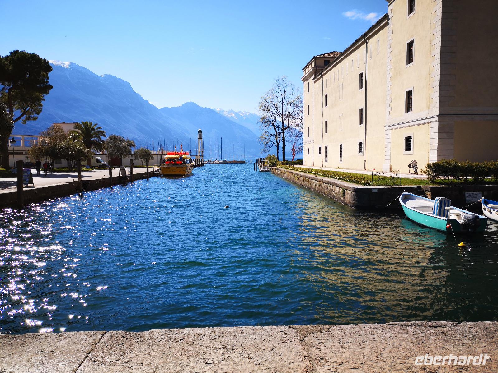 Schön am Ufer entlang mit Blick auf den See und auf die blühende Natur führen wir gemütlich nach Riva. Interessante Geschichten der Gegend aus der Vergangenheit und aus dem aktuellen Geschehen erfuhren wir von unserer lokalen Reiseleiterin Christina und Claudia. In Riva machten wir uns auf die Beine und marschierten gemeinsam in das Zentrum der Stadt und zum Beginn der Altstadt. Nun machten wir uns in kleineren Gruppen selbständig und erkundeten verschiedene Gassen, Piazza und Tore der Stadtmauer. Alle Gebäude dicht an den Felsen gedrängt bieten sie auch Schutz vor dem typischen etwas kalten Nordwind in Riva.Für die Mittagspause setzten wir die Fahrt nach Malcesine fort.