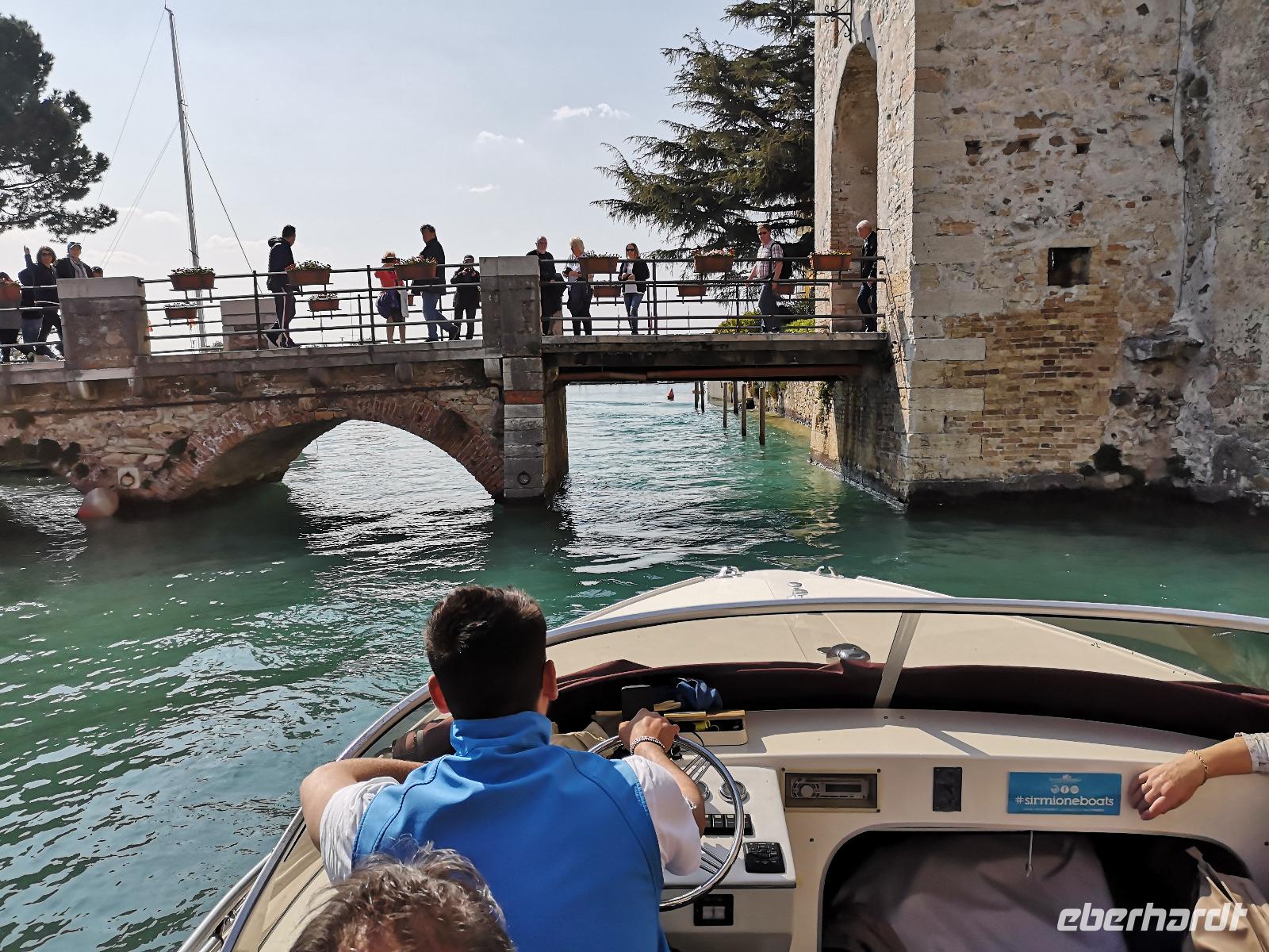 Zum Abschluß des Tages wollten wir noch der Halbinsel Sirmione einen Besuch abstatten. Da die Beine müde waren entschieden wir uns den Weg vom Parkplatz bis zur Spitze der Halbinsel mit dem Boot zurückzulegen. Wir kreuzten am Hafen von Scaligero Castle, umrundeten die antike Ruine der römischen Villa Grotten des Catull und hatten von der distanzierten See Perspektive wunderschöne Einblicke auf die Lage und Architektur von Sirmione. Anschließend schauten wir uns die Gebäude, Straßen und Plätze auch von der Nähe an, schlenderten langsam zurück zu dem Parkplatz, wo unsere Busse auf uns warteten.