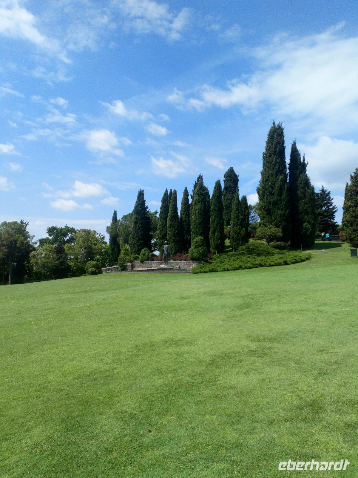 Durch Kreisverkehr und vielen Autos auf den Straßen geht es jeden Morgen durch die wunderschöne Landschaft rund um den Gardasee. Die alten Bauwerke und die Landschaft durch Oliven- und Weinplantagen und die wunderschönen Farben des Gardasees lassen die Anfahrtswege mit dem Bus in einen der schönsten Parkanlagen Italiens und Europas einzutreffen.