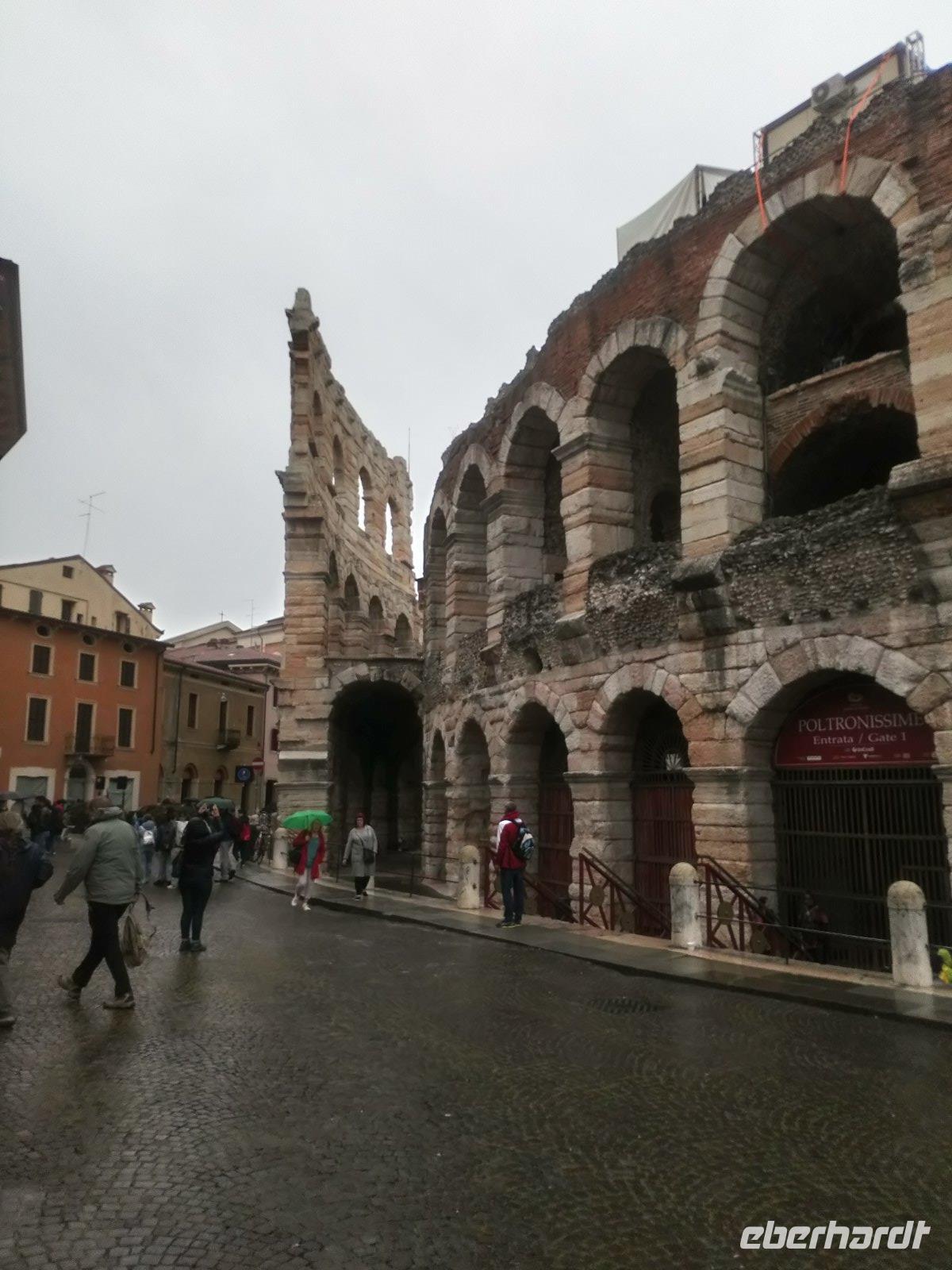 Bei schaurigem Wetter 8 Grad Celsius am Morgen, wurden wir in Verona, am Flußufer der Etsch hat uns Veronika unsere Stadtführerin im Bus herzlichst Empfangen. Der Regen hatte sich gelegt und wir wurden durch die traumhaft schöne Stadt Verona verzaubert. Auf den Spuren der Geschichte von Romeo und Julia, die dramatische Geschichte, die die Stadt prägt, mit ihrer wunderschönen Arena, das drittgrößte erhaltene römische Amphitheater seiner Art im 1.Jh zur Zeit der flavischen Kaiser erbaut. Heute ist es im Sommer ein Ziel aller Opernfans, die über offenem Himmel die Opernfestspiel und Verona besuchen. Der alte Marktplatz mit typischen Souvenirs, die Gassen mit Restaurants, der typisch italienische Flair, dekorierte Läden ortstypischer Köstlichkeiten ob Mode, Gelati, Capucino, mit Witz und Geschichte wurden wir durch Verona von Viktoria geführt. Der Shuttlebus hat uns wieder zum Busparkplatz gebracht und Max hat uns zu unserem weiterem Highlight, die Weinverkostung. Auf dem Weingut Spada, wurde unser Gaumen von den köstlichen Weinen, wie zum Beispiel auch der der Amarone Wein, der bekannte Valpolicella Wein mit Käse und Brot verwöhnt. Es gab alle Möglichkeiten auf der Cantina Spada Wein zu kaufen oder sich direkt nach Hause beliefern zu lassen. Die Führung auf dem Weingut, jetzt auch mit Sonnenschein war ein toller Abschluss am Spätnachmittag. Glücklich mit vielen Erlebnissen haben wir das Abendbuffet genossen und den wunderschönen Tag ausklingen lassen.