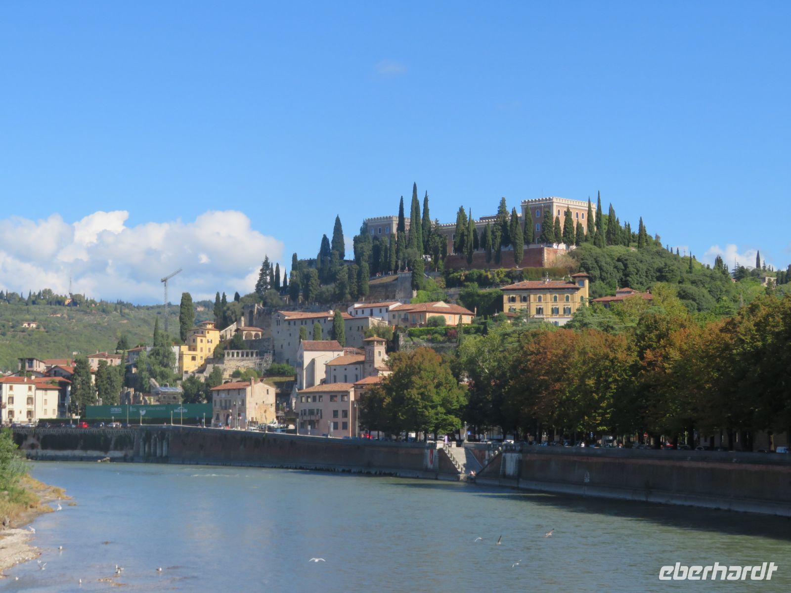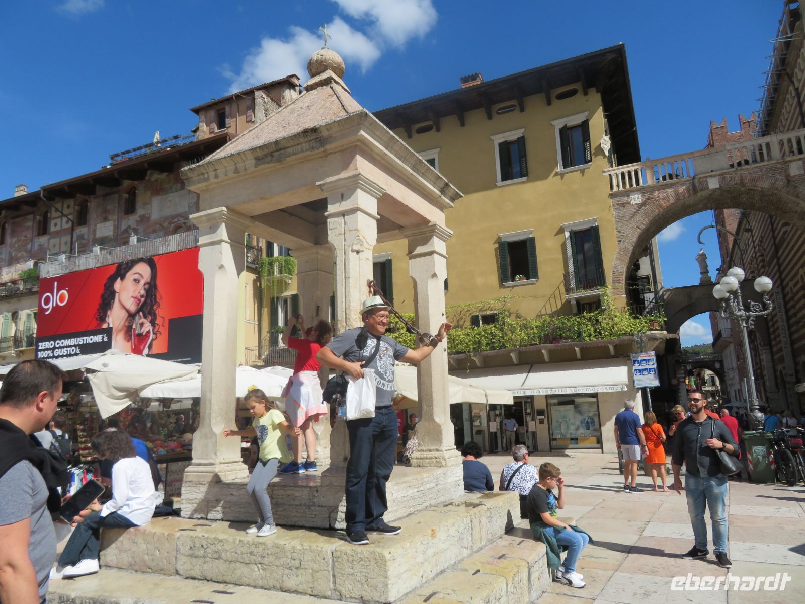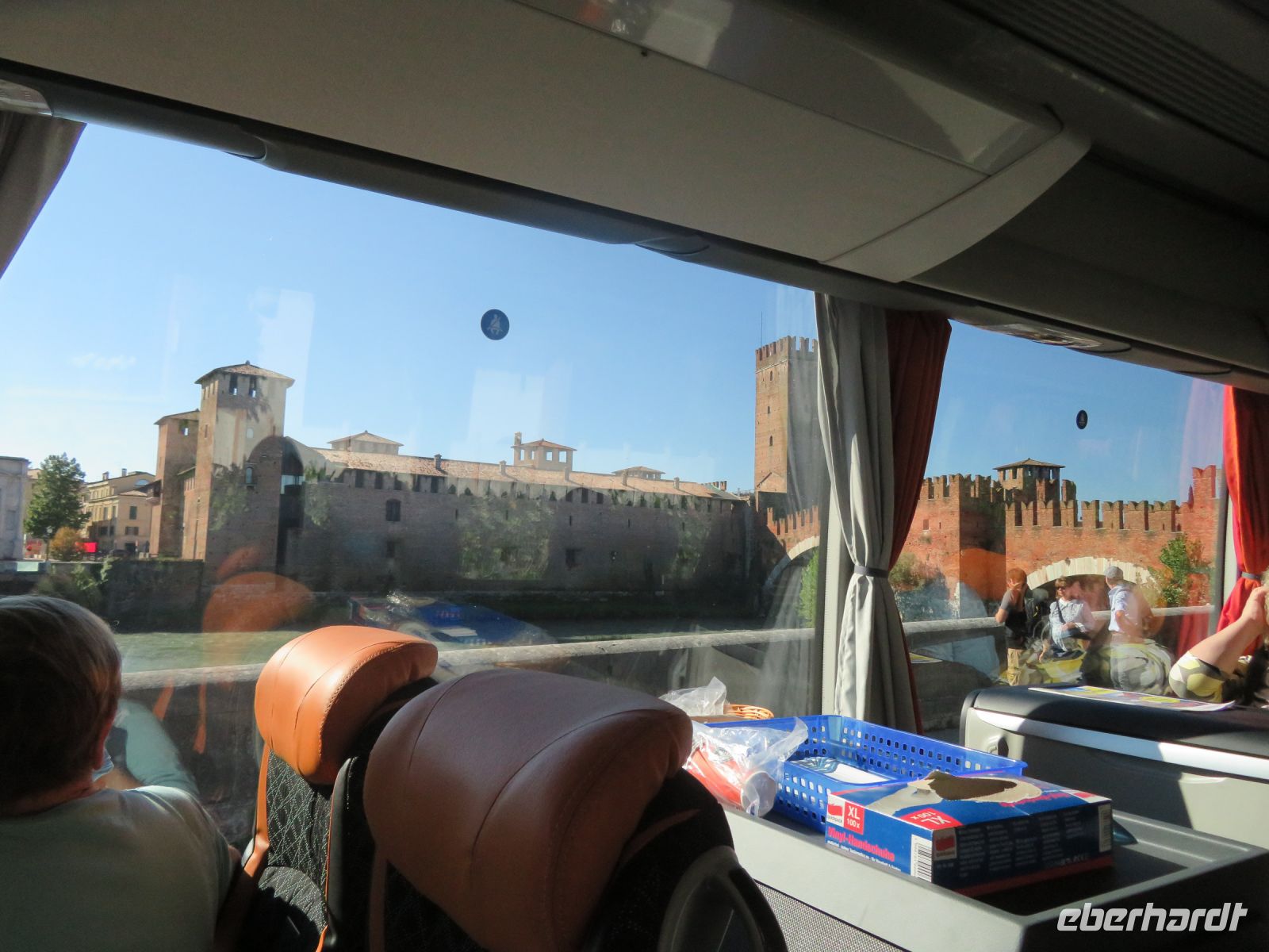 Verona- die Stadt Romeos und Julias - war das Ziel unserer Sehnsucht, Von einem Aussichtspunkt aus zeigte unser Stadtführer Luca uns einen malerischen Blick auf die Stadt .Dann führte er uns zu den schönsten Plätzen der Stadt mit Ihren Palazzi, dem Rathaus ,den ungewöhnlichen Skaligergräbern und natürlich auch der berühmten Arena von Verona.Vielleicht kommt ja der Eine oder Andere zu einer der Opernaufführungen wieder hierher? Großes Glück hatten wir am Haus der Julia: Das Gedränge hielt sich in Grenzen, so dass wir den berühmten Balkon und die Statue der Julia sehr gut sehen und im Foto festhalten konnten .Anschließend konnten wir in der Freizeit die Stadt weiter allein erkunden oder kulinarischen Genüssen frönen .Leider ließ uns der Shuttlebus zum Busbahnhof stehen .So erreichten wir diesen fußläufig und fuhren anschließend mit unserem Eberhardt- Bus zum Hotel in Malcesine zurück.