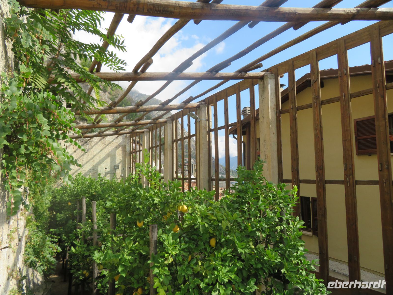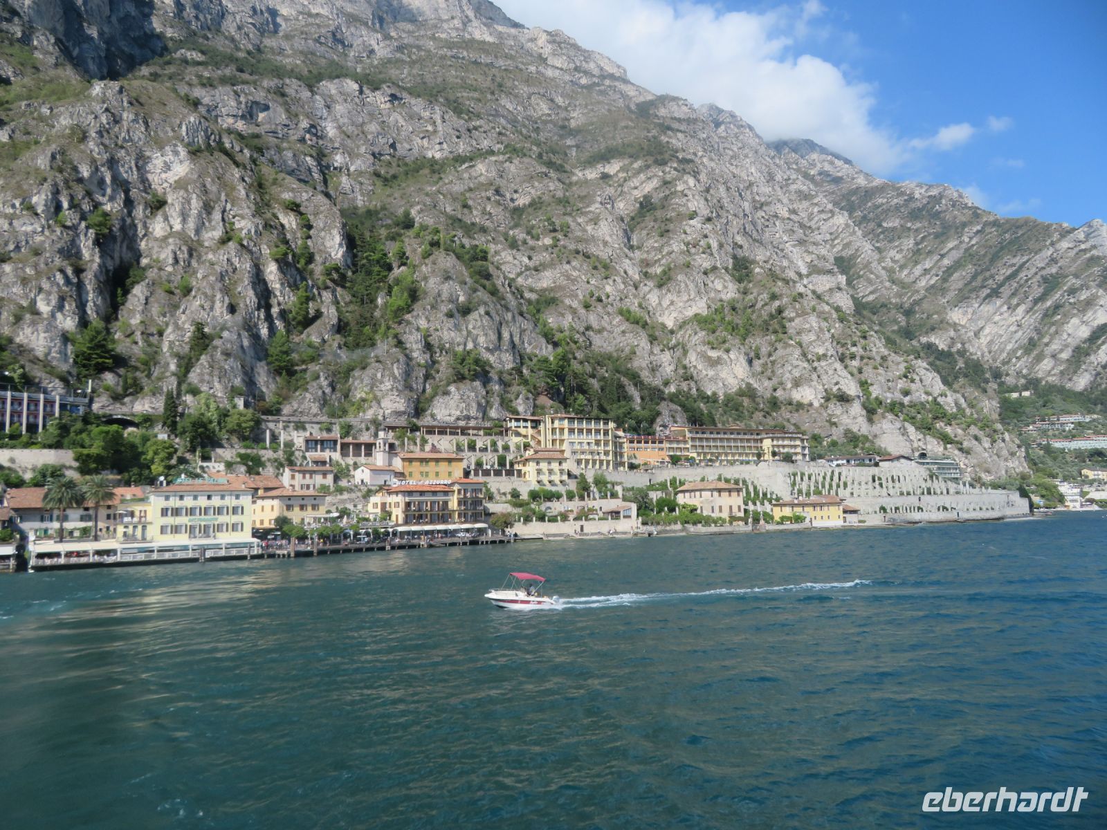 Von Malcesine brachte uns ein Schiff an die Westseite des Sees - nach Limone. Dort wartete schon ein Mitarbeiter des Zitronenhains auf uns und führte uns zu den Gärten .Erstaunlich, wie viele Zitronenarten es gibt und interessant zu hören, wie es hier gelungen ist, Zitrusfrüchte zu züchten Natürlich kosteten wir auch den Limoncello und Zitronenkeks - lecker! Von der Terrasse der Kirche genossen wir einen romantischen Blick auf den Ort Limone und den See. Beim Spaziergang durch den Ort konnte wohl niemand der Versuchung widerstehen : Zitronen- Liköre, -Bonbons, -Backwerk, -Schokolade,- Seife ,..allerorten.Auch ein Gelato mit Zitronengeschmack durfte nicht fehlen .