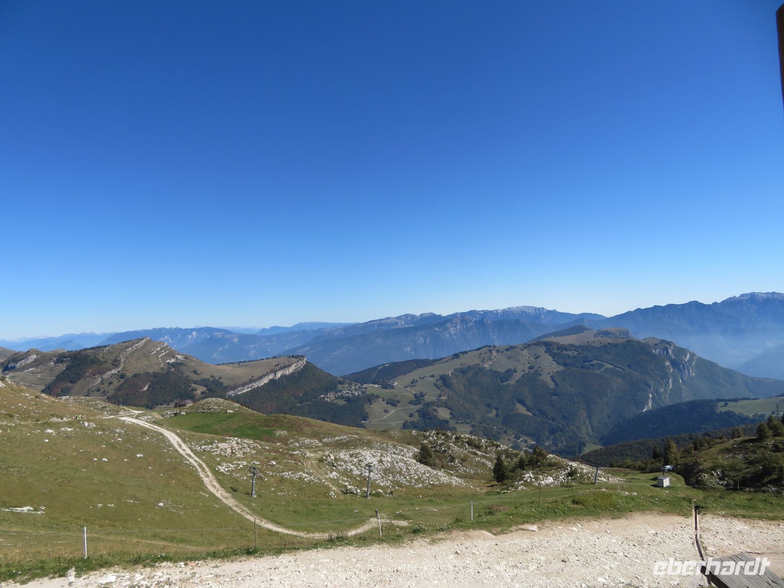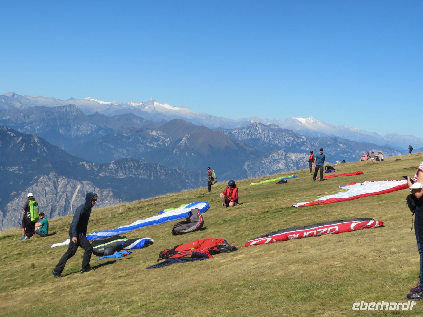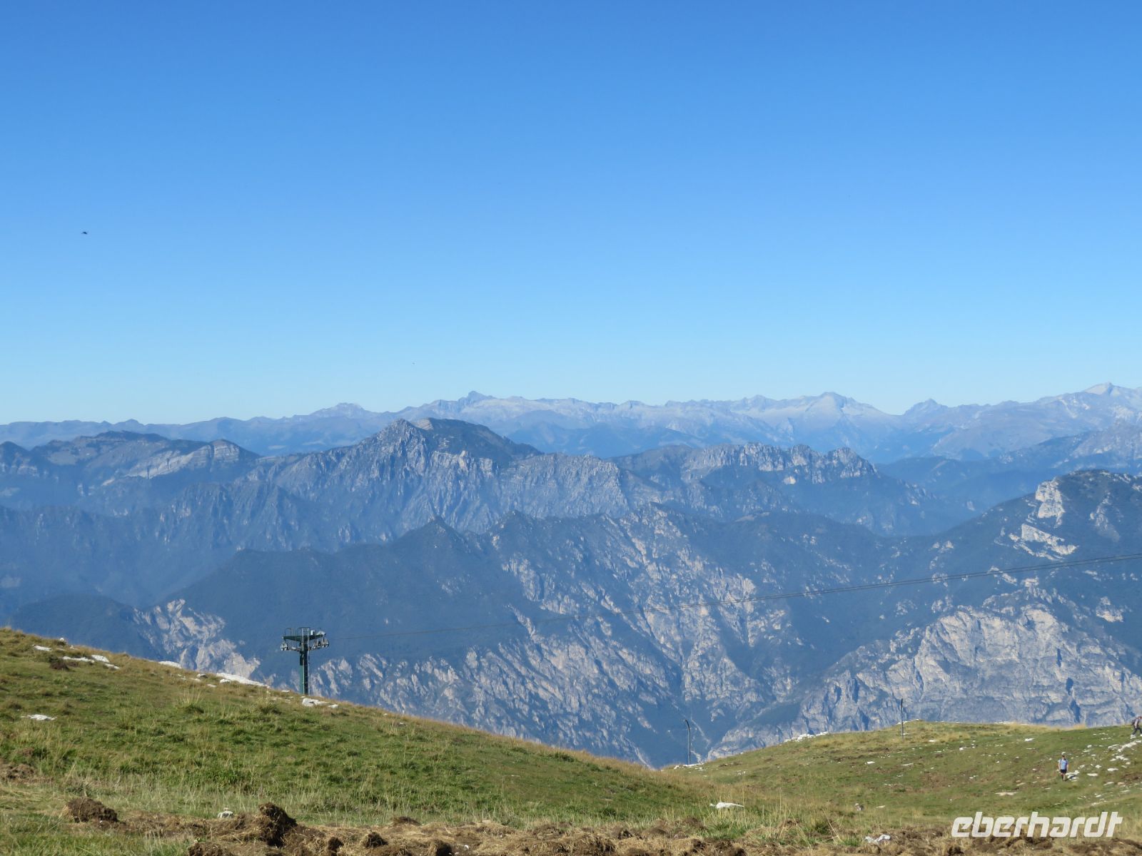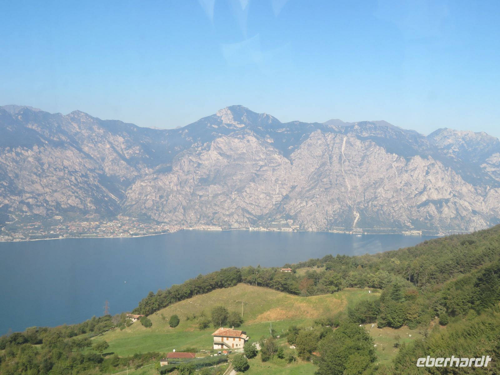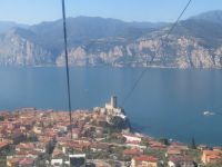 Für diesen letzten Tag hatten sich viele Reisegäste eine Seilbahnfahrt auf den Monte Baldo vorgenommen.Wir hatten Glück:an den vorangegangenen Tagen war es schön, aber oft neblig gewesen. Heute schien die Sonne schon am frühen Morgen.Coronabedingt waren die Abläufe etwas verändert ,so dass wir den Zeitplan etwas ändern mußten. So buchten wir eine Zeit für die Auffahrt und erkundeten bis dahin ein wenig Malcesine.Später, auf dem Berg konnten wir neben einer fantastischen Aussicht auf den See auch den Einblick in die dahinterliegenden Gebirge zu beiden Seiten genießen..Besonders interessant war es, den Gleitschirmfliegern beim Auspacken ihrer Schirme und dem Start in die Lüfte zuzuschauen.