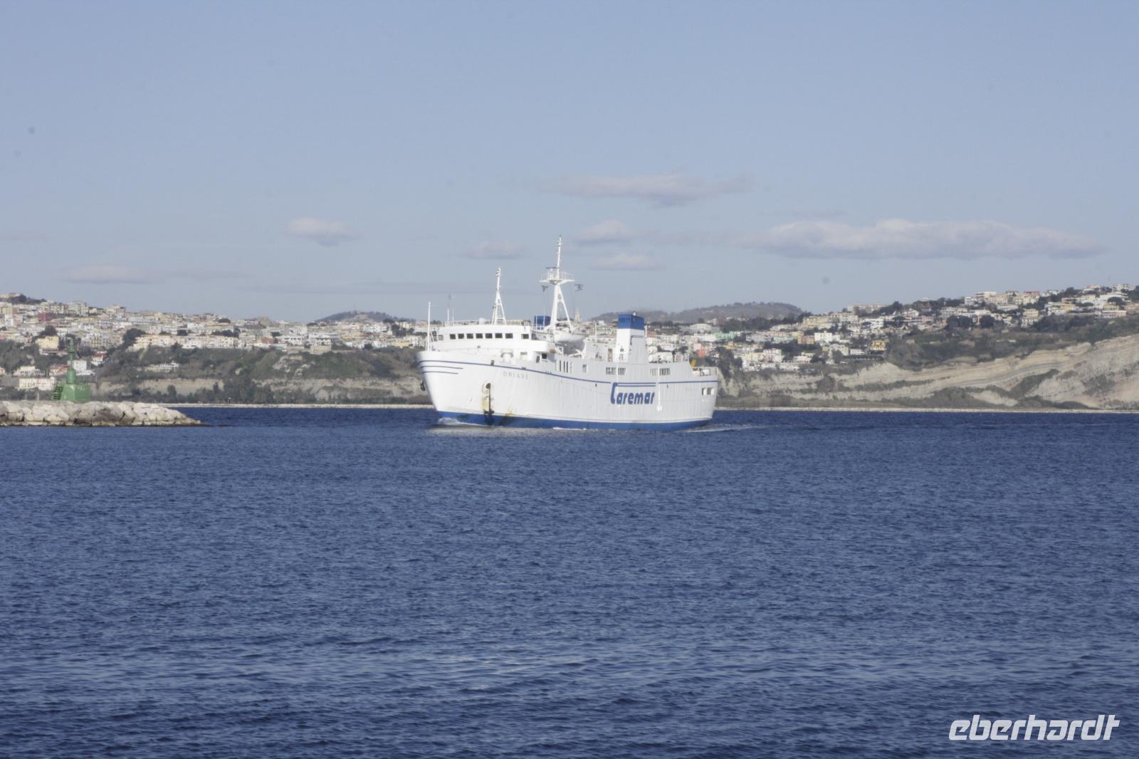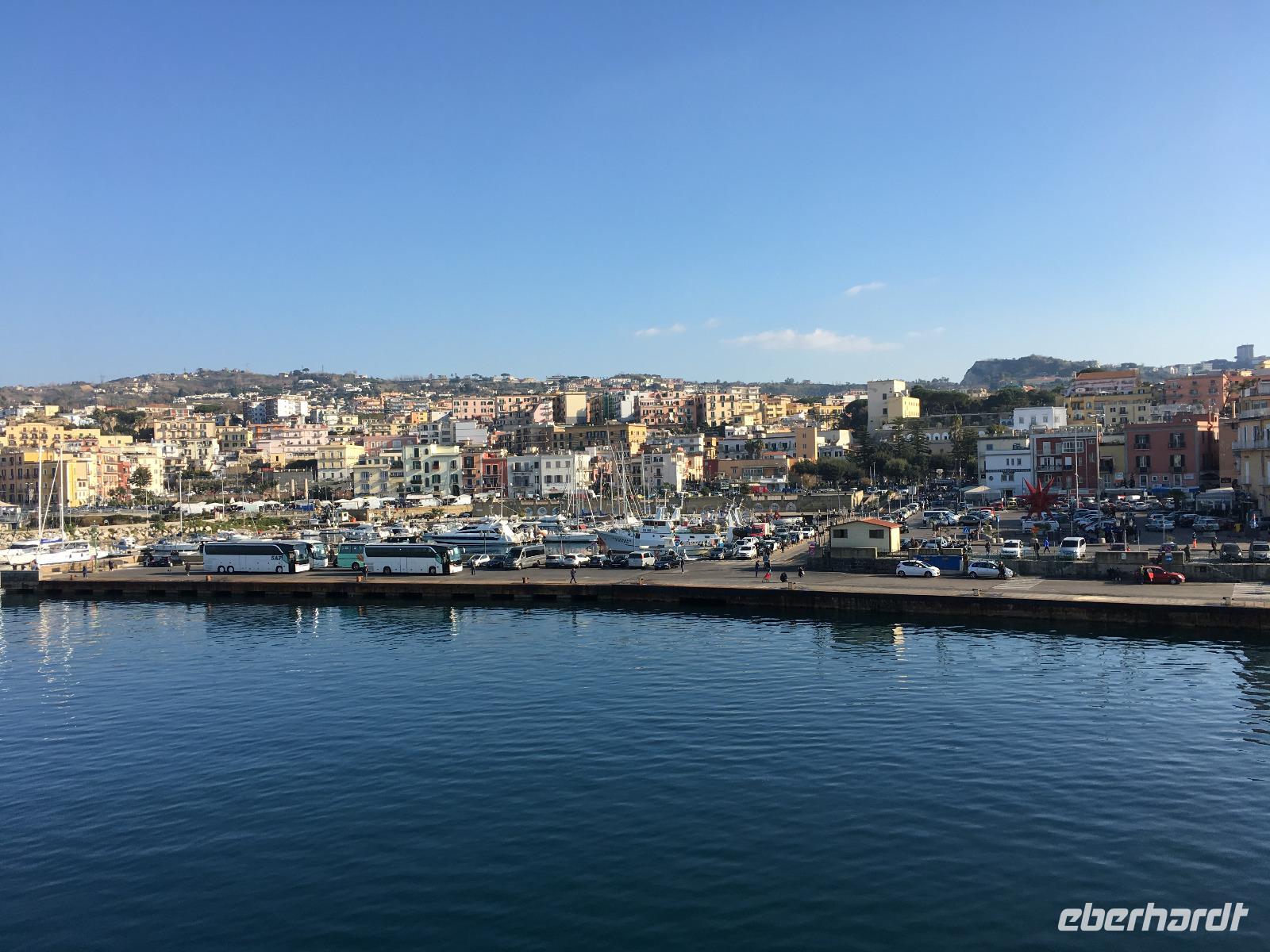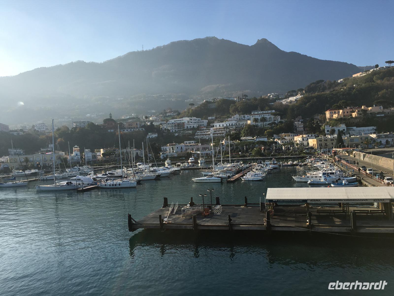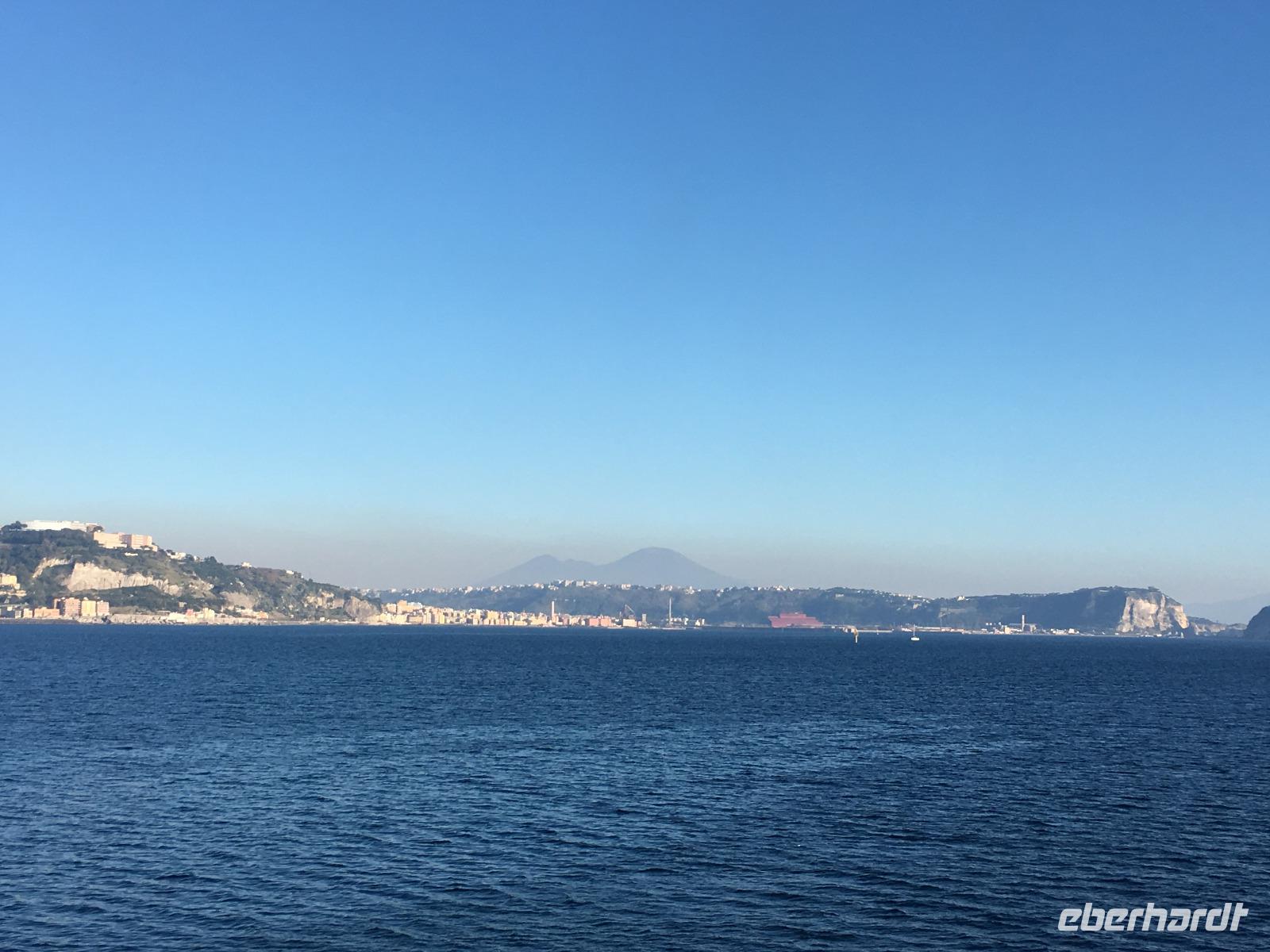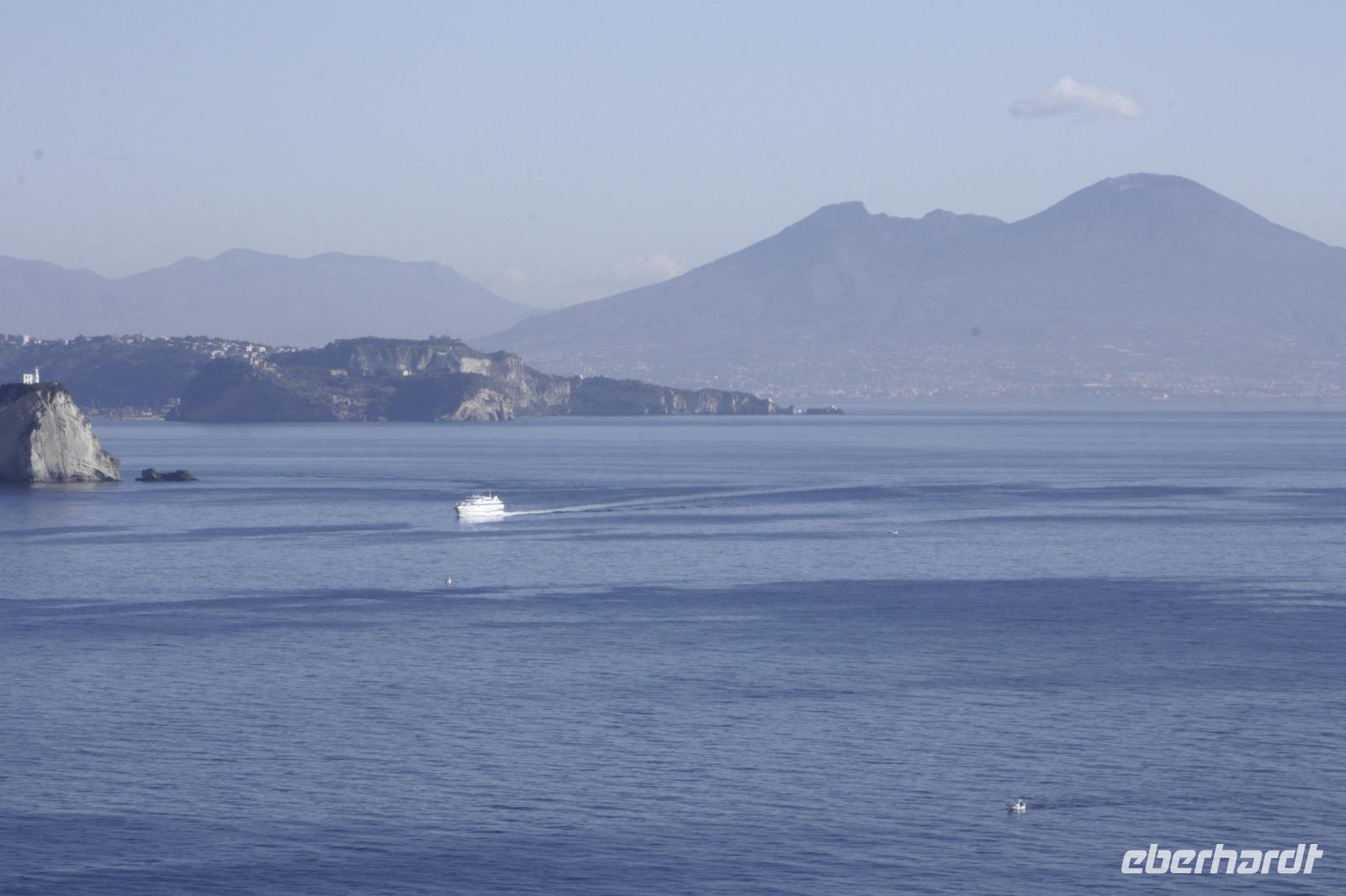 Nach unserem Frühstück werden wir von unserem Busfahrer empfangen, welcher uns nach Casamicciola zum Hafen chauffiert. Hier treffen wir auf Flavia, welche uns bis zum Flughafen ins Neapel begleiten wird. Auf dem Oberdeck der Fähre fangen wir nochmals ein paar Eindrücke der Insel sowie viele Sonnenstrahlen ein - ein guter Gedanke: denn in heimatlichen Gefilden wird uns Schneefall prognostiziert!