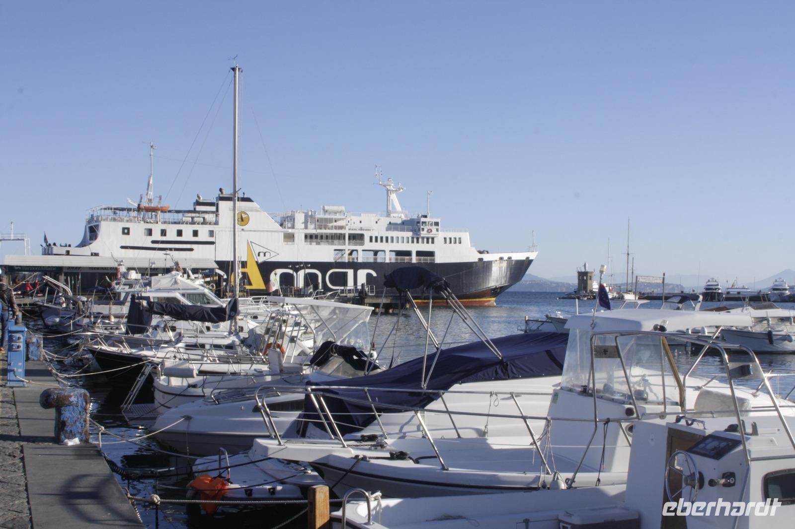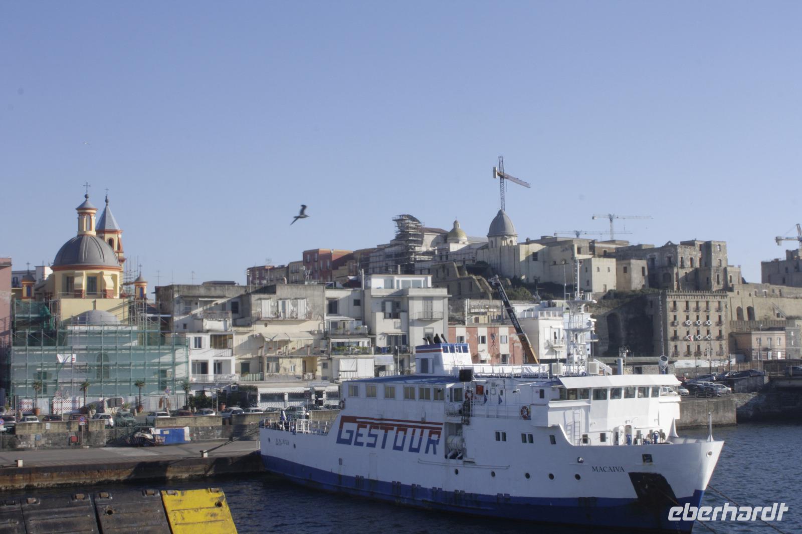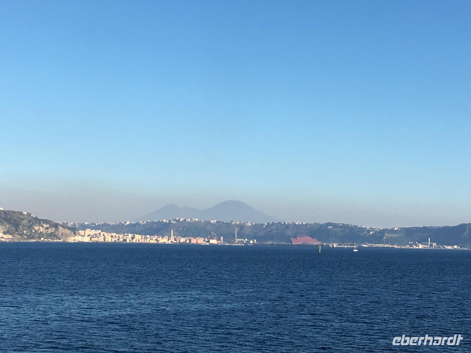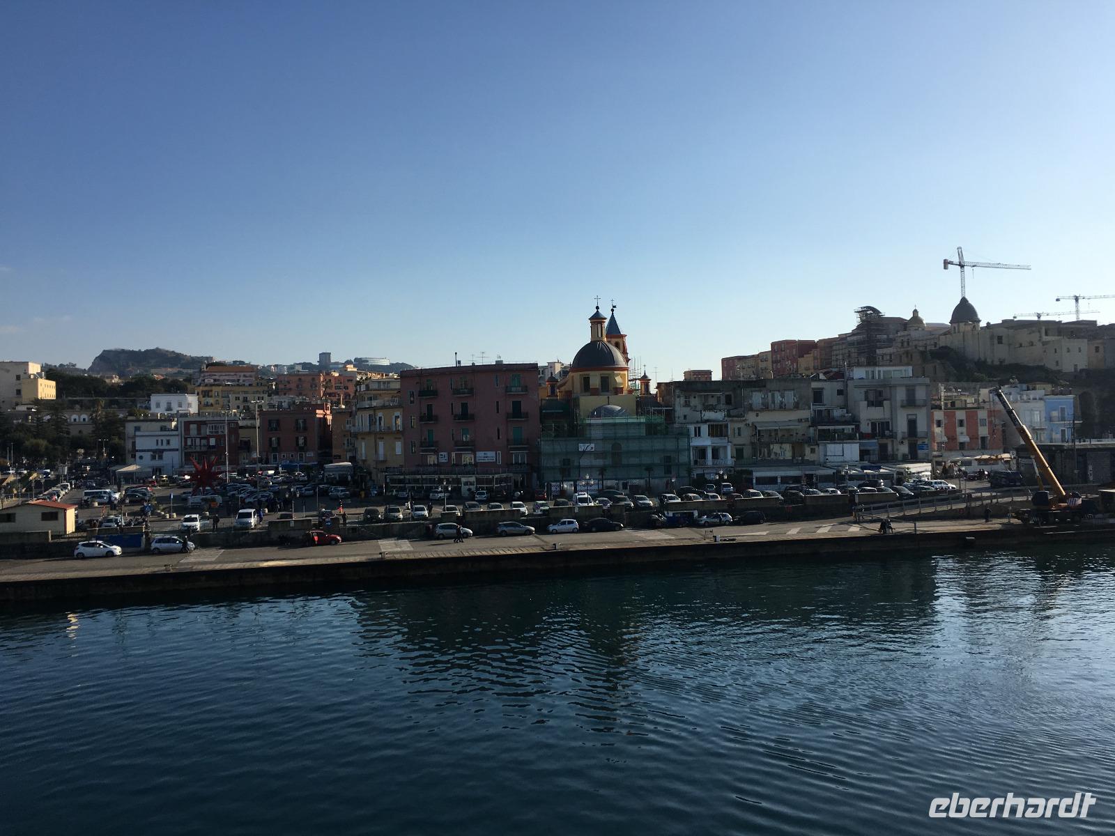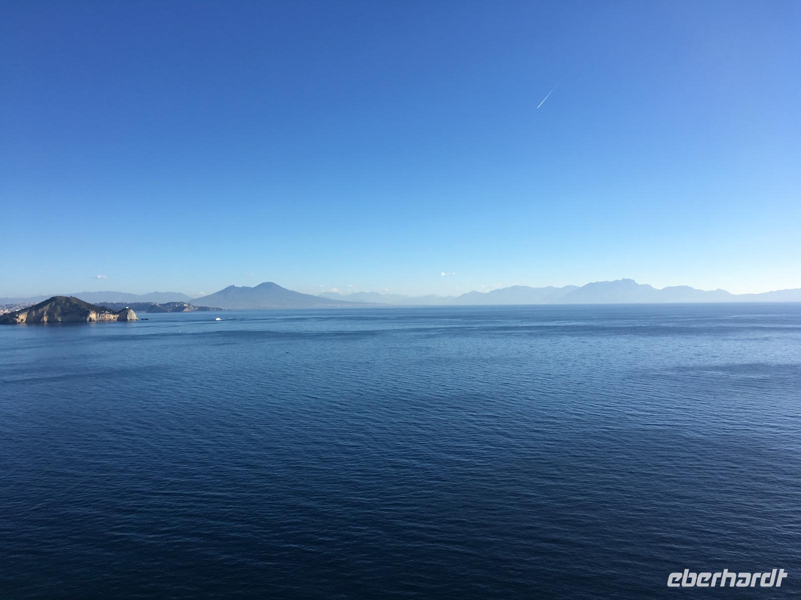 Nach unserem Frühstück werden wir von unserem Busfahrer empfangen, welcher uns nach Casamicciola zum Hafen chauffiert. Hier treffen wir auf Flavia, welche uns bis zum Flughafen ins Neapel begleiten wird. Auf dem Oberdeck der Fähre fangen wir nochmals ein paar Eindrücke der Insel sowie viele Sonnenstrahlen ein - ein guter Gedanke: denn in heimatlichen Gefilden wird uns Schneefall prognostiziert!